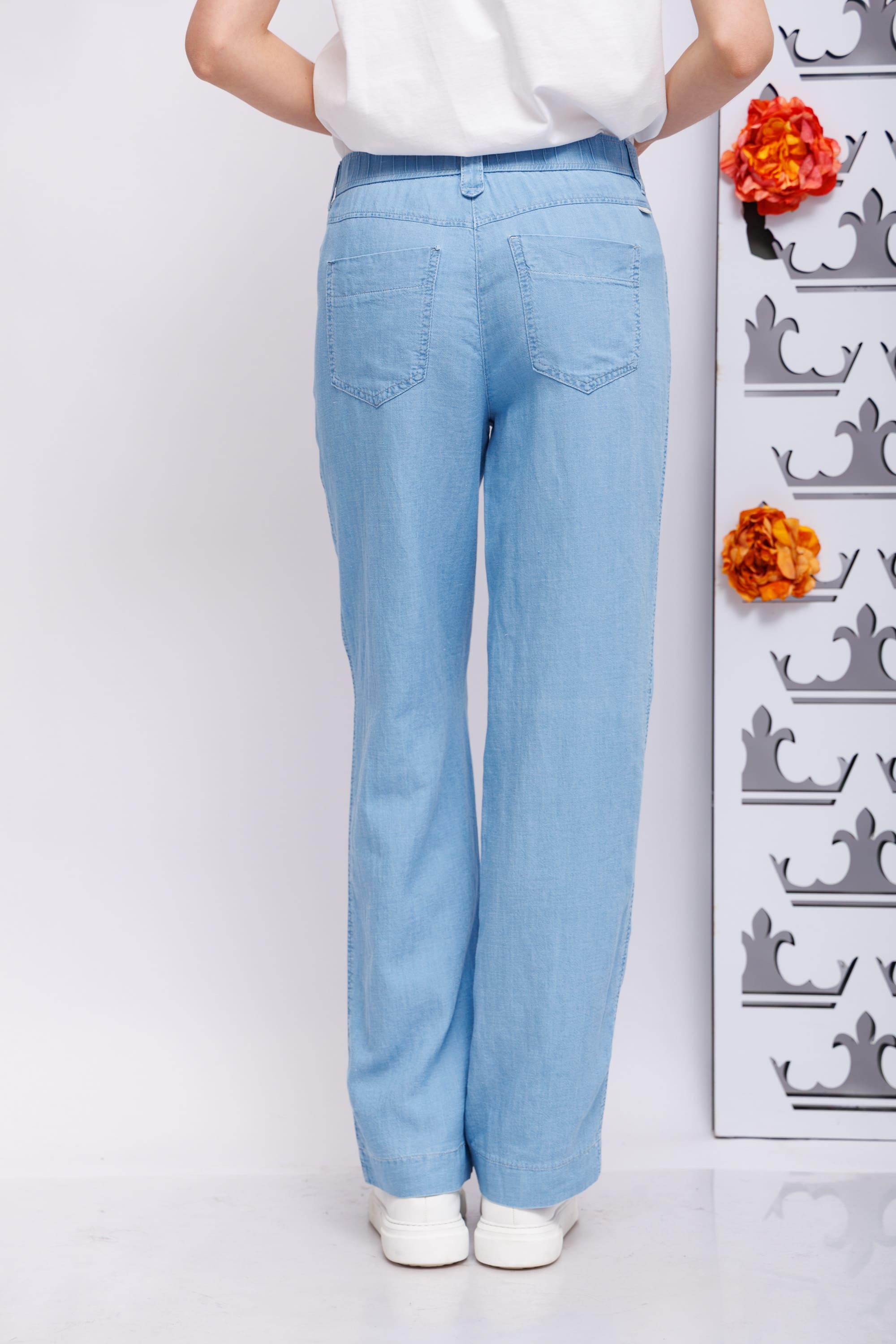 Модель FRIEDA из коллекции Весна/Лето — это брюки женственного кроя, изготовленные из льна и смесовых льняных тканей. Благодаря свободному, широкому силуэту и удобному эластичному поясу они обеспечивают исключительный комфорт — идеально подходят для легких, стильных летних образов.