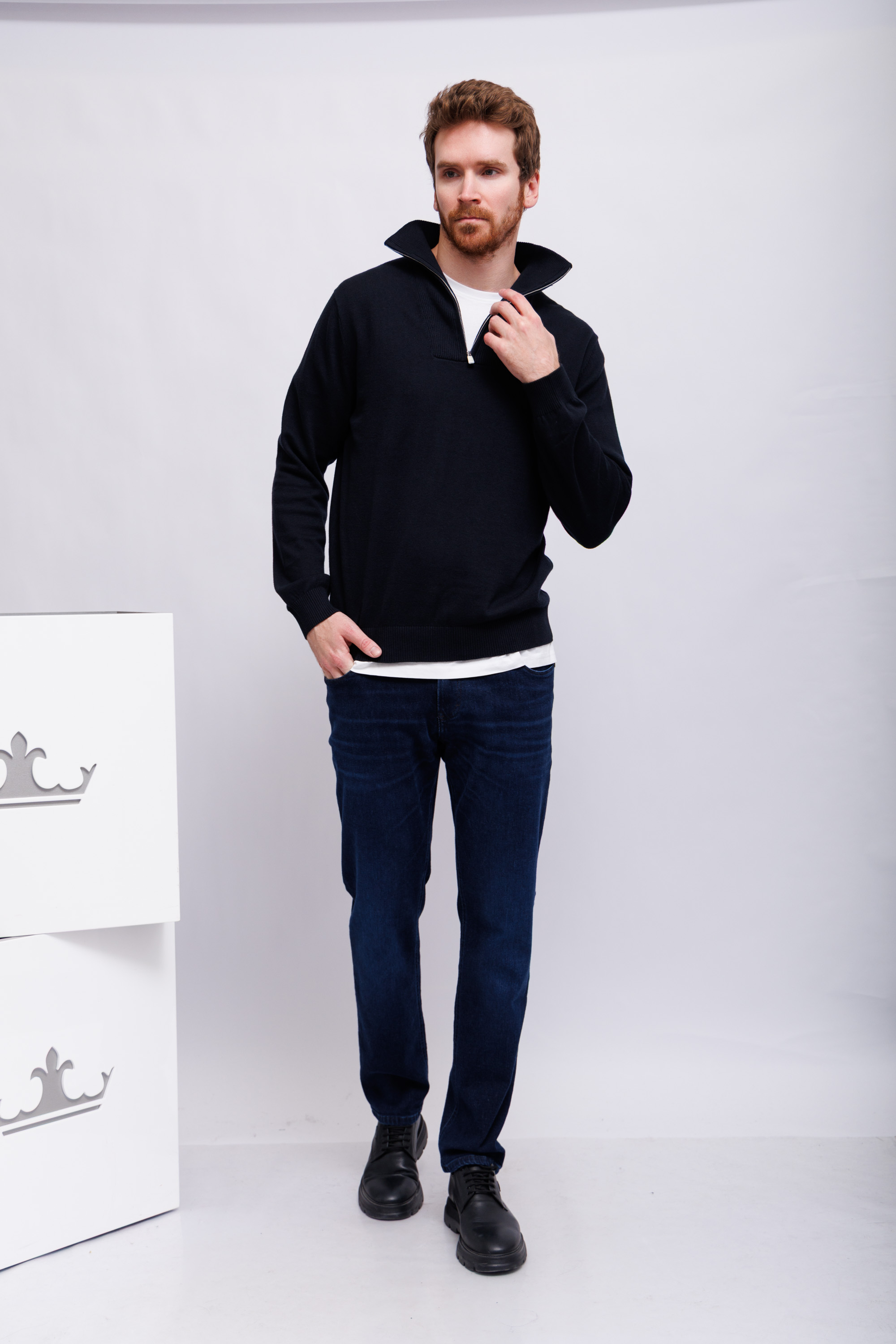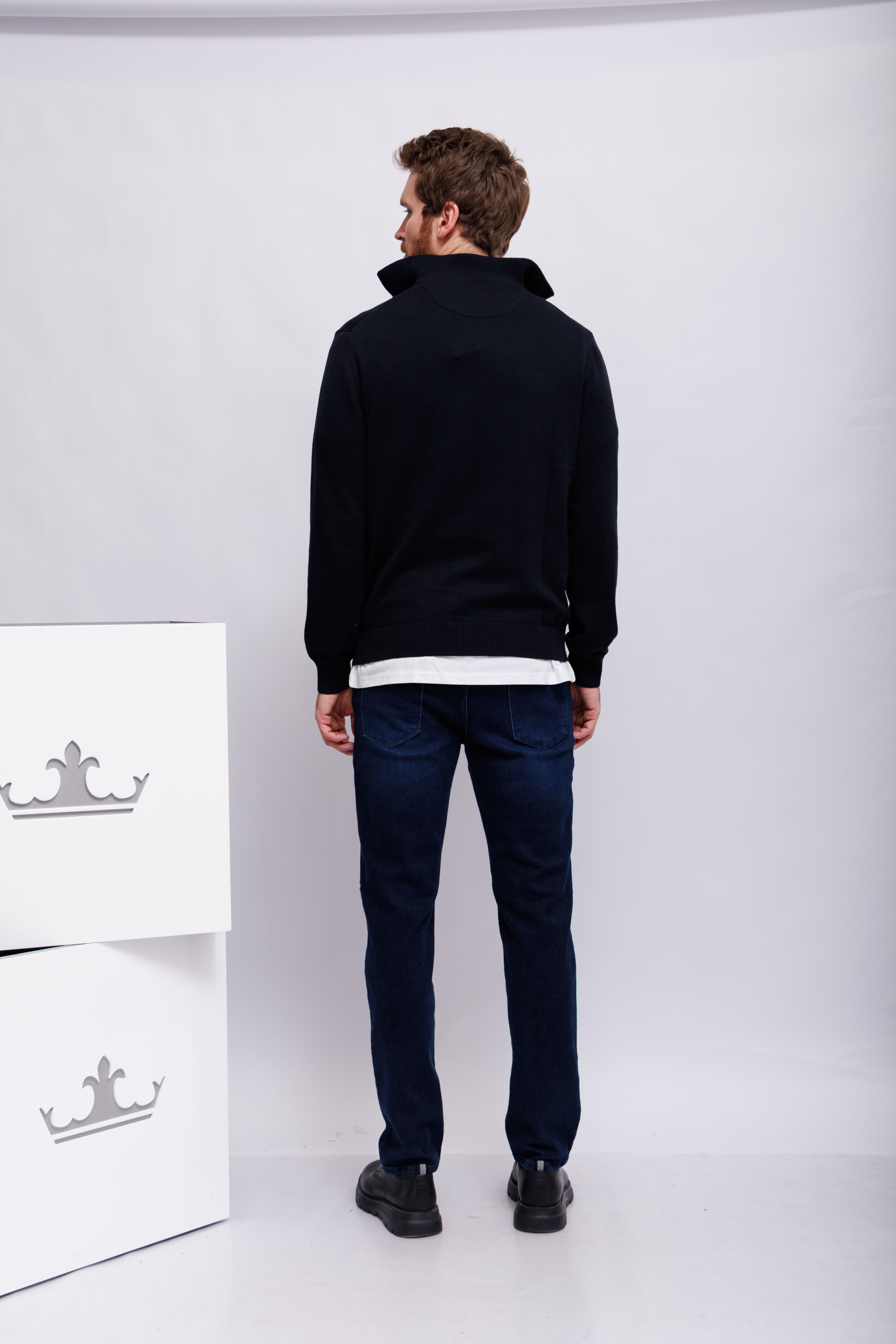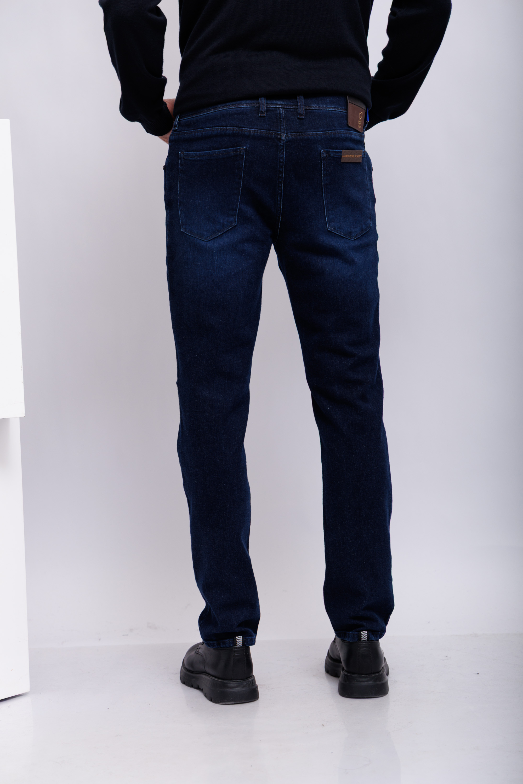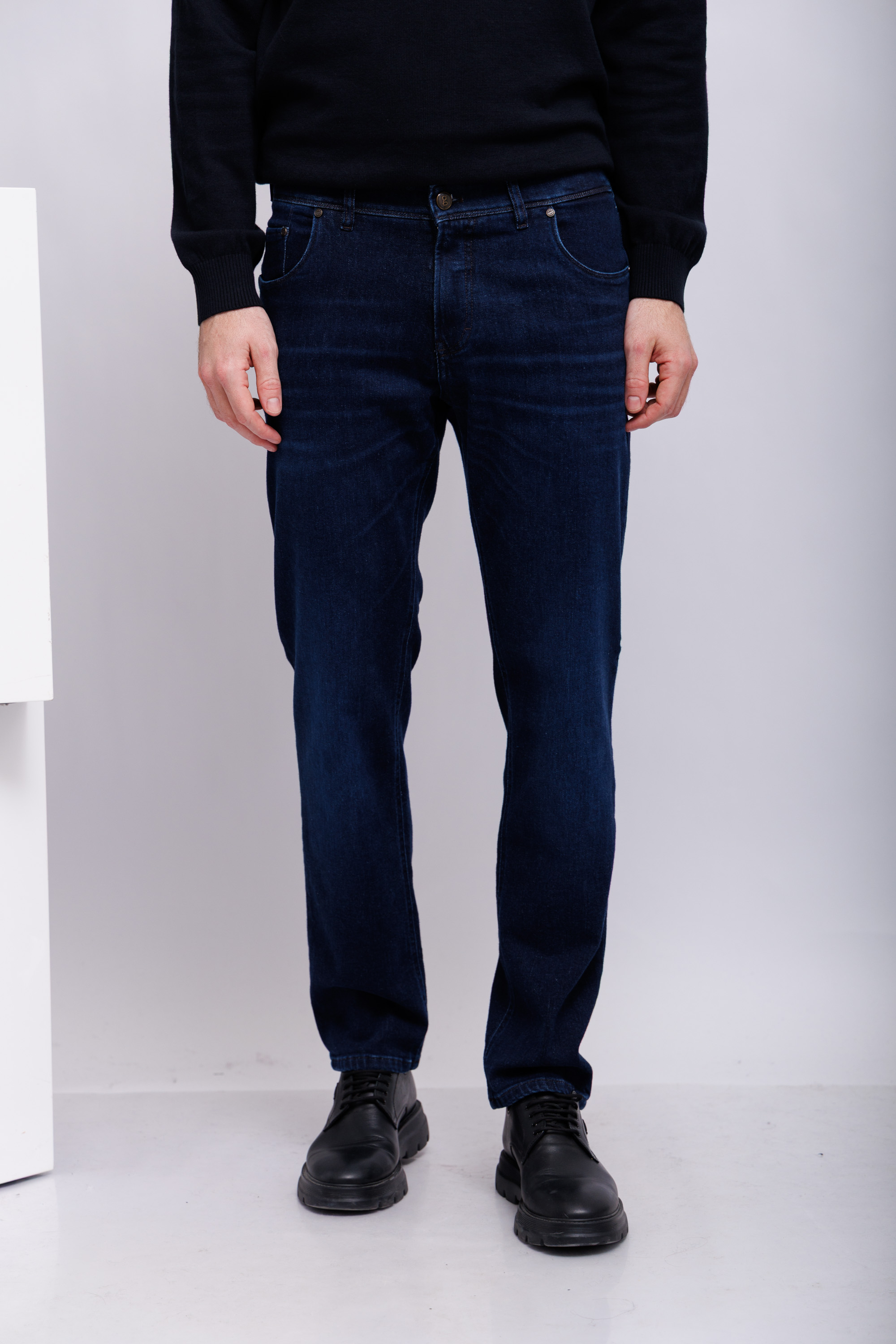 Джинсы темно-синие из хлопка с кашемиромМодель "5 карманов"Гульфик на молнии и металлической пуговицеПрямой кройОтстрочка в тон
