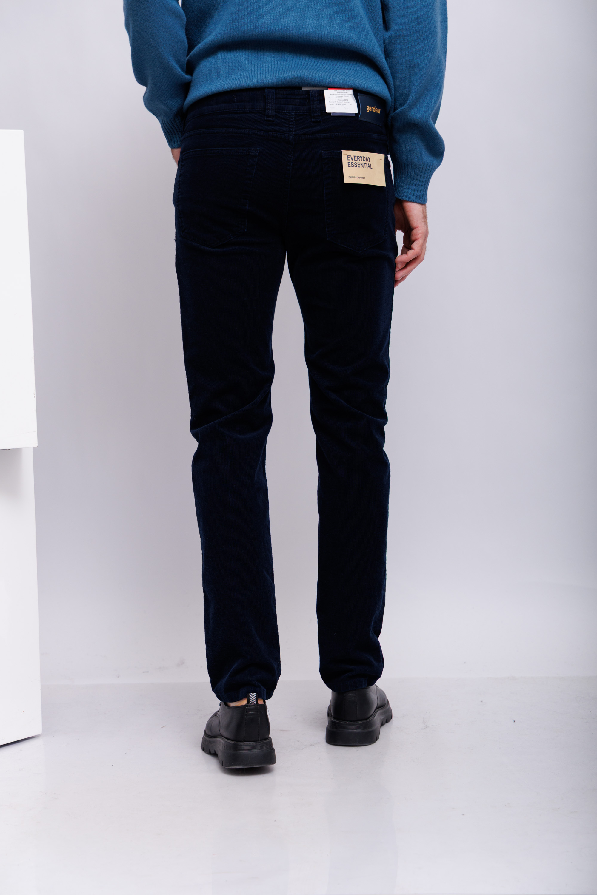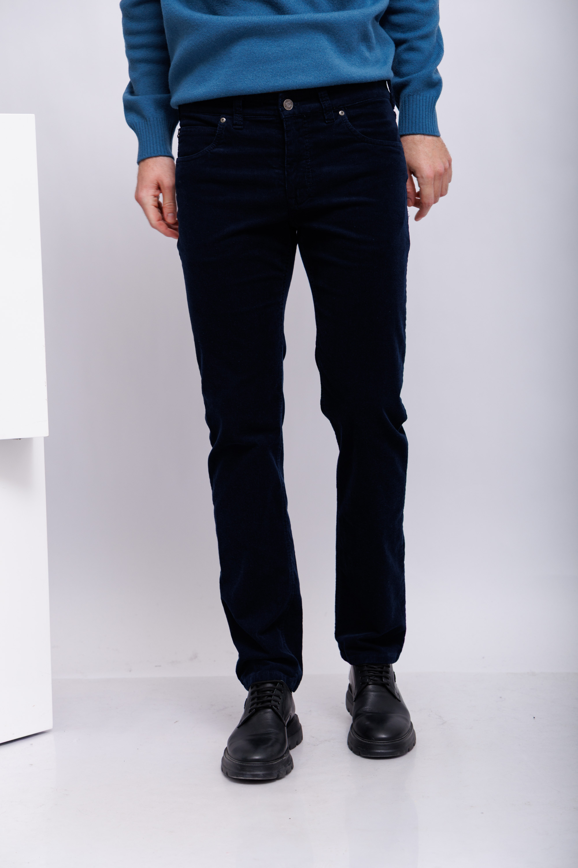 Джинсы темно-синие велюровыеМодель "5 карманов"Гульфик на молнии и металлической пуговицеПрямой кройОтстрочка в тон