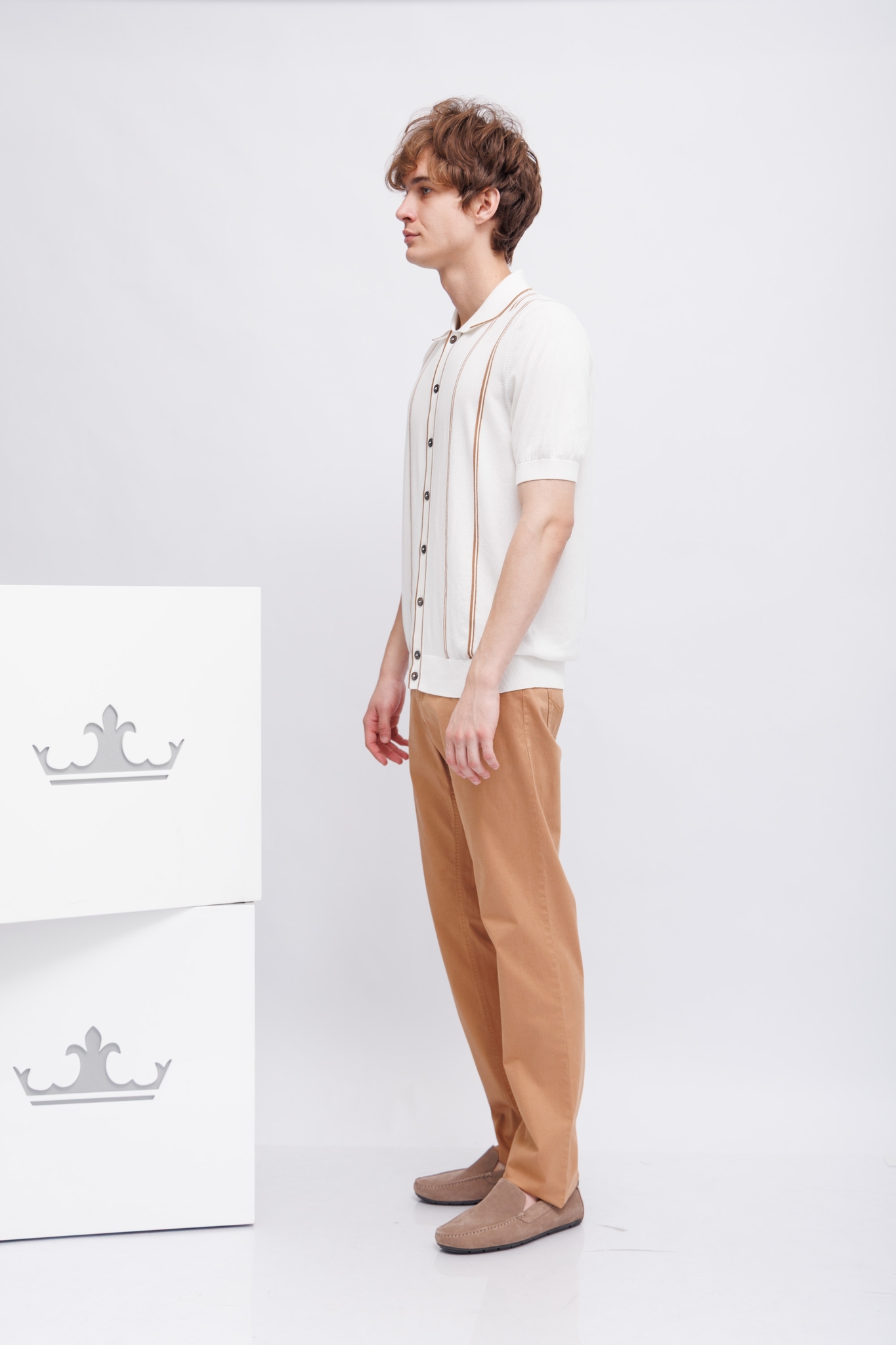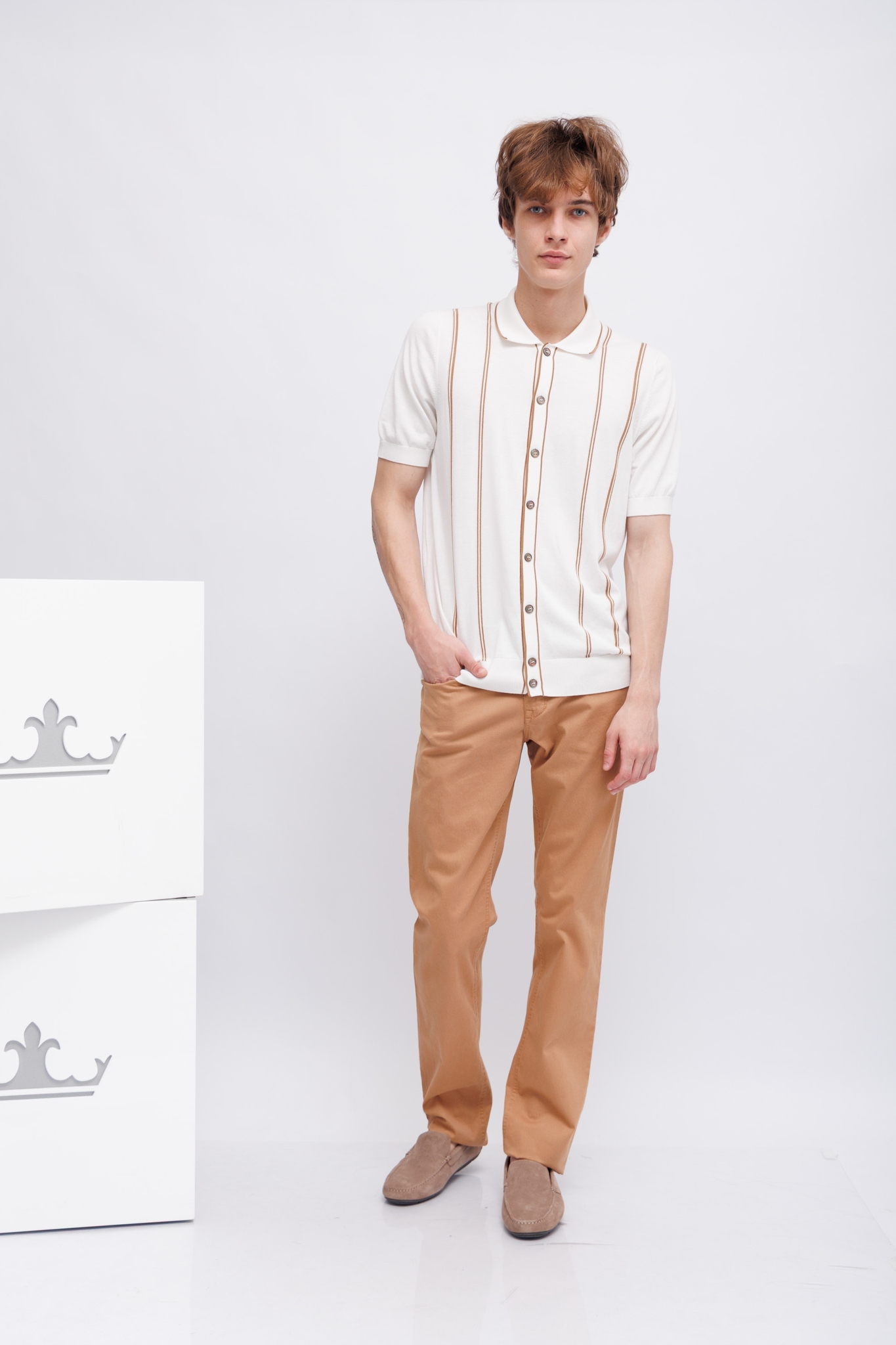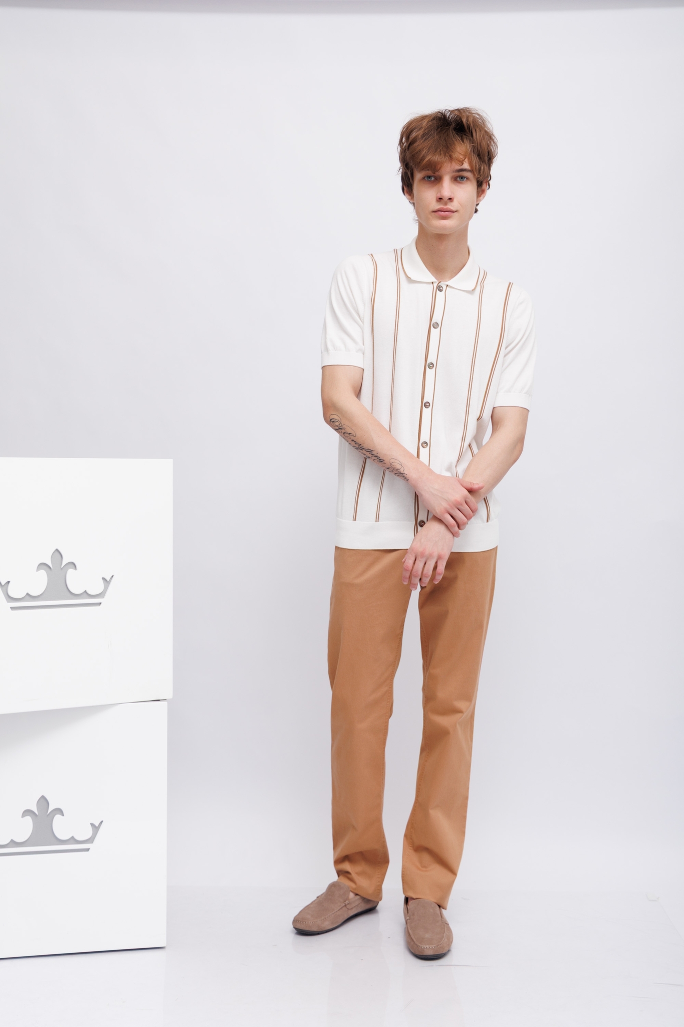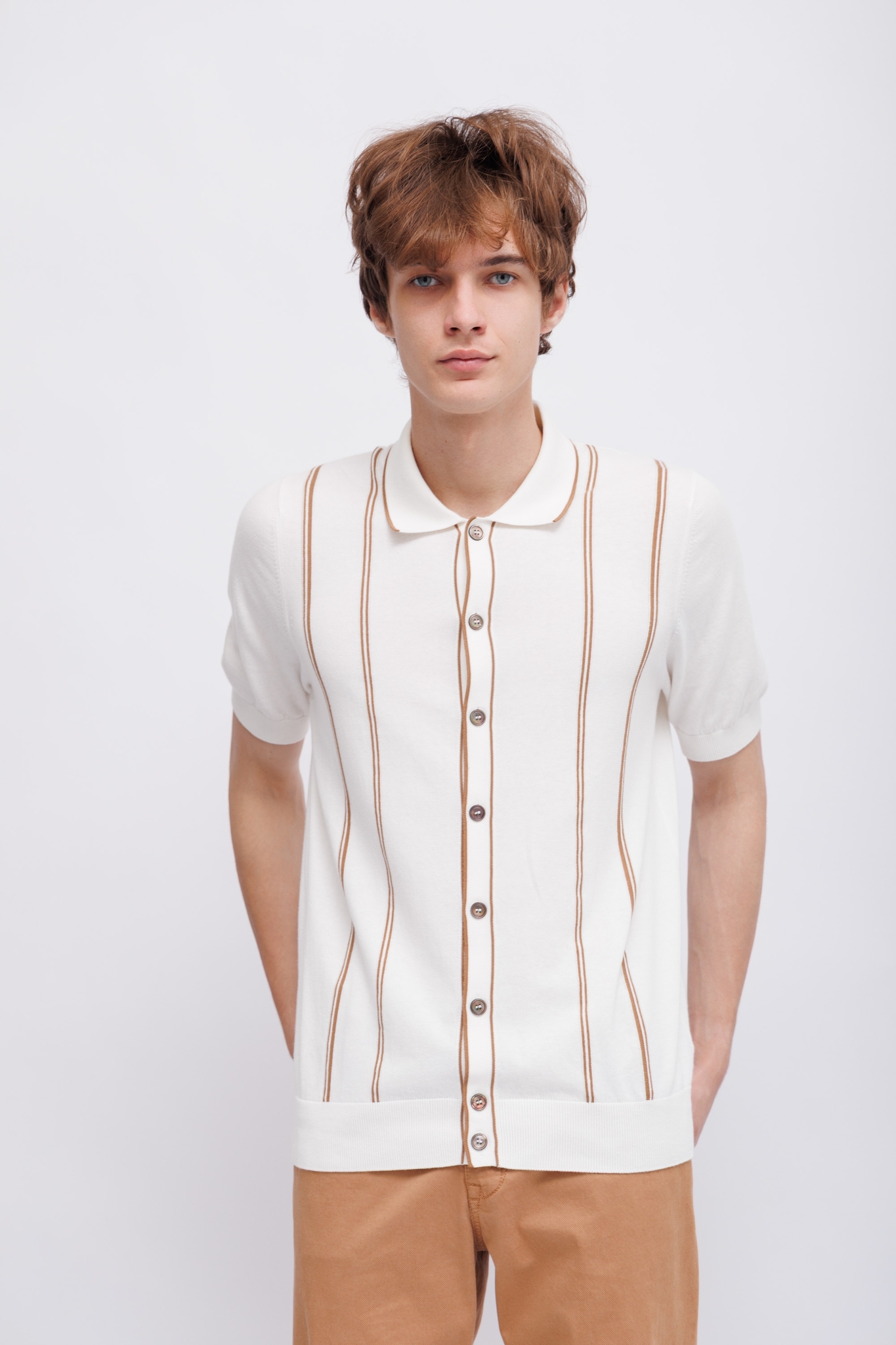 Рубашка трикотажная белая в карамельную полоскуРасслабленный кройНа контрастных пуговицахМанжеты рукавов -трикотажная резинка
