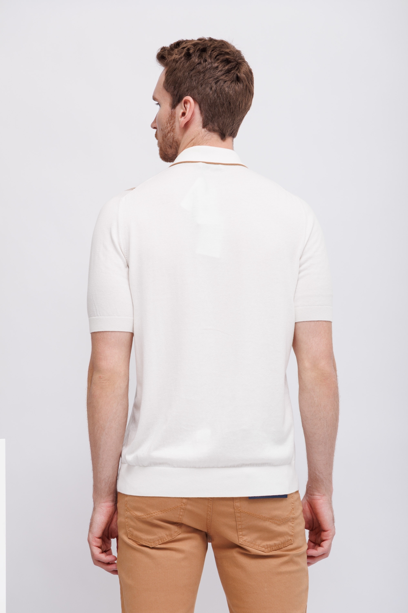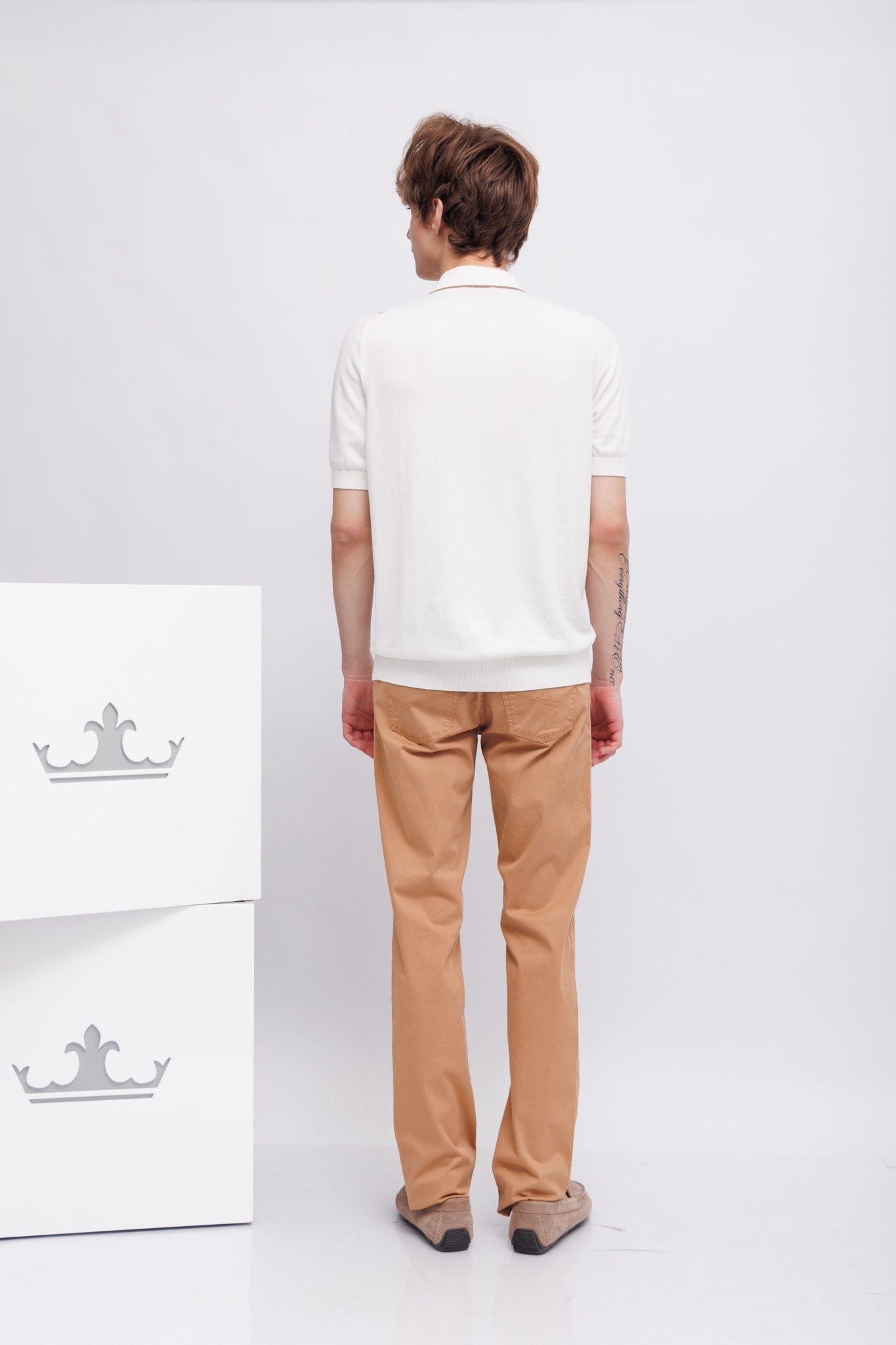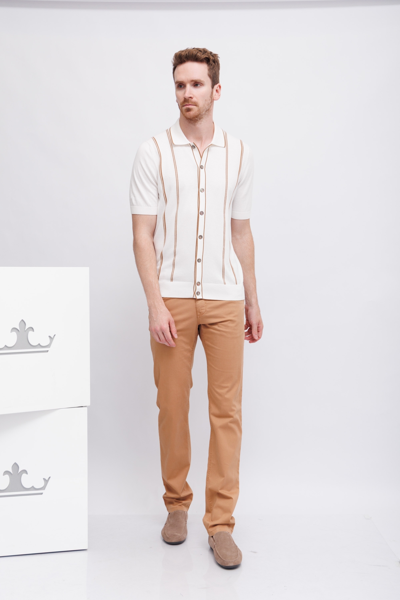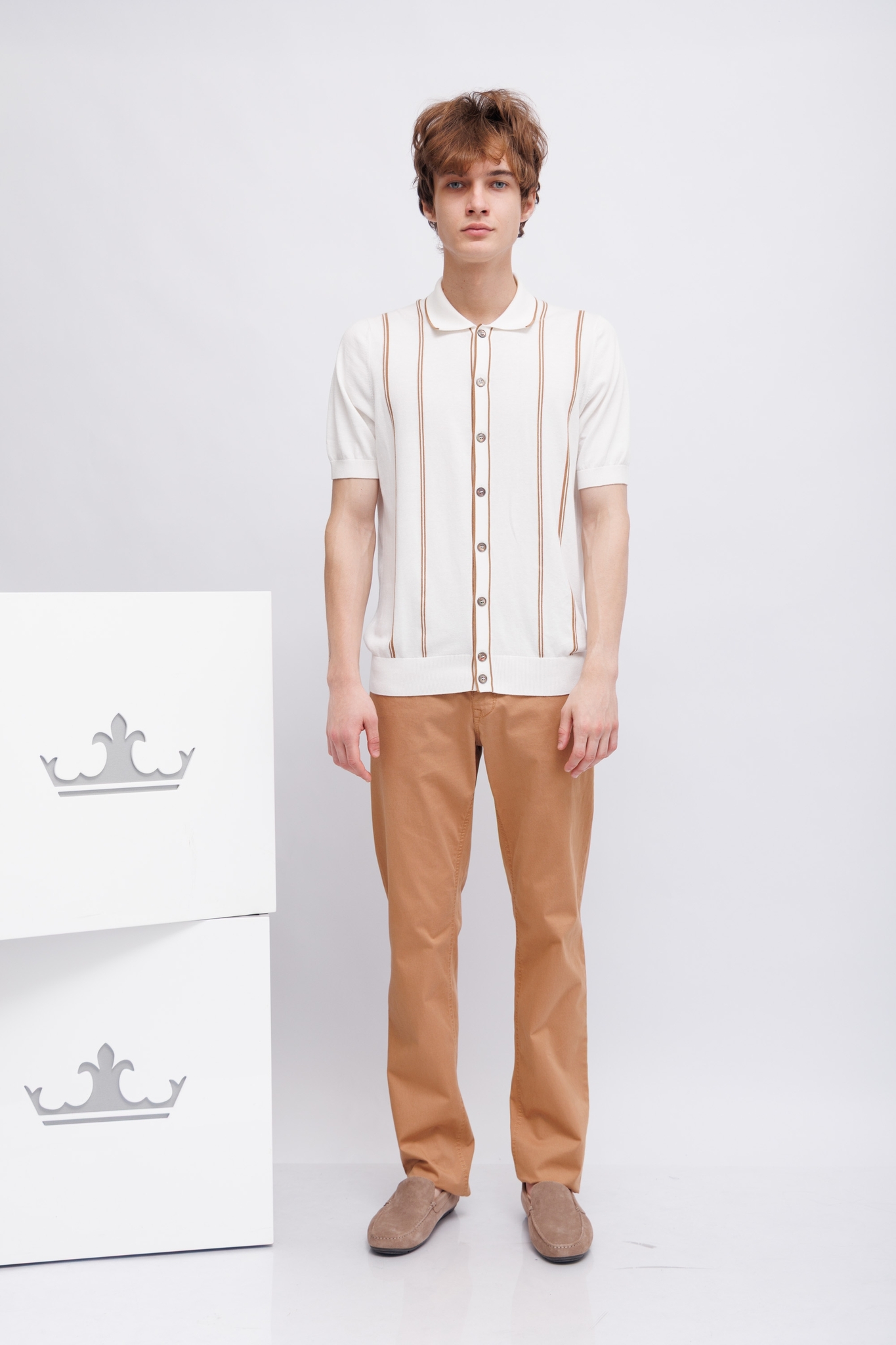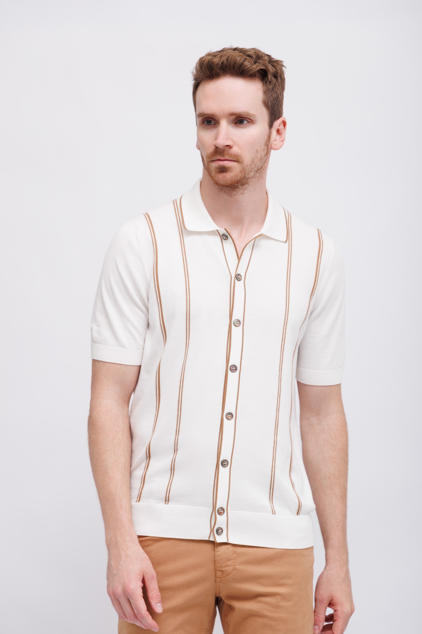 Рубашка трикотажная белая в карамельную полоскуРасслабленный кройНа контрастных пуговицахМанжеты рукавов -трикотажная резинка