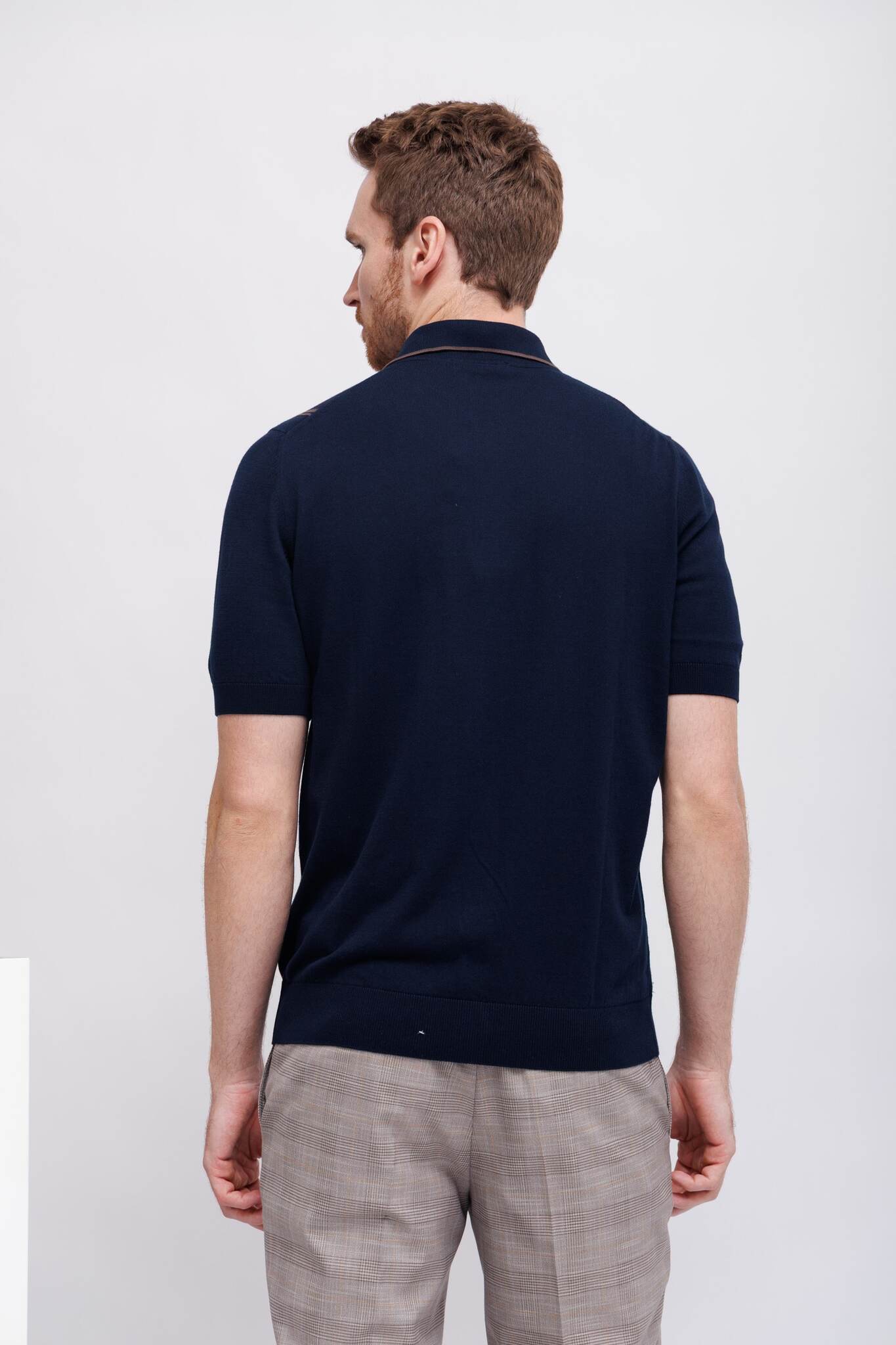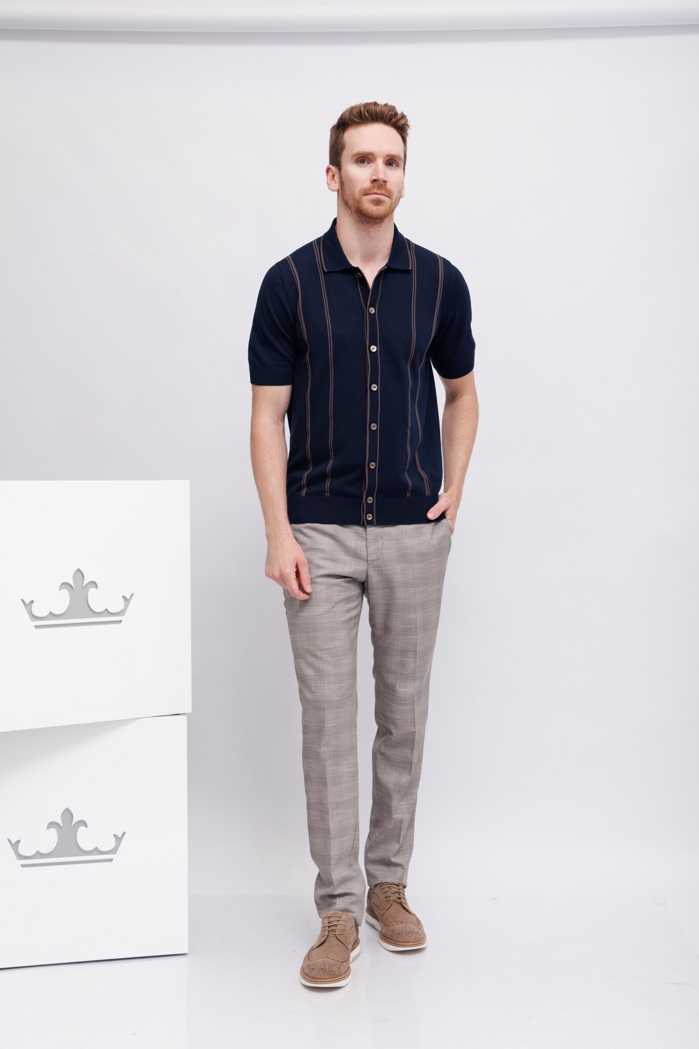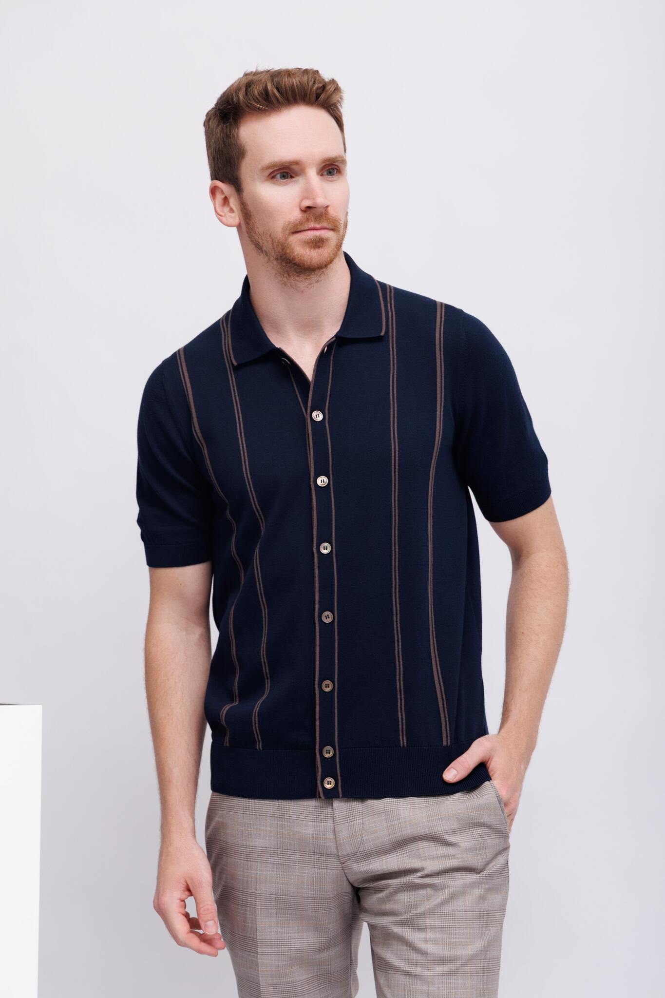 Рубашка трикотажная синяя в карамельную полоскуРасслабленный кройНа контрастных пуговицахМанжеты рукавов -трикотажная резинка