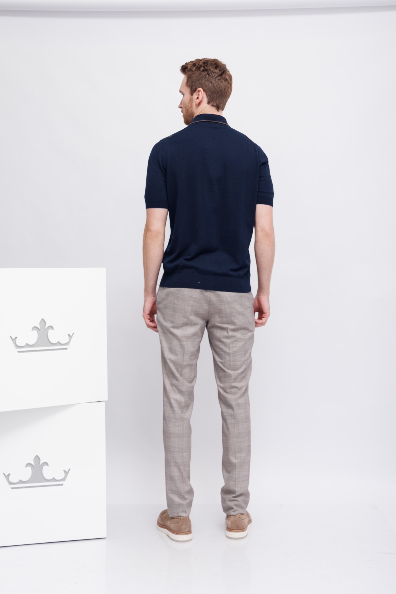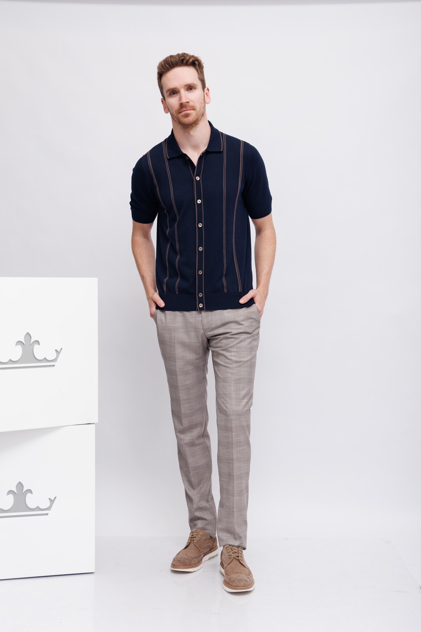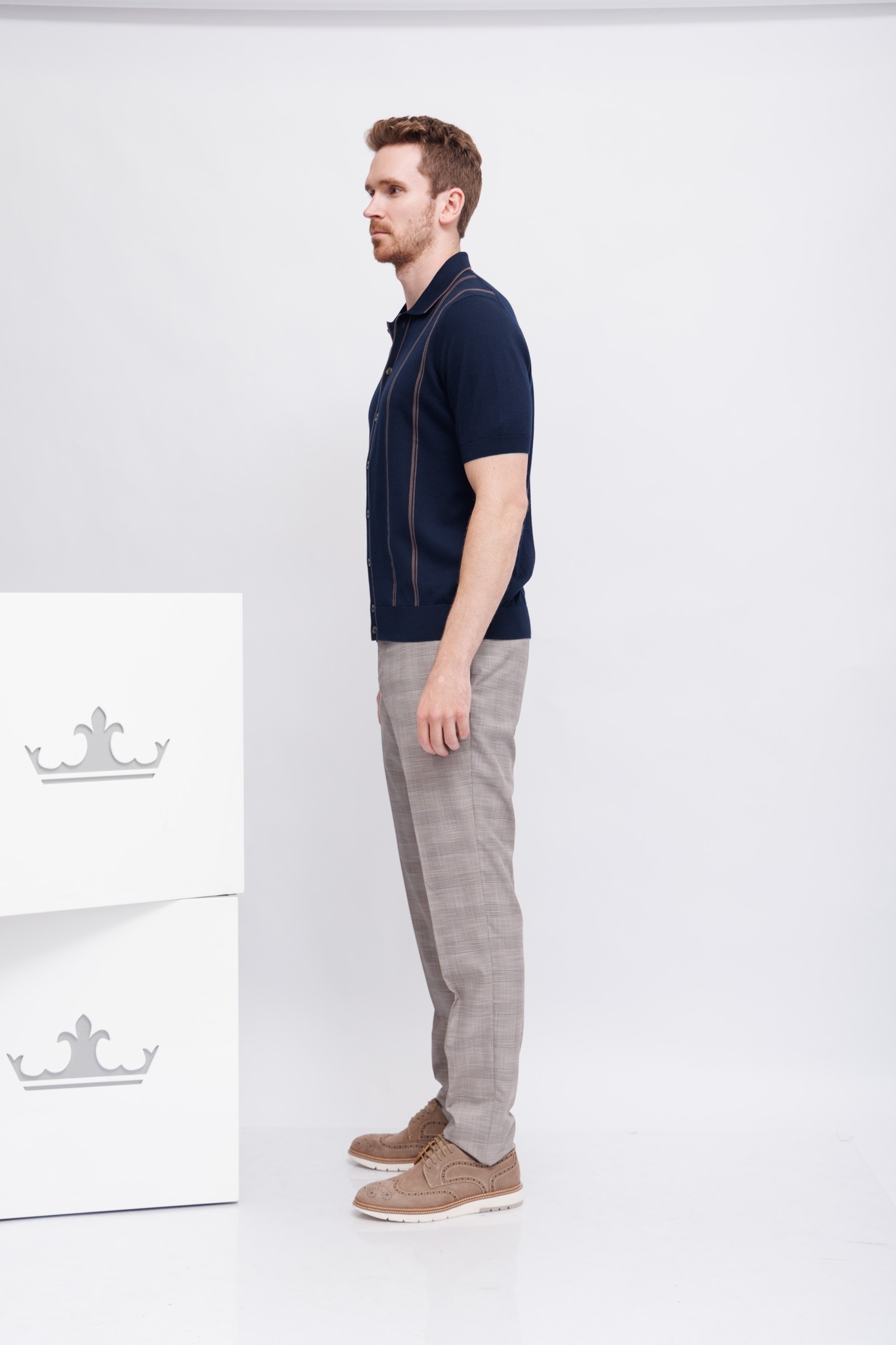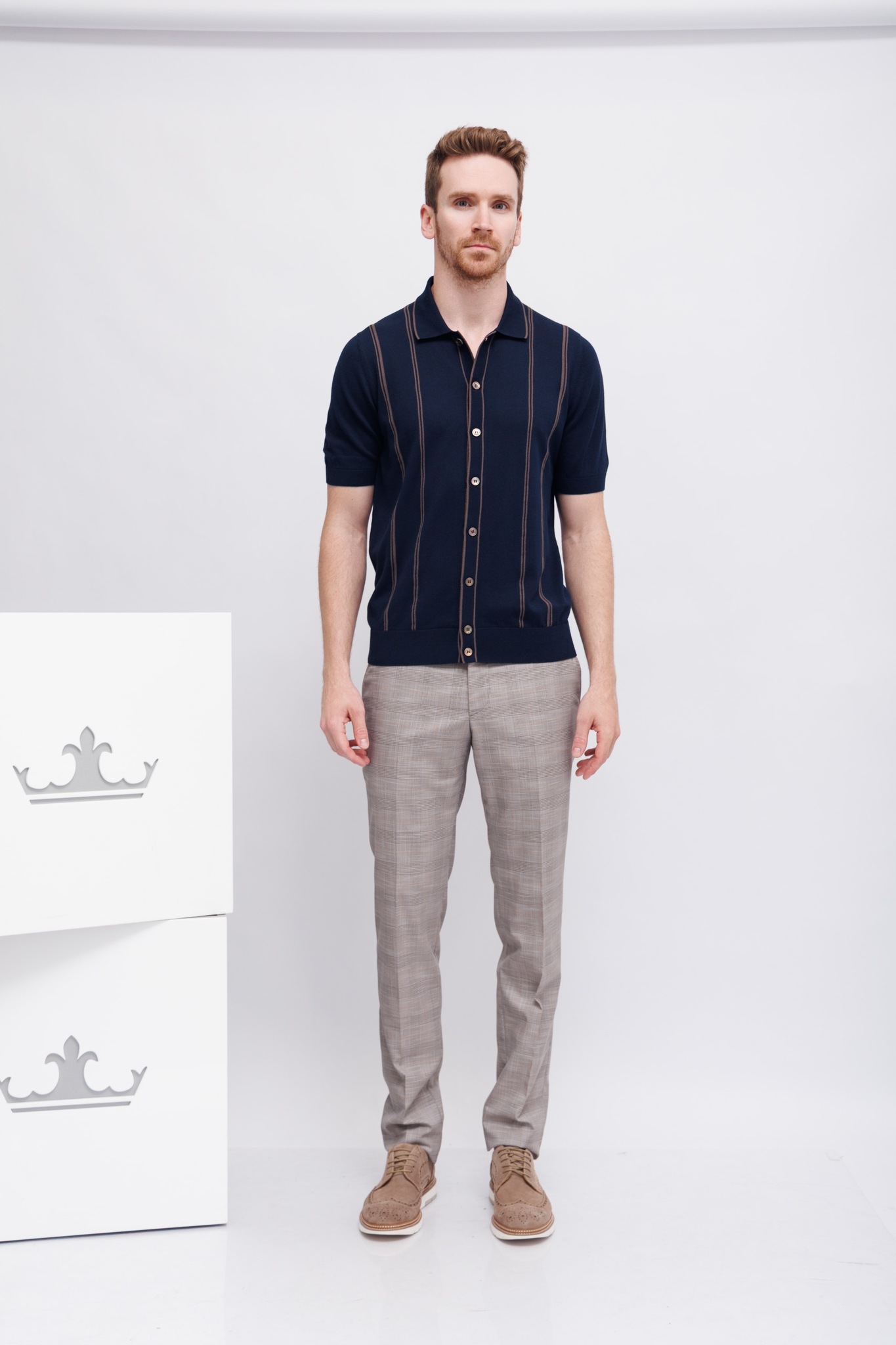 Рубашка трикотажная синяя в карамельную полоскуРасслабленный кройНа контрастных пуговицахМанжеты рукавов -трикотажная резинка