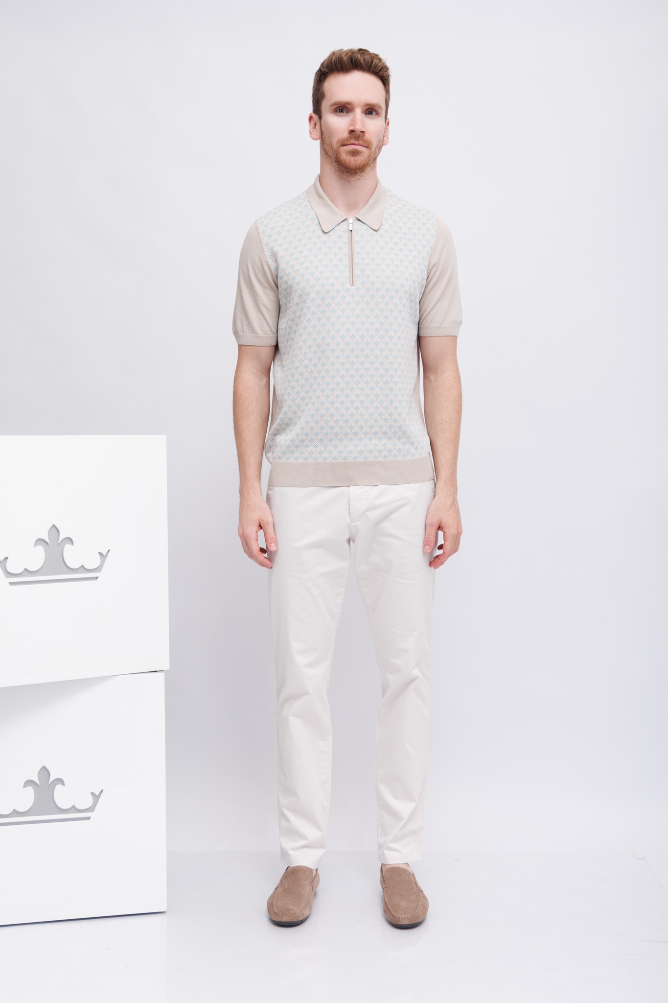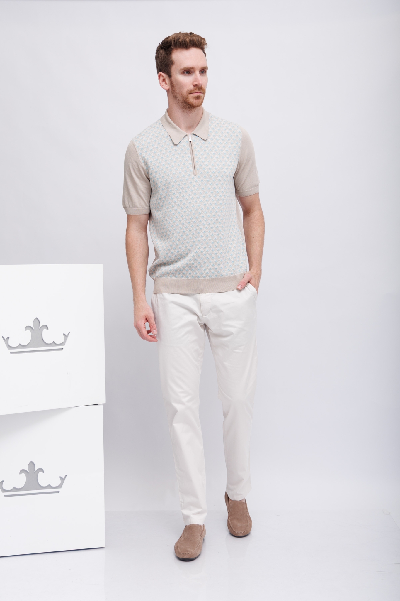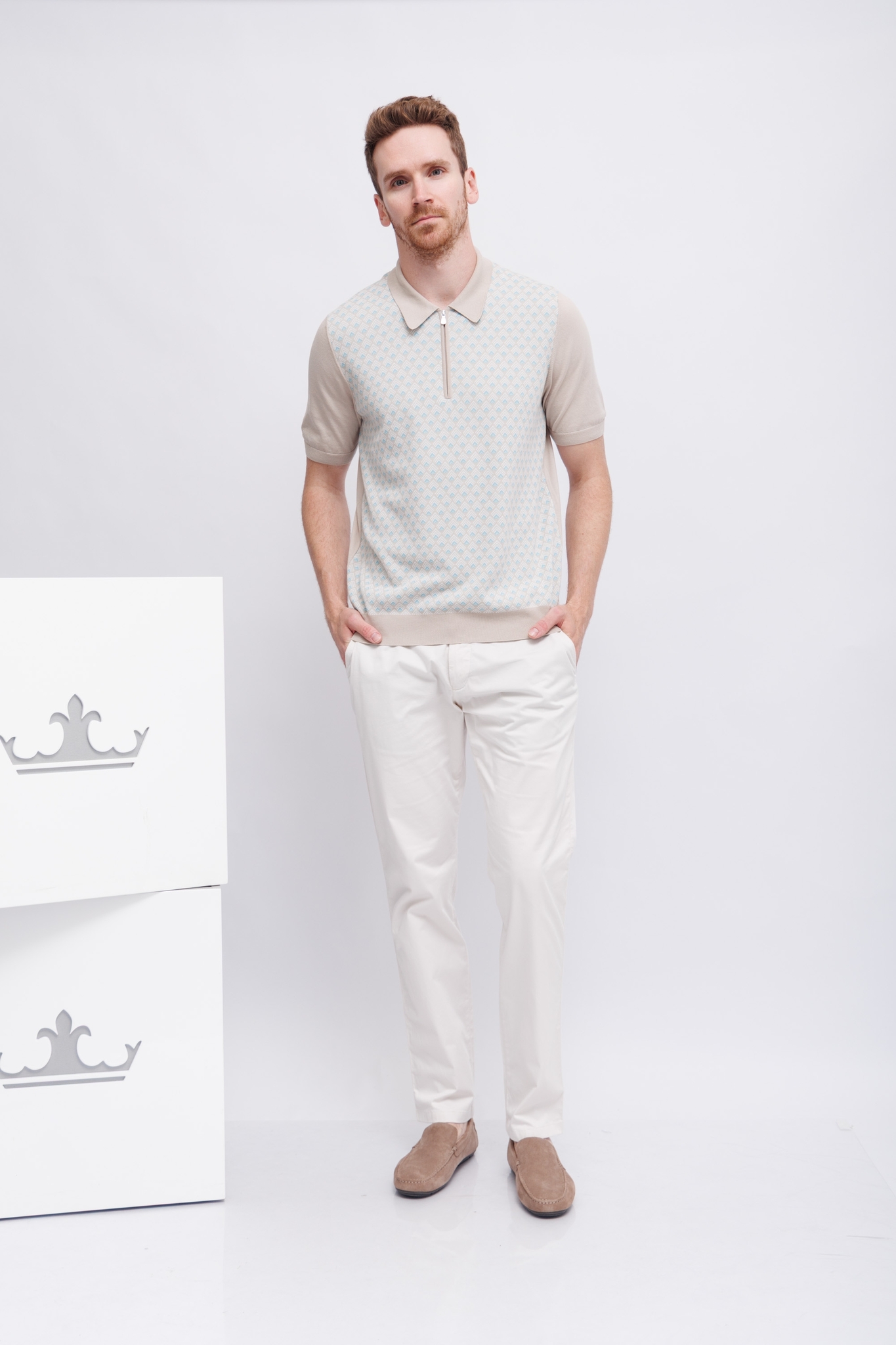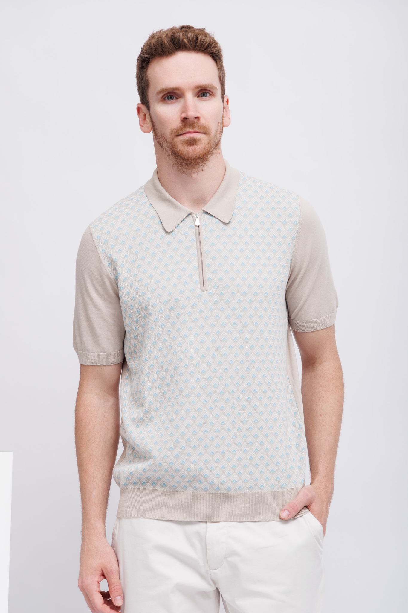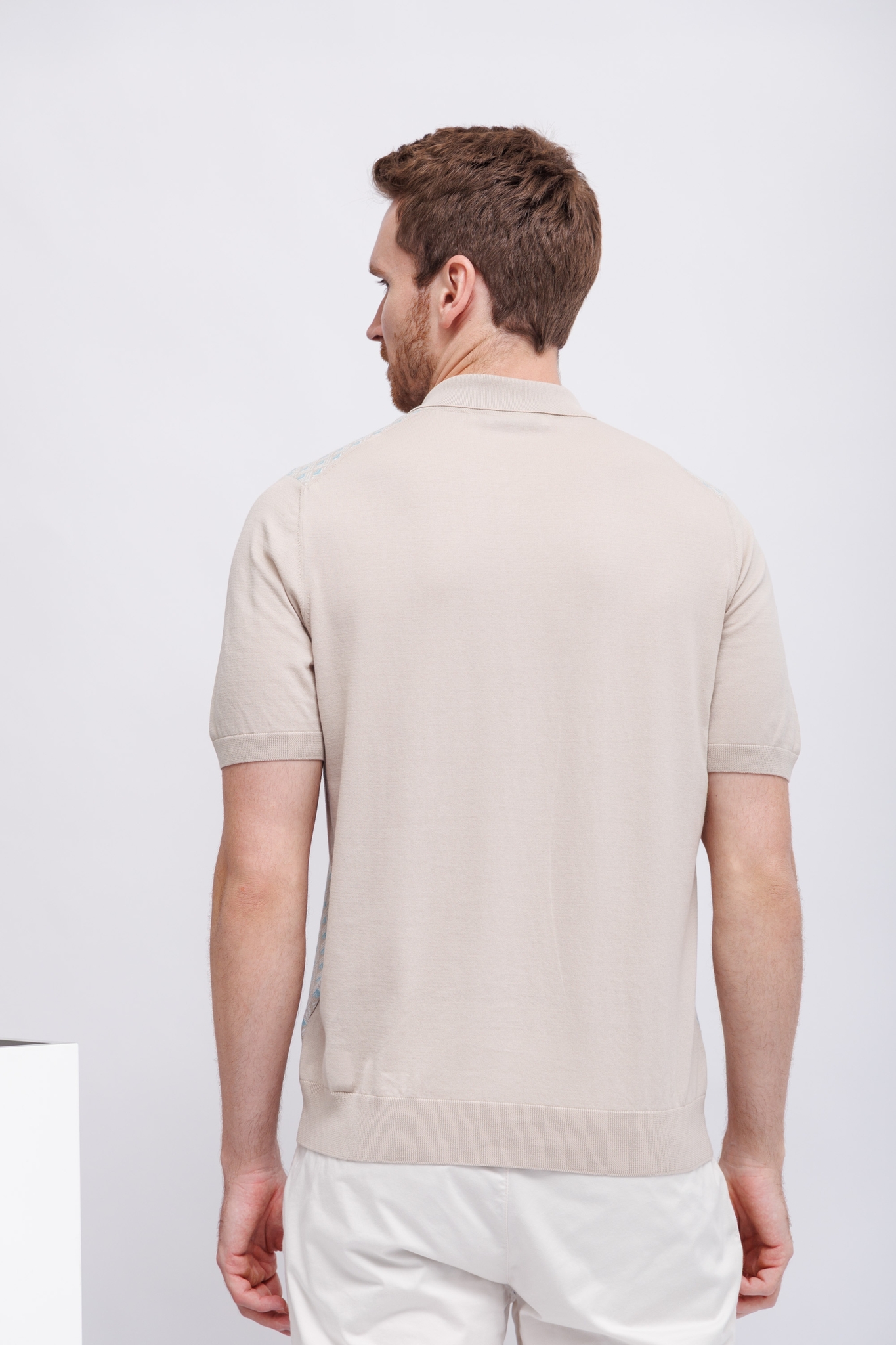 Поло трикотажное в сочетании светло-бежевого, молочного и ментолового