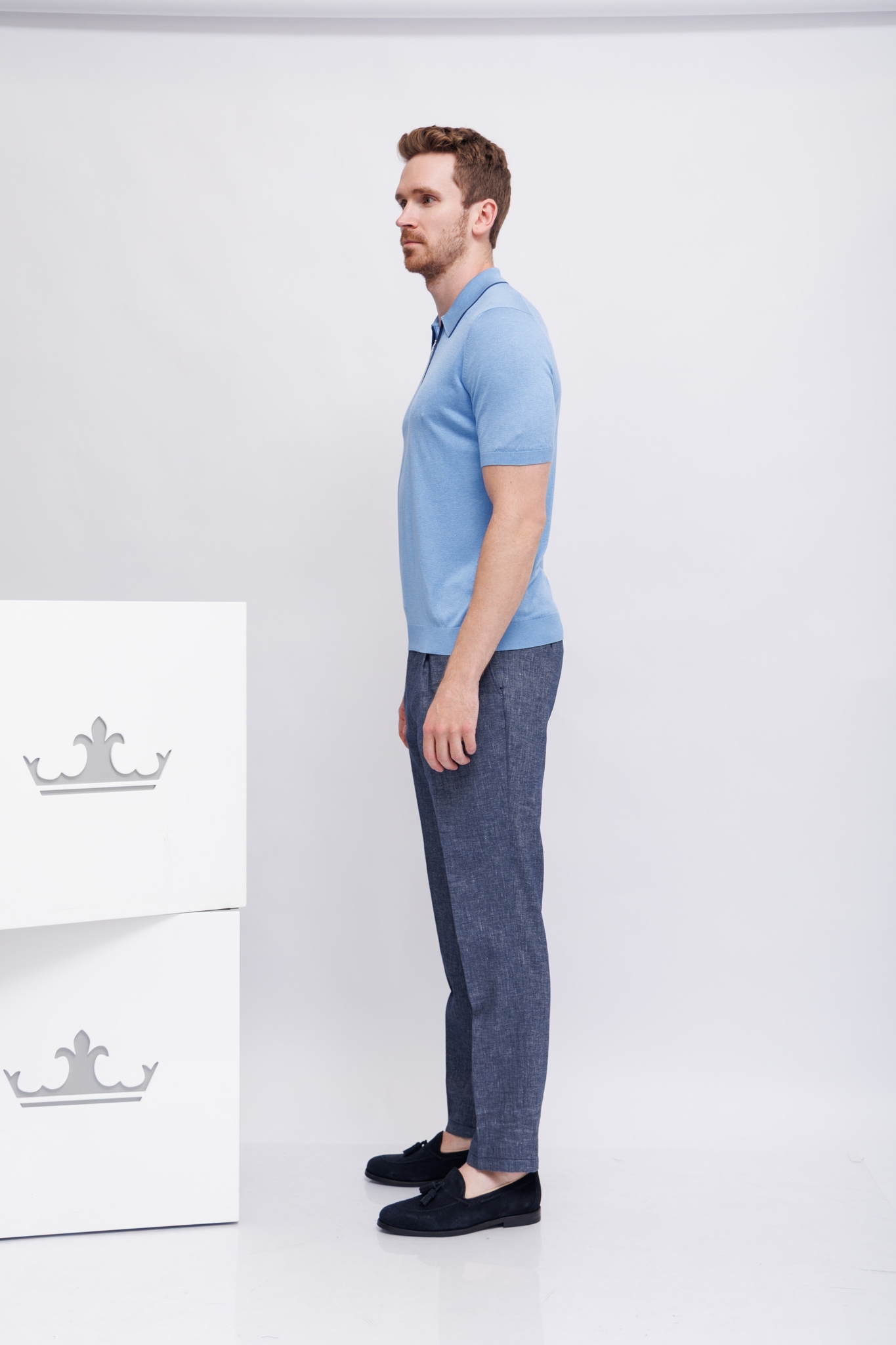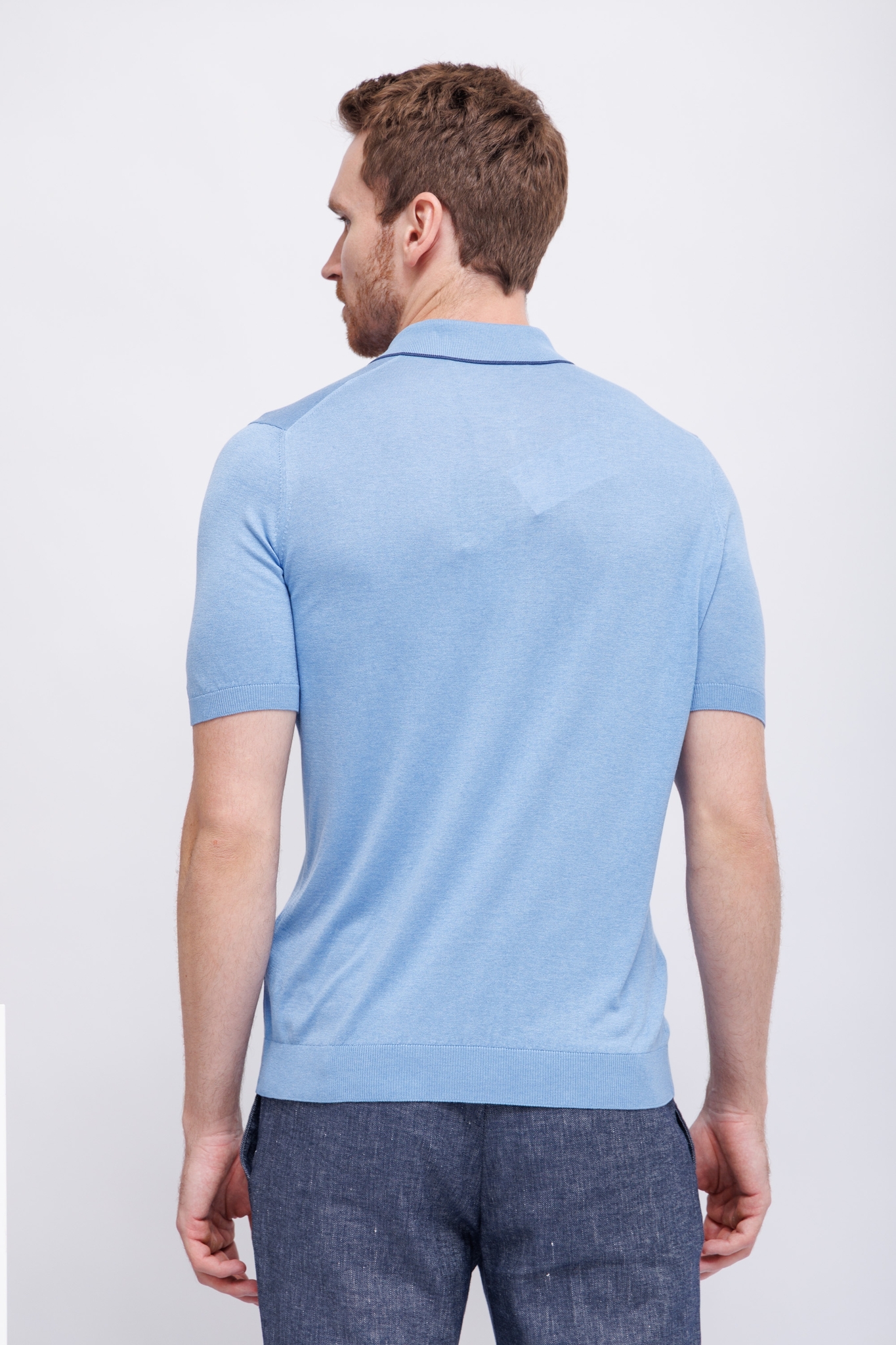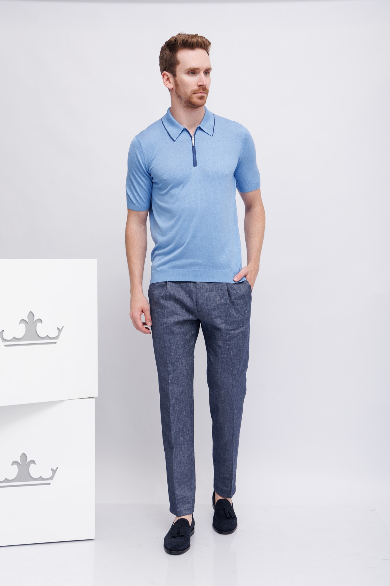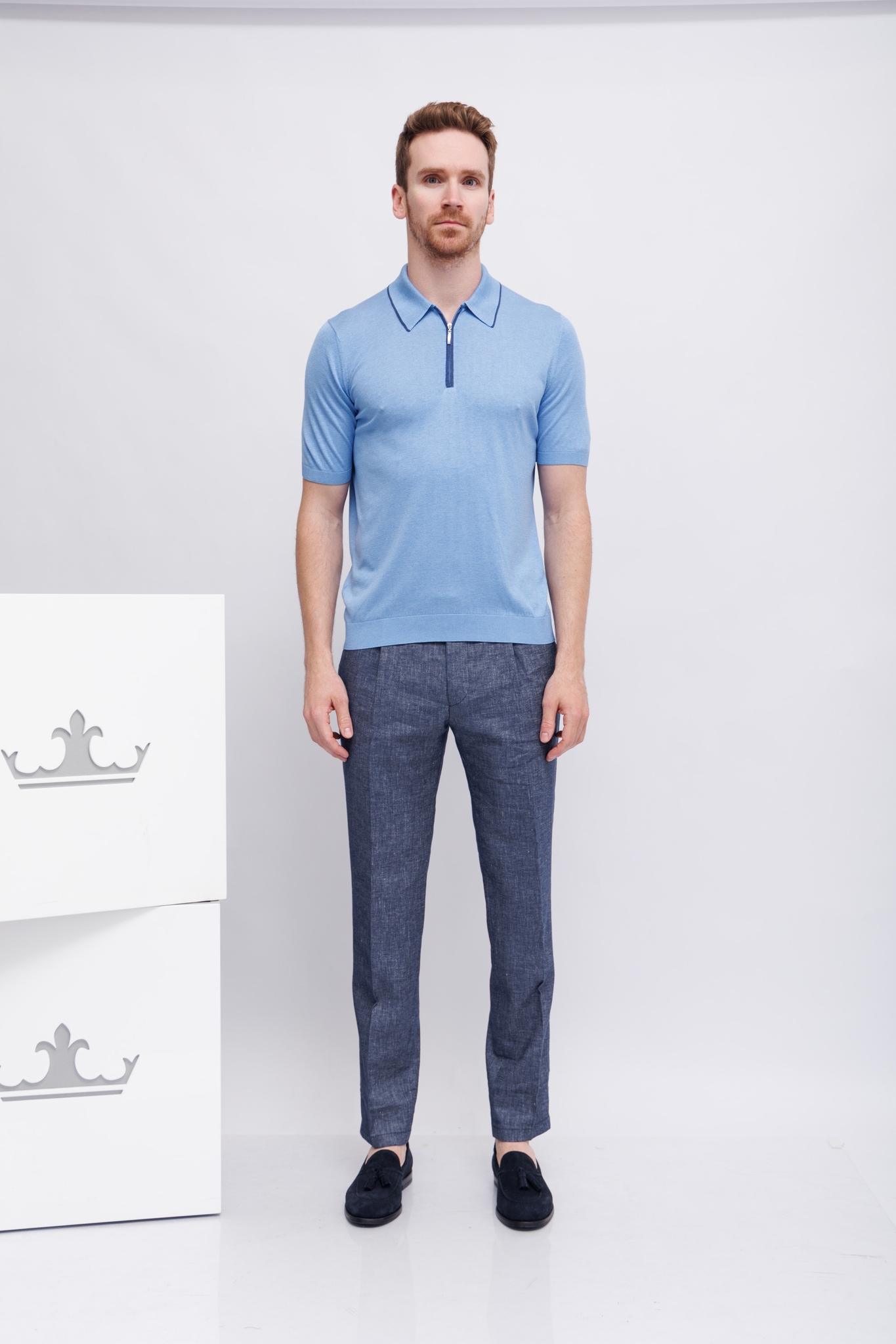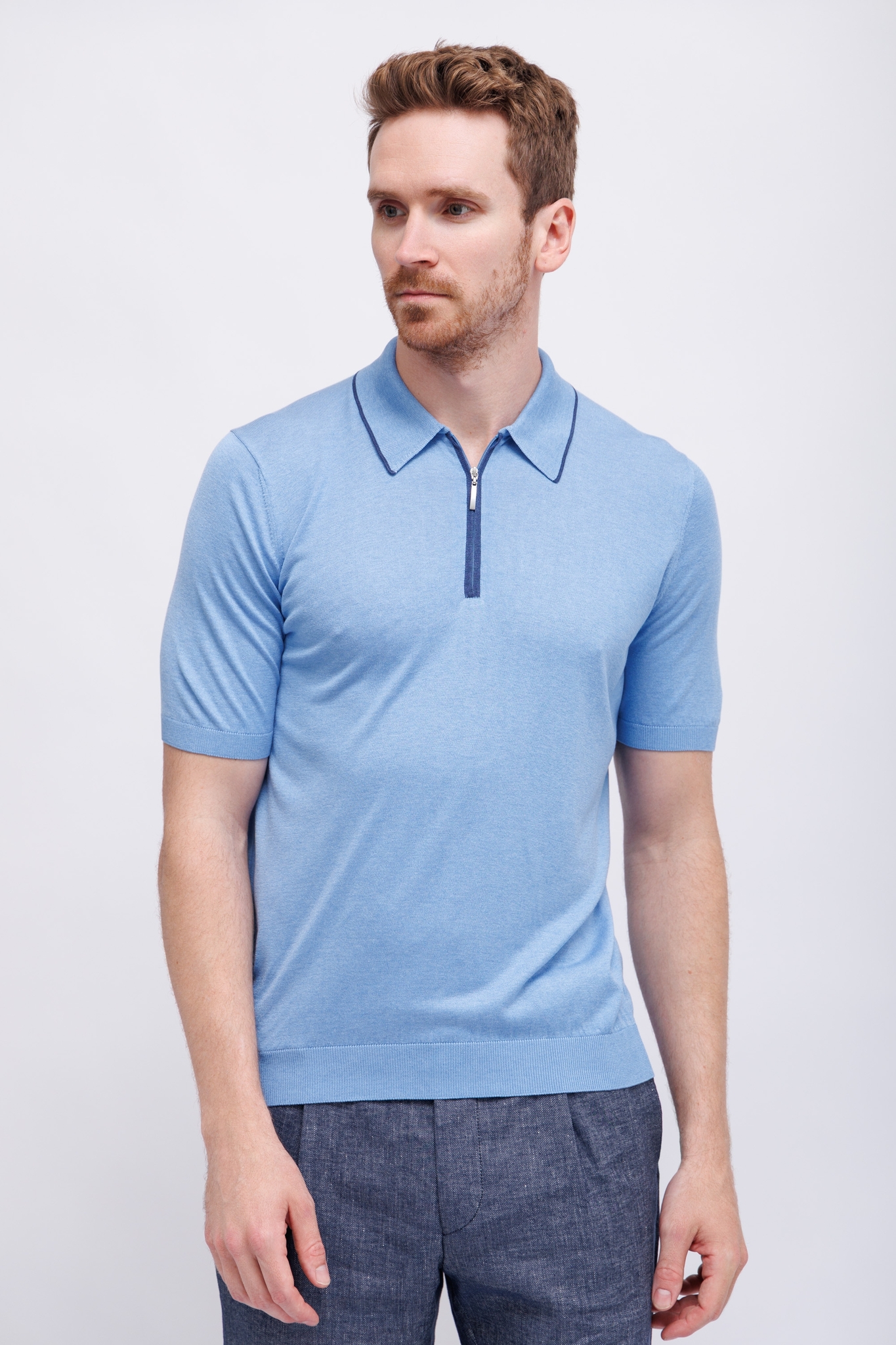 Насыщенно-голубого цвета с темно-синей отделкойСлегка приталенный кройВорот на молнииМанжеты рукавов и низ изделия -трикотажная резинка