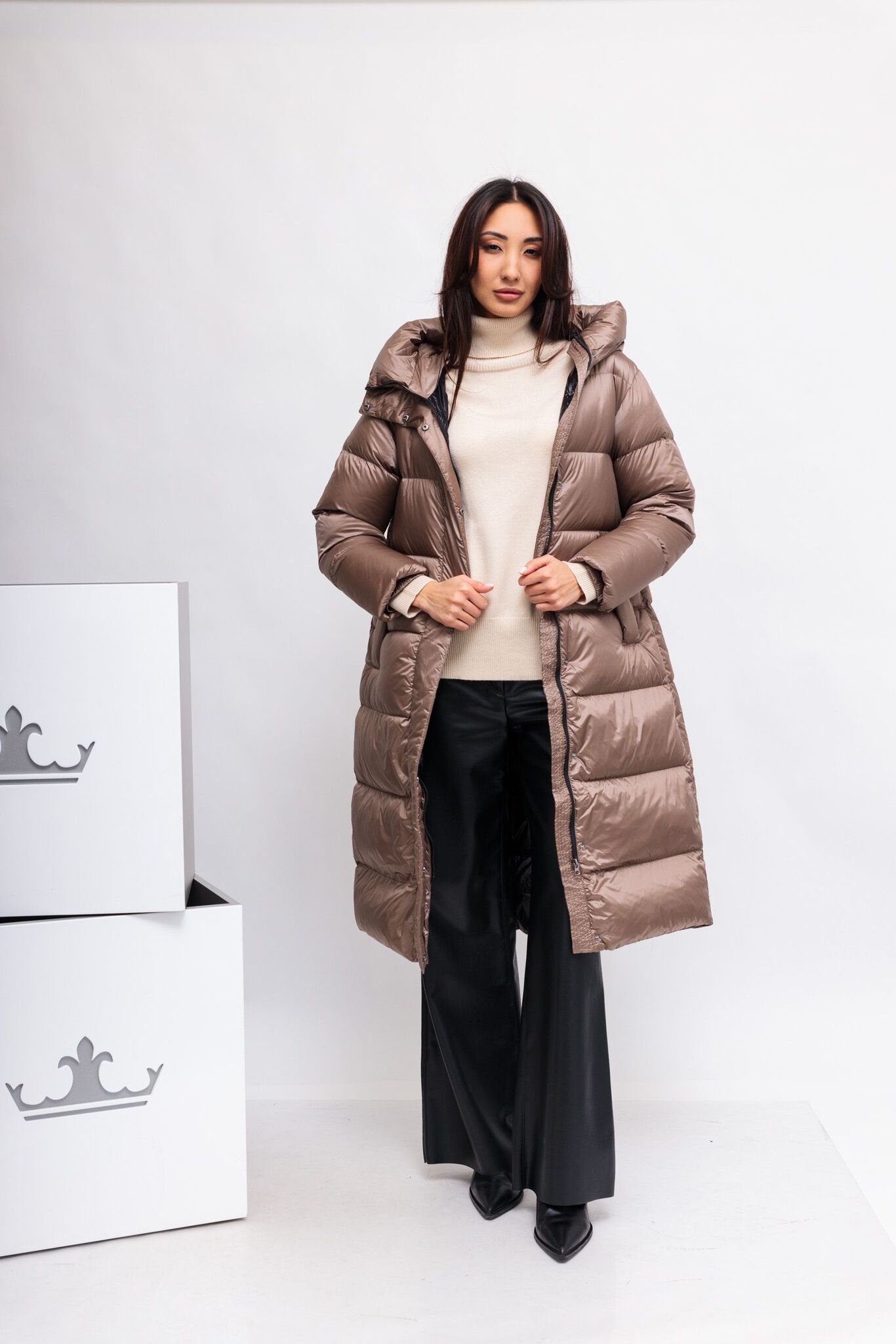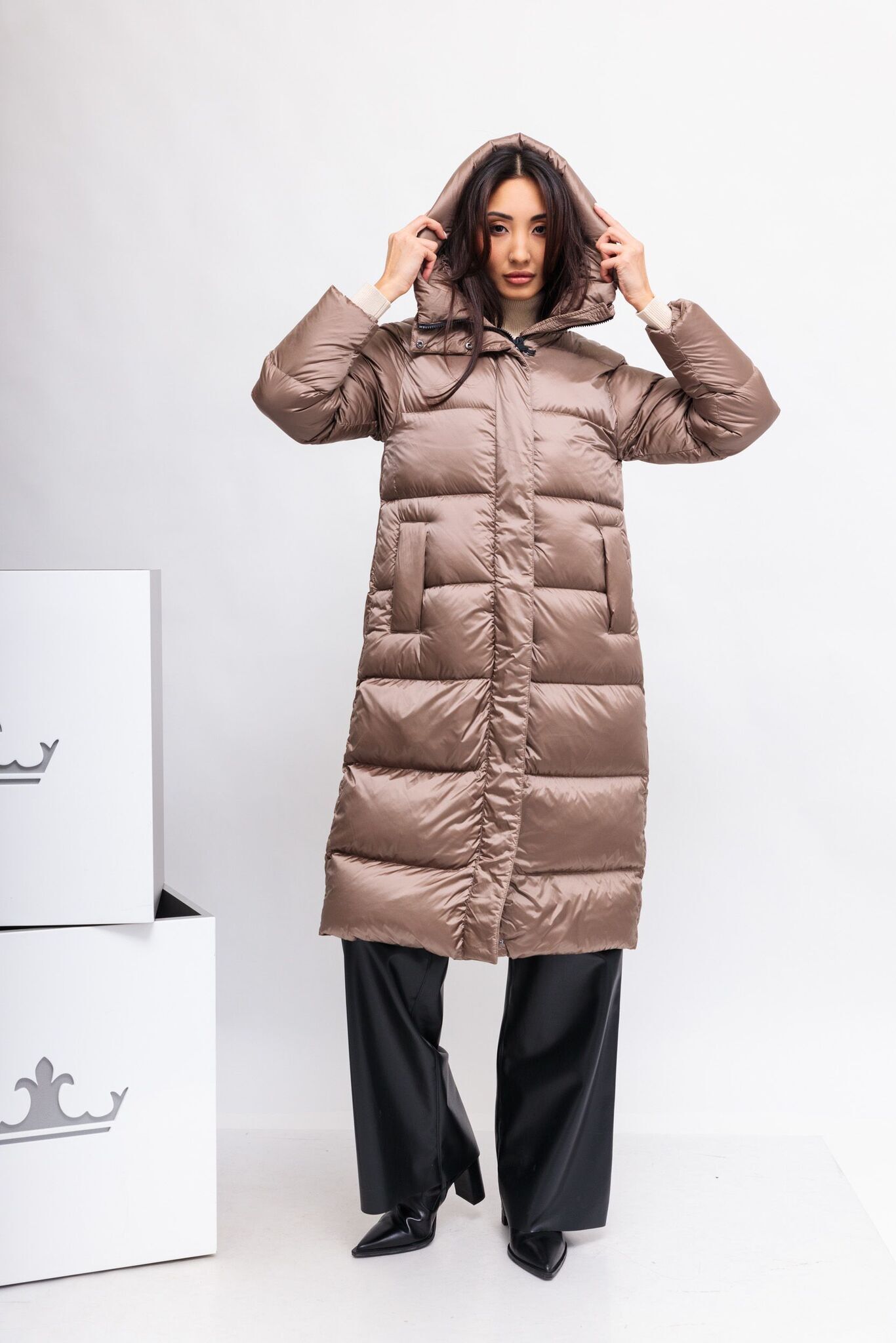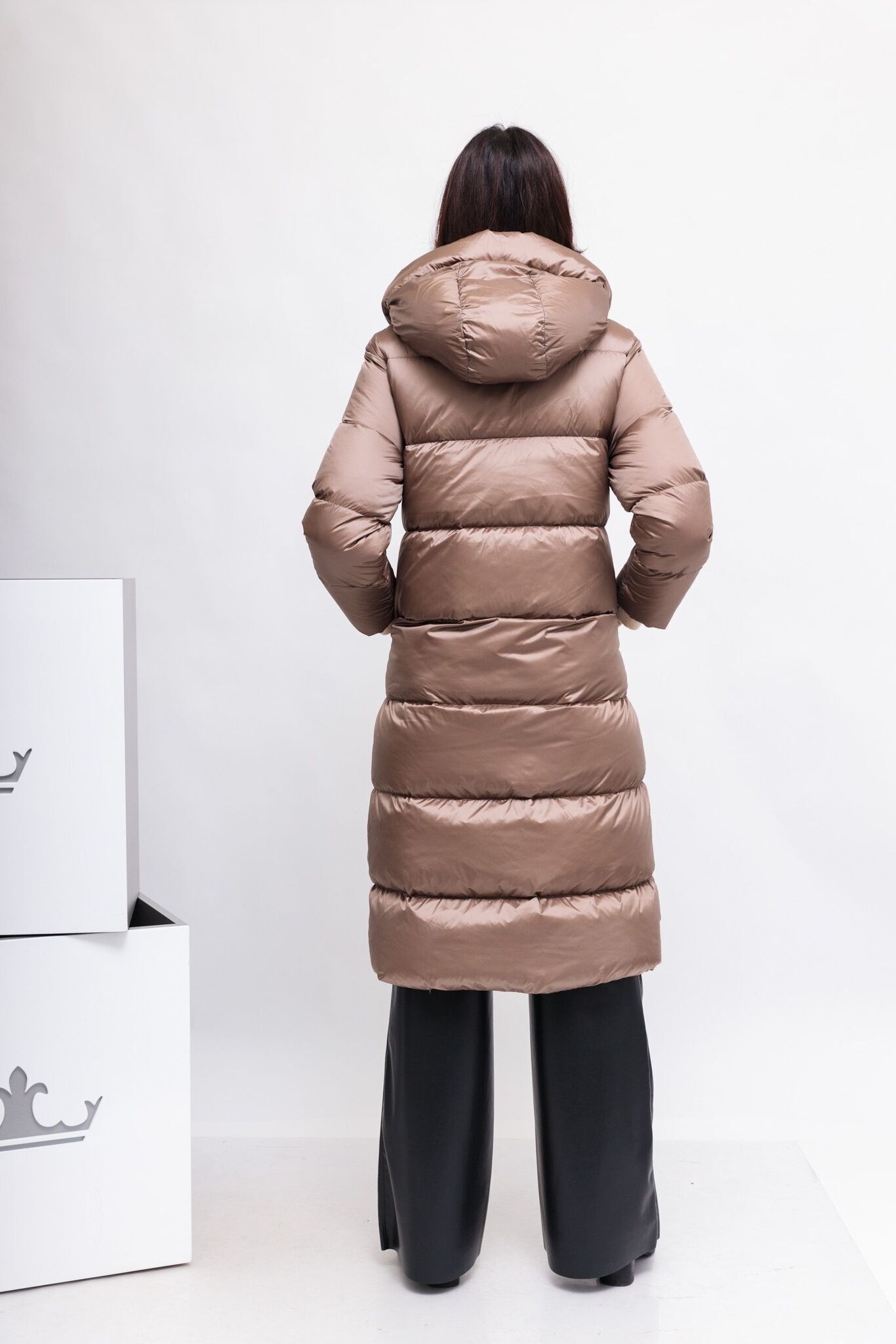 HETREGO Пуховик - миди длинный с легким сатиновым нейлоном