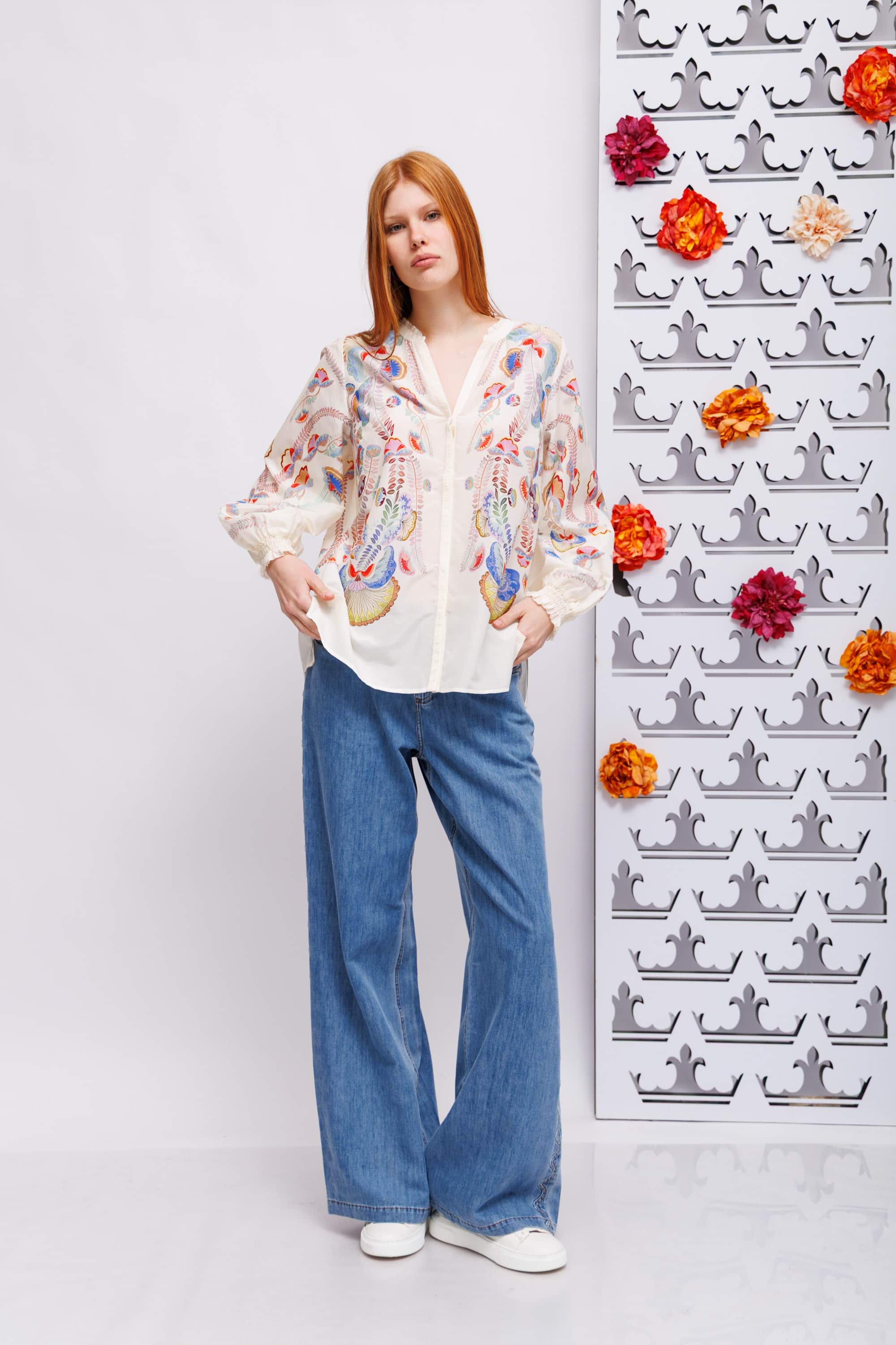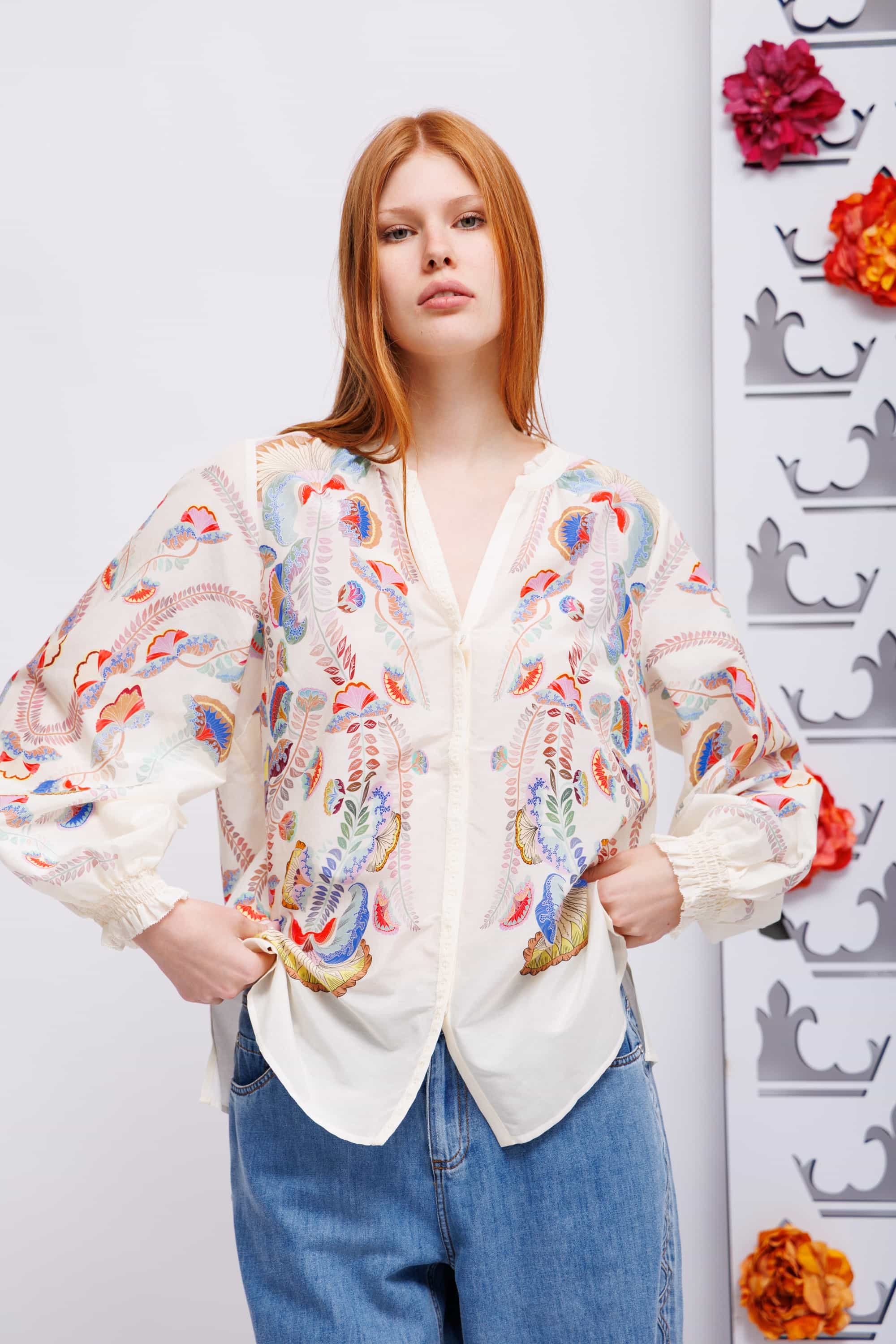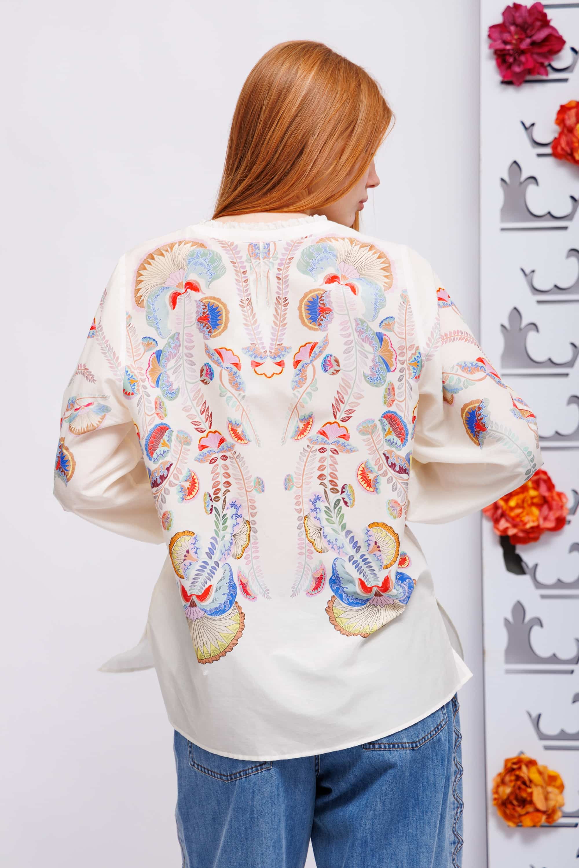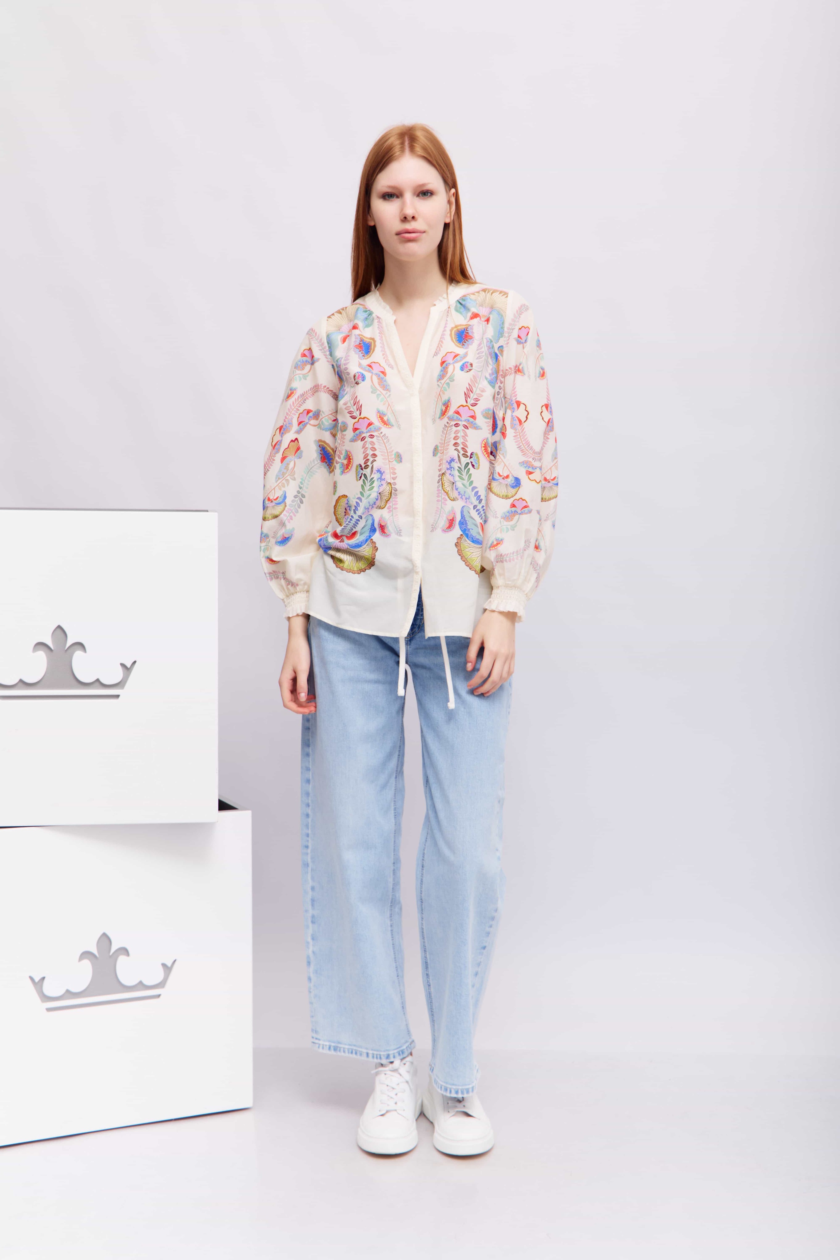 Блуза из хлопка с шелком в цветочный узор
