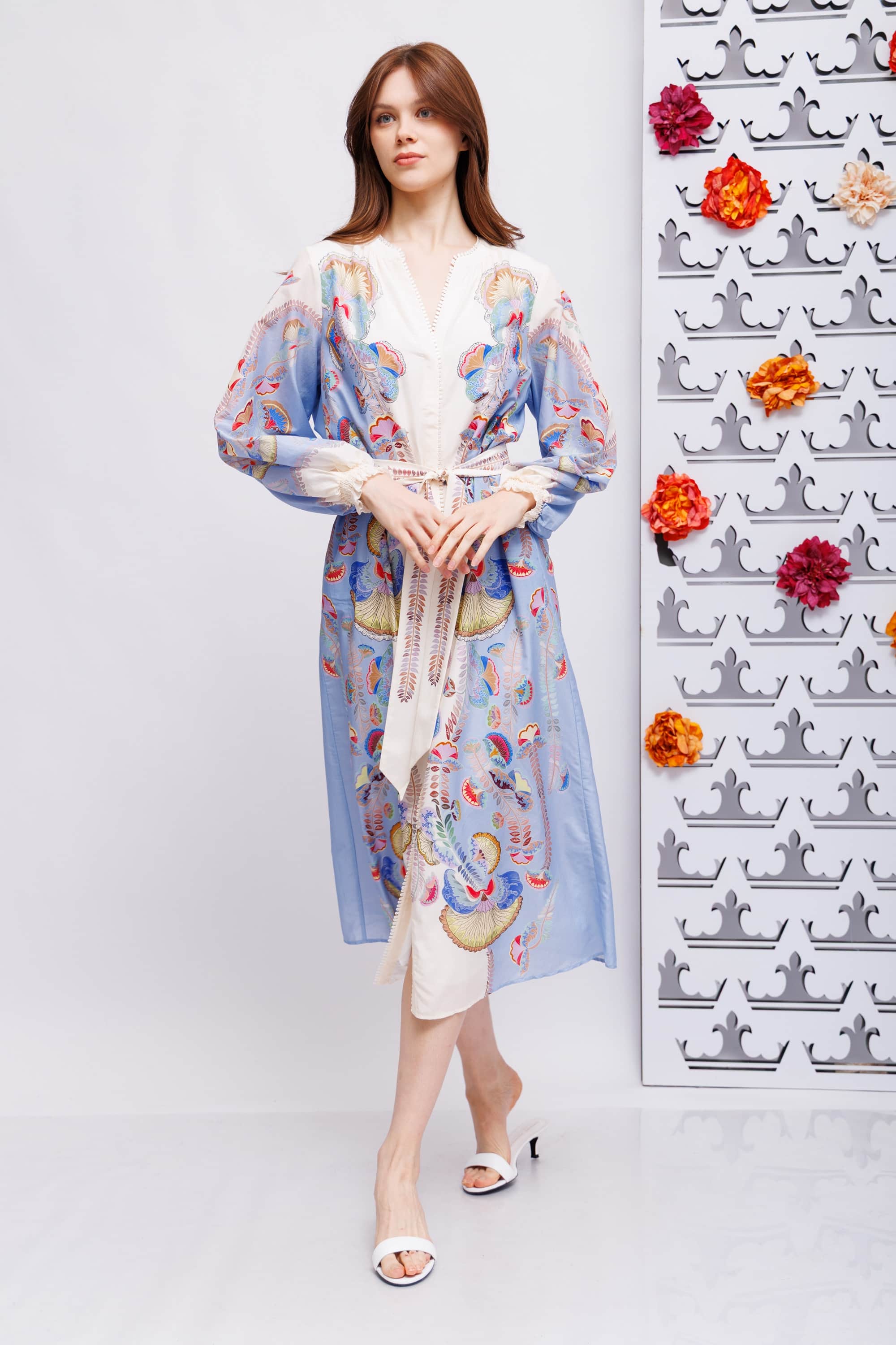 Платье из хлопка с шелком в цветочный узор