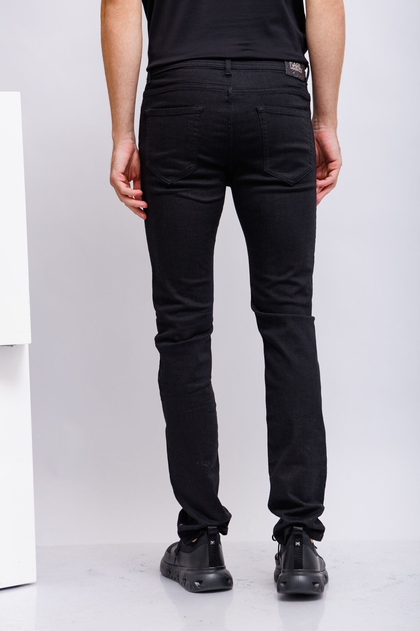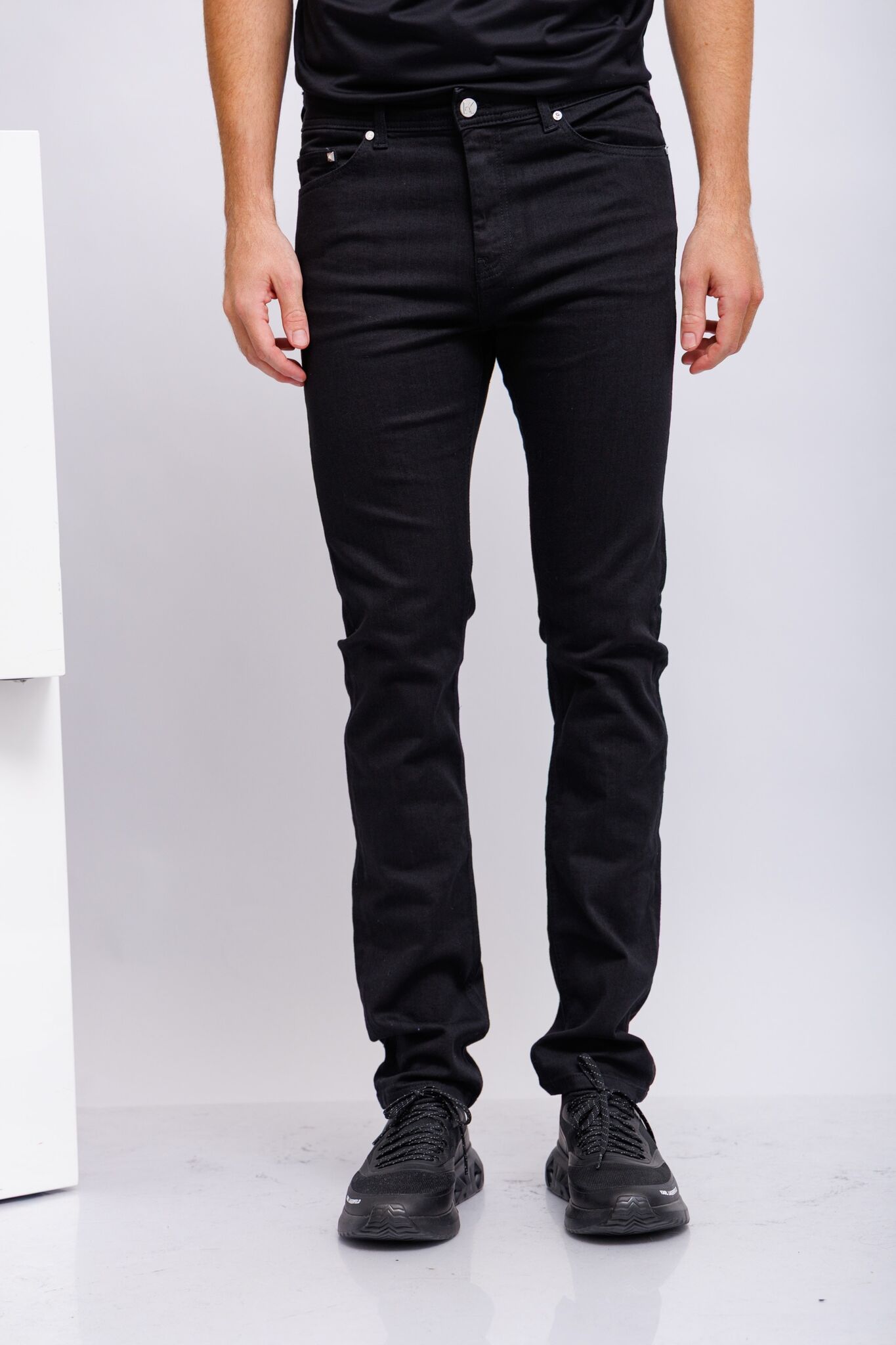 Джинсы черного цветаМодель "5 карманов"Слегка зауженныеСзади на поясе -крупный кожаный лейбл с металлическим логотипом