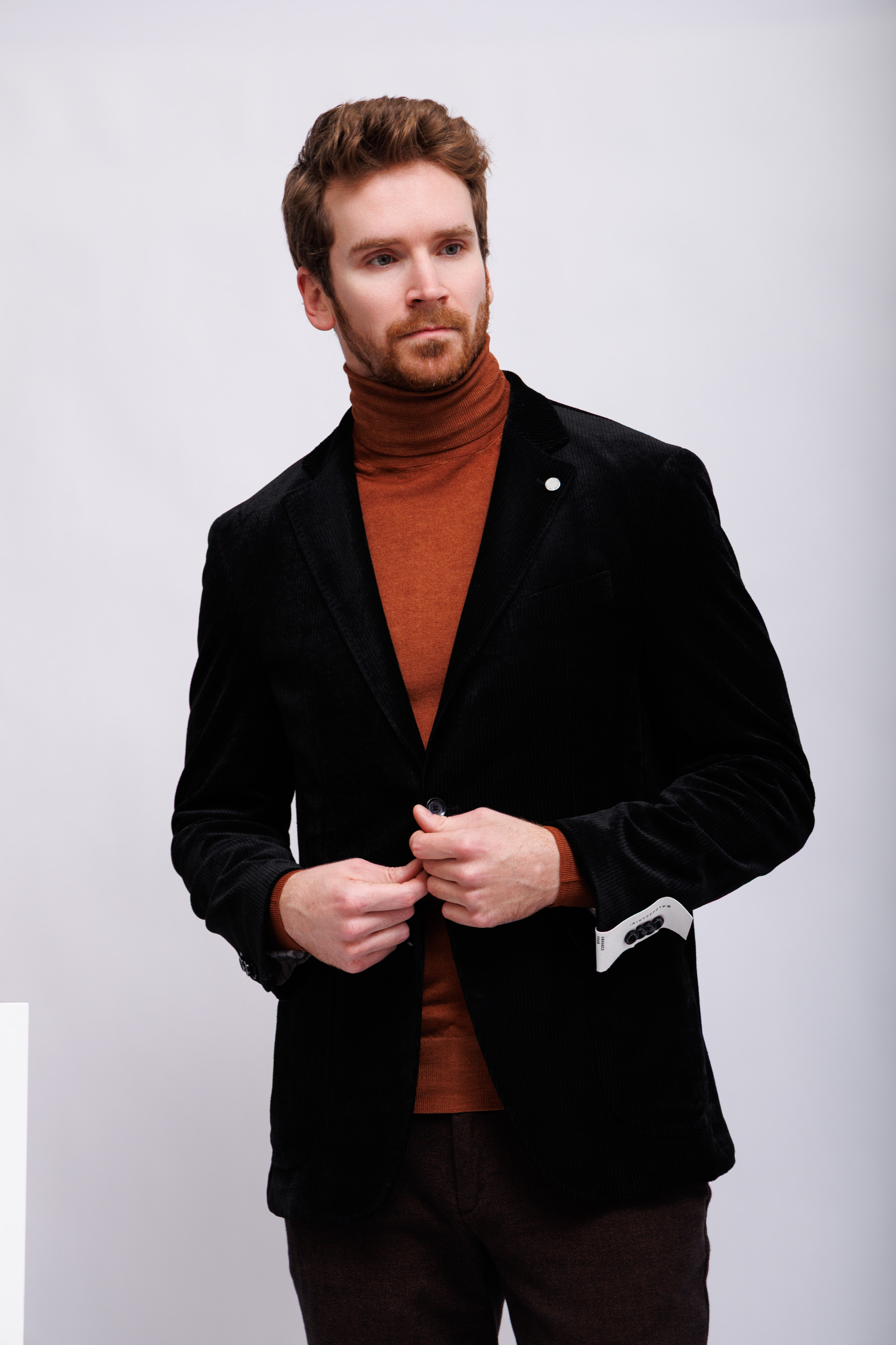 С винтажным эффектомВысокий ворот с отворотомДлинные рукаваОблегающий крой