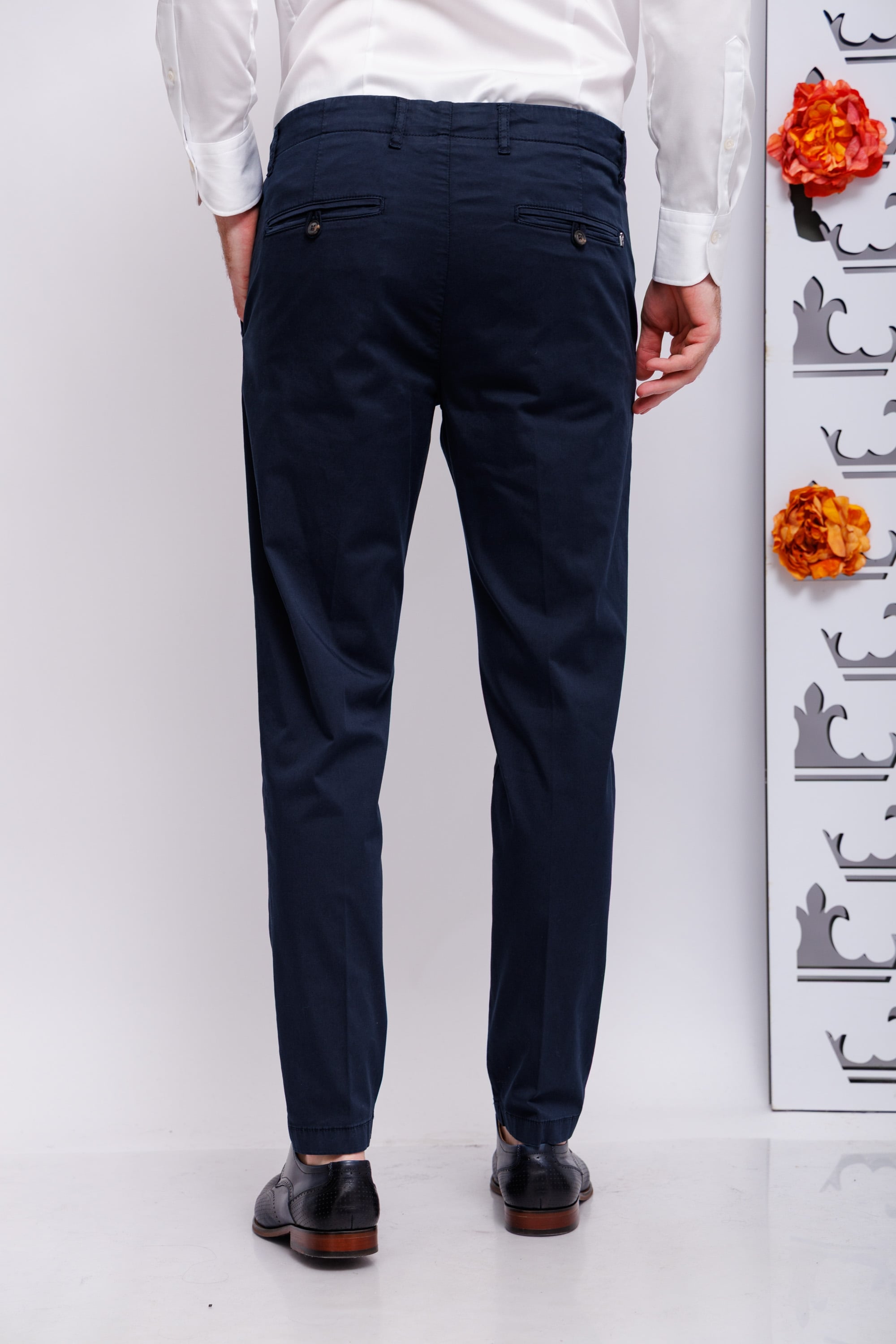 Крой зауженныйПояс со шлевкамиГульфик на скрытой молнии и пуговицеКосые боковые карманыСзади- карманы-рамки на пуговицах
