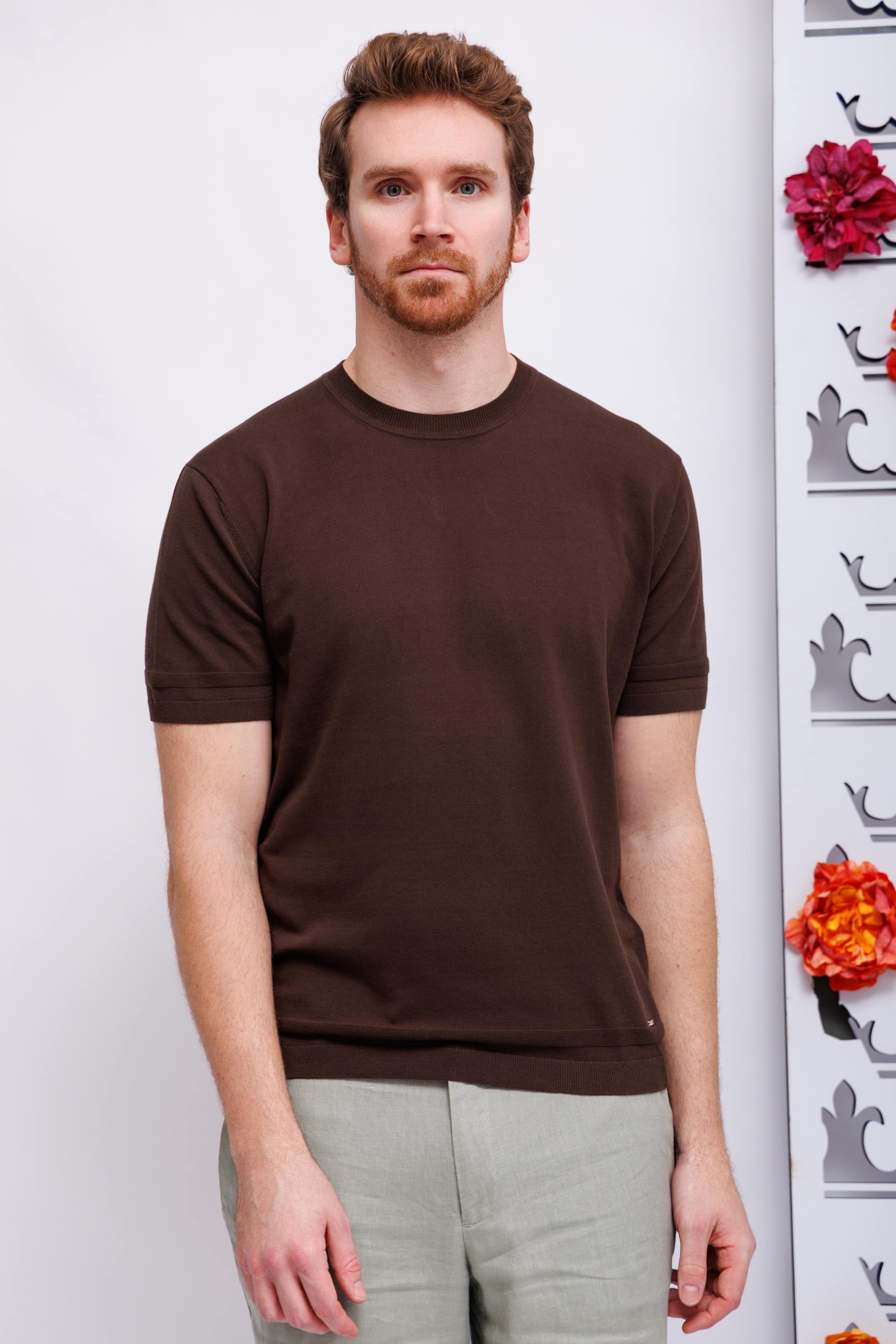 Джемпер шоколадного цветаКруглый вырезКороткие рукава