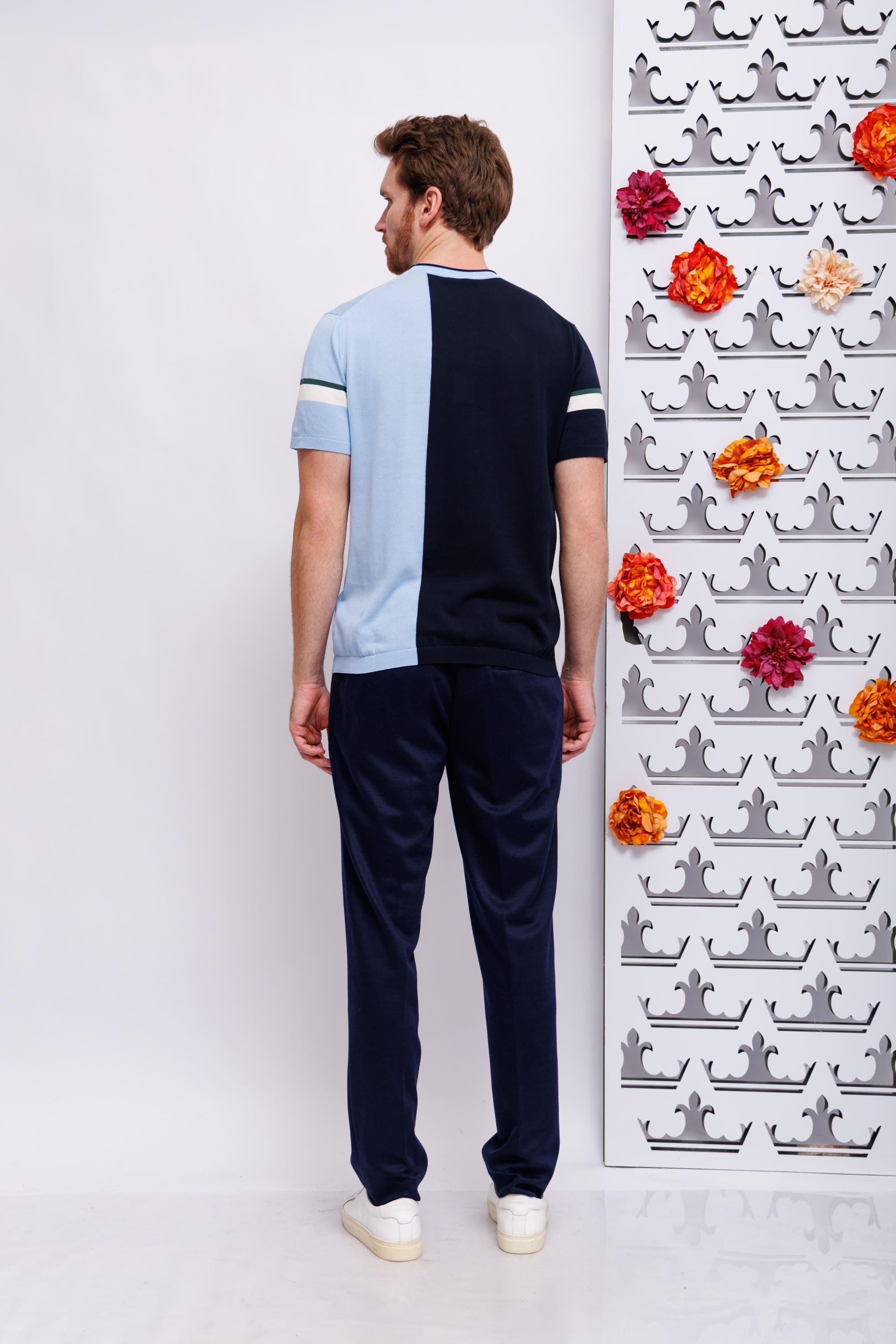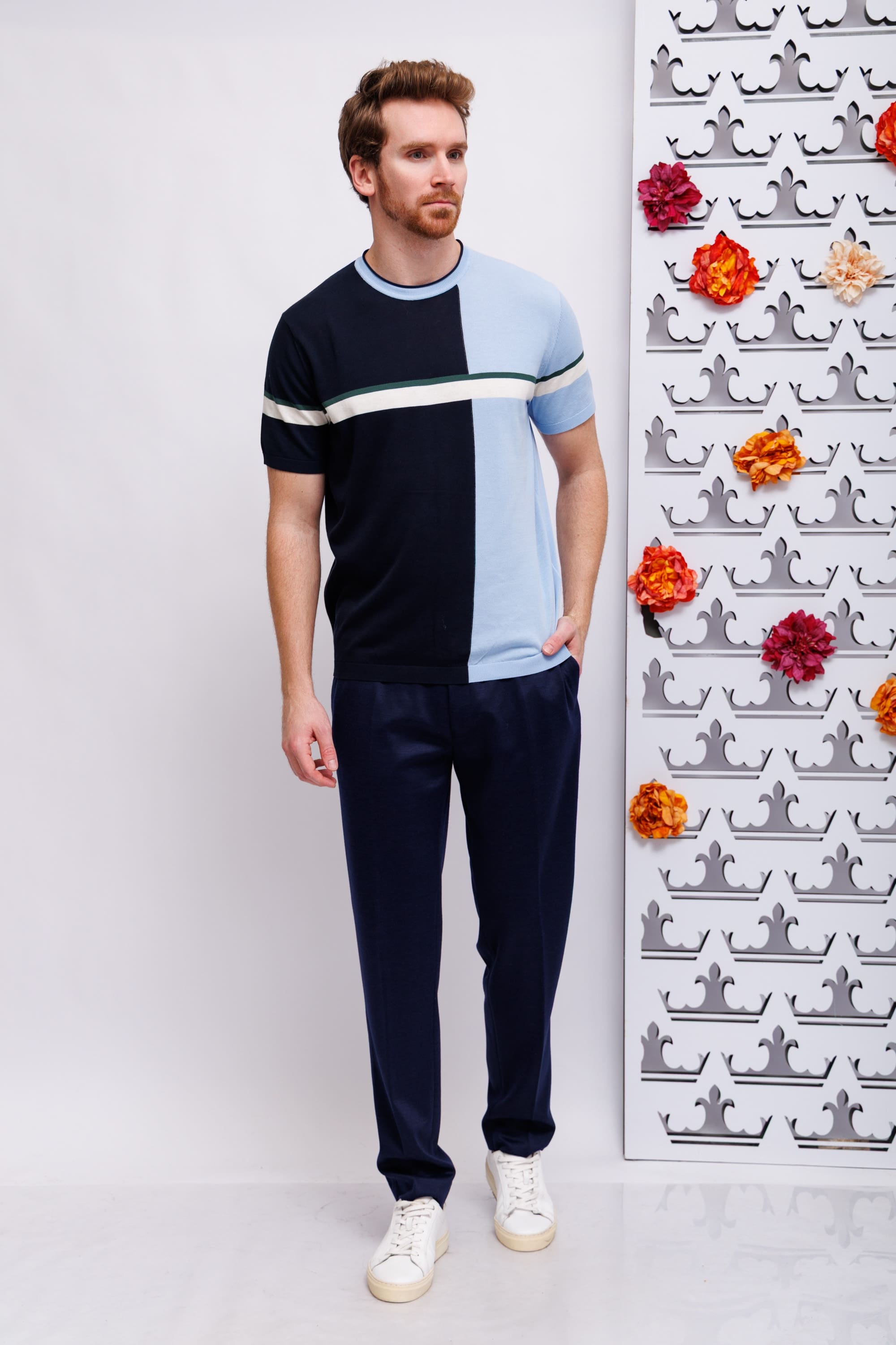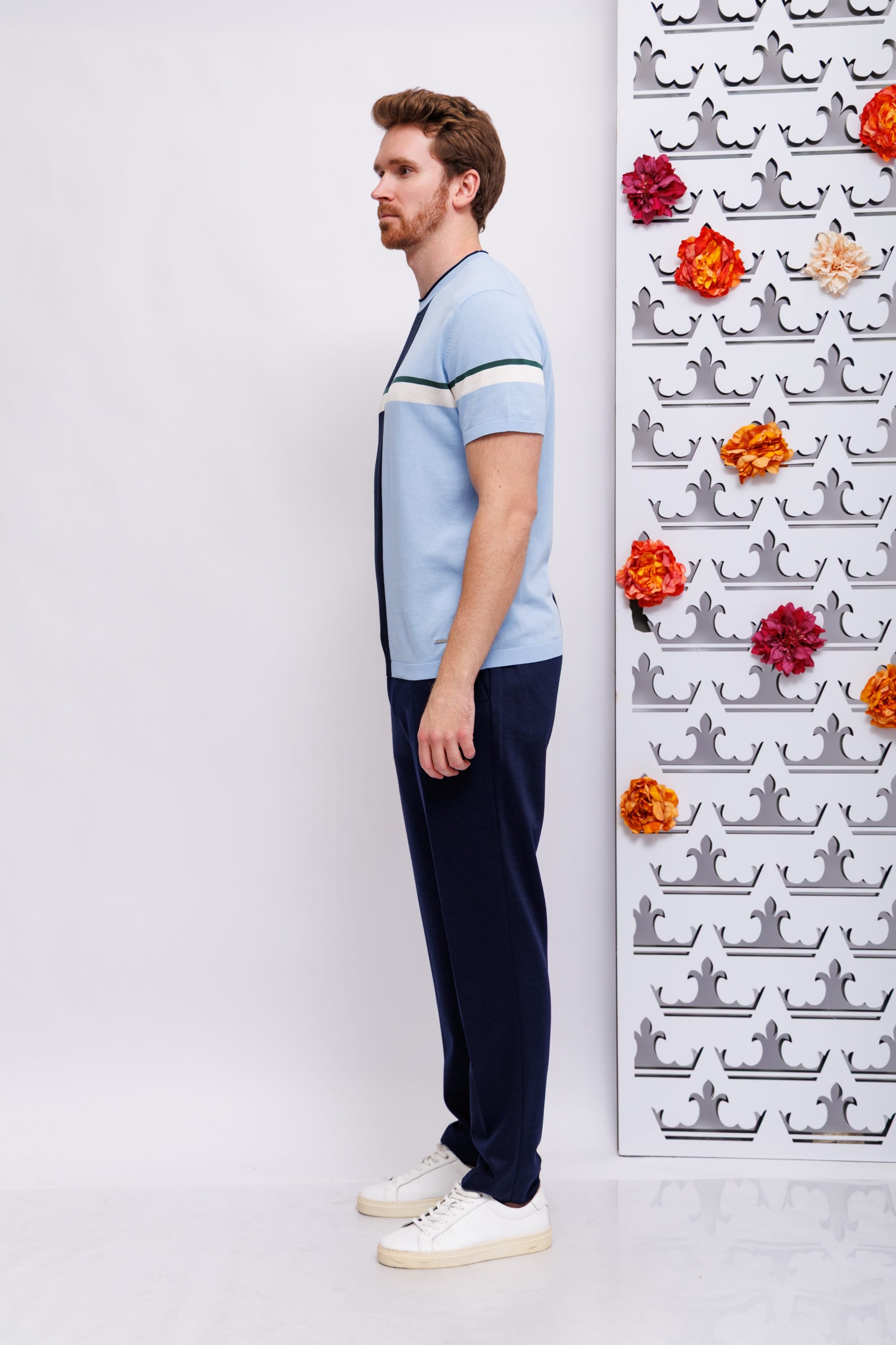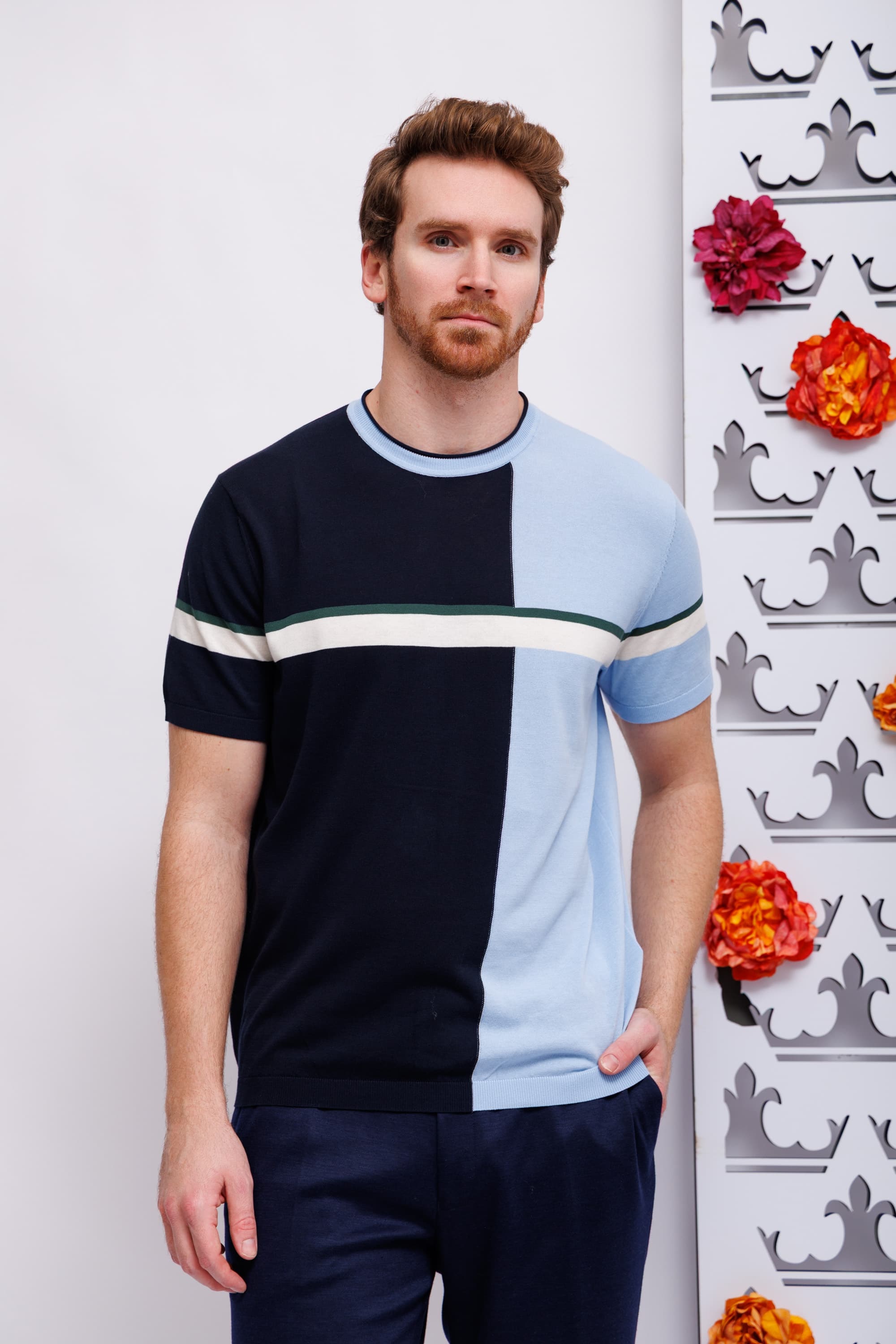 геометрический узорКруглый вырезКороткие рукаваПрямой кройМанжеты и низ изделия-эластичный ребристый трикотаж