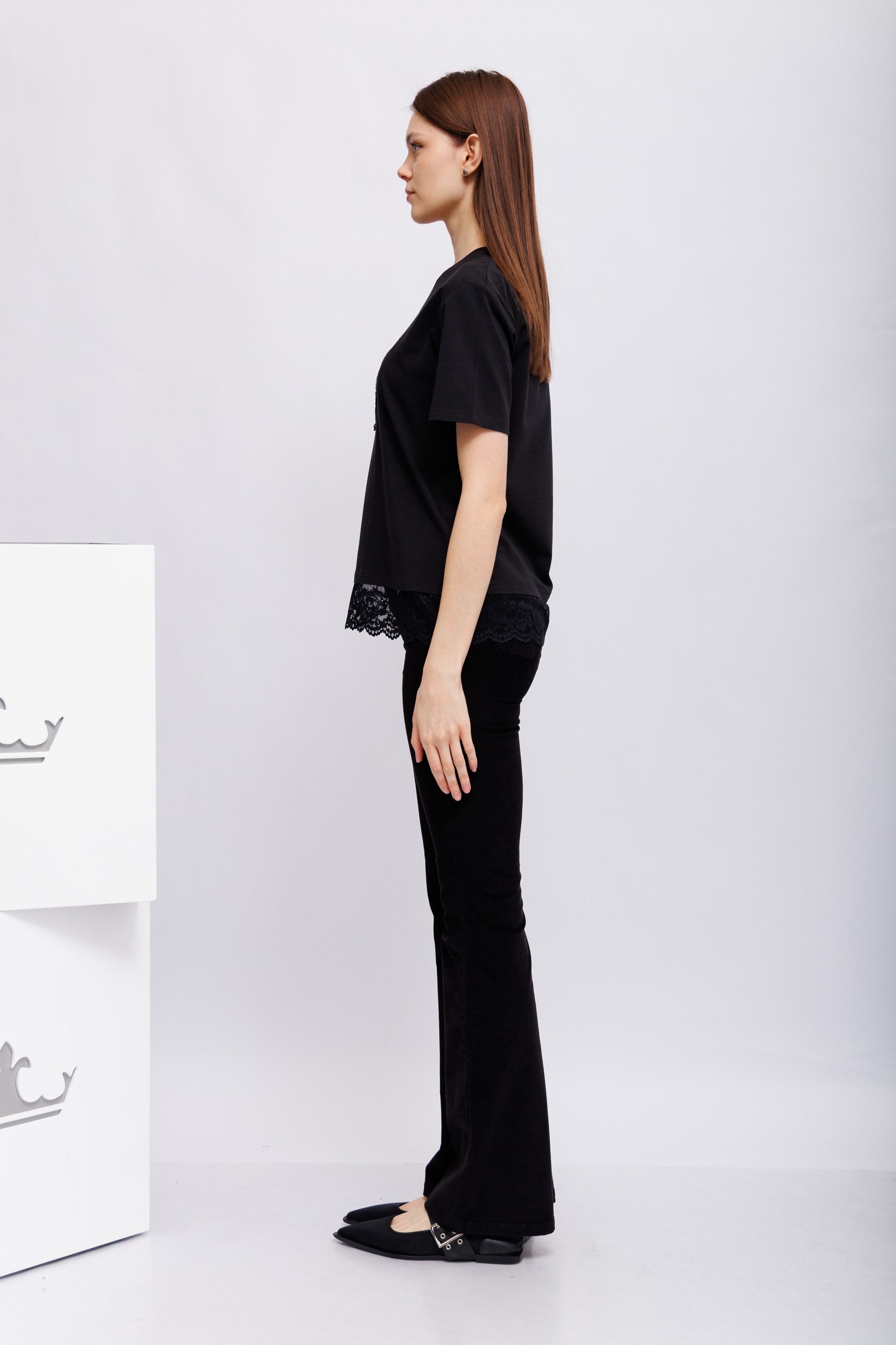 Джинсы черные из микро-вельвета