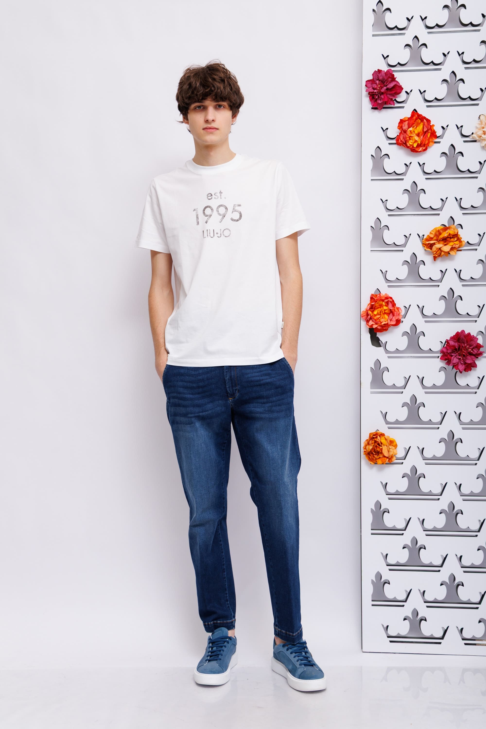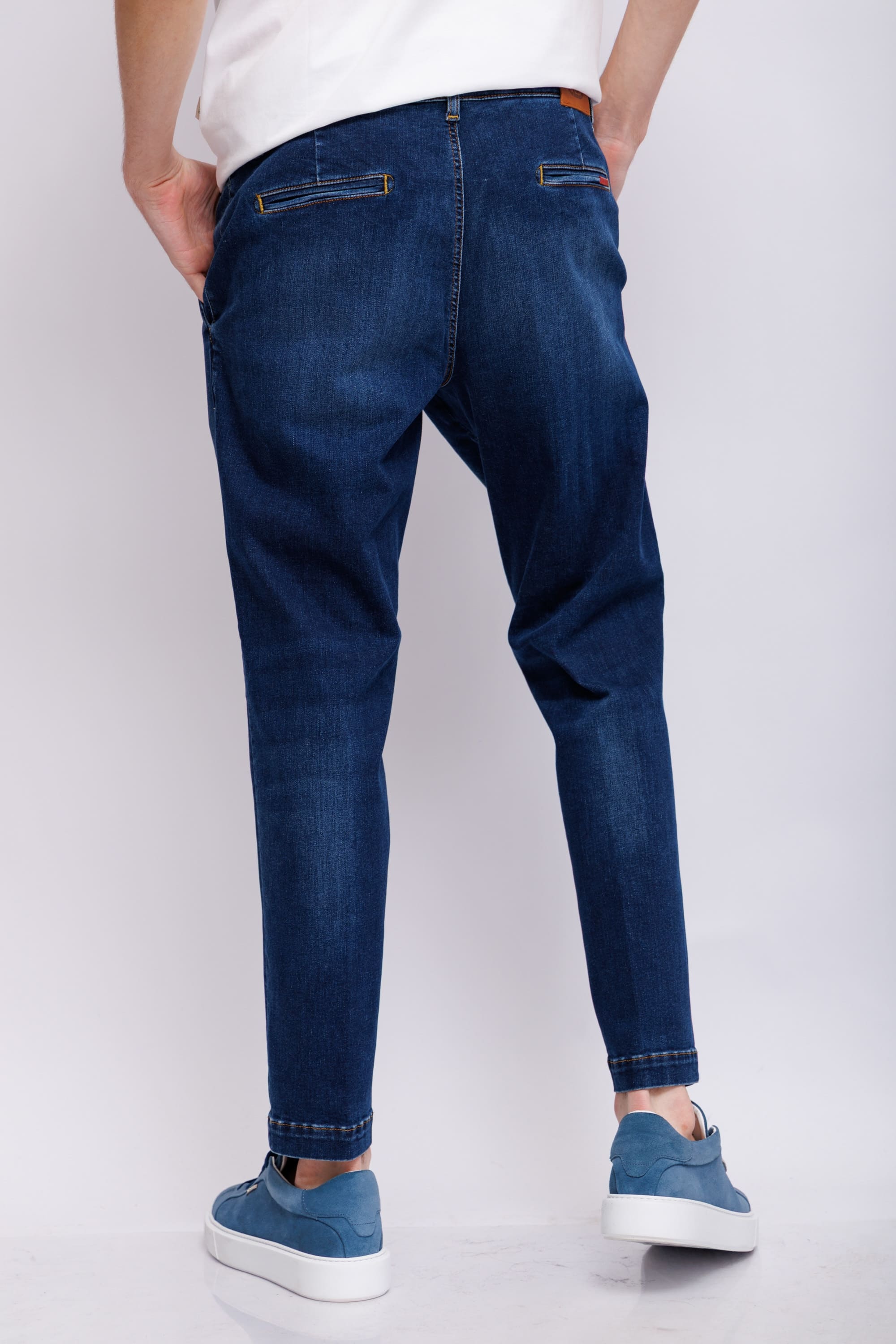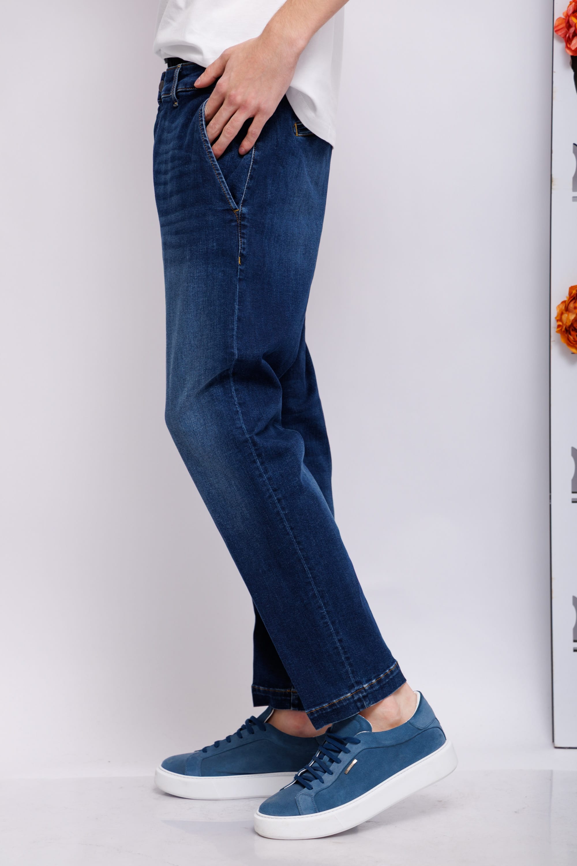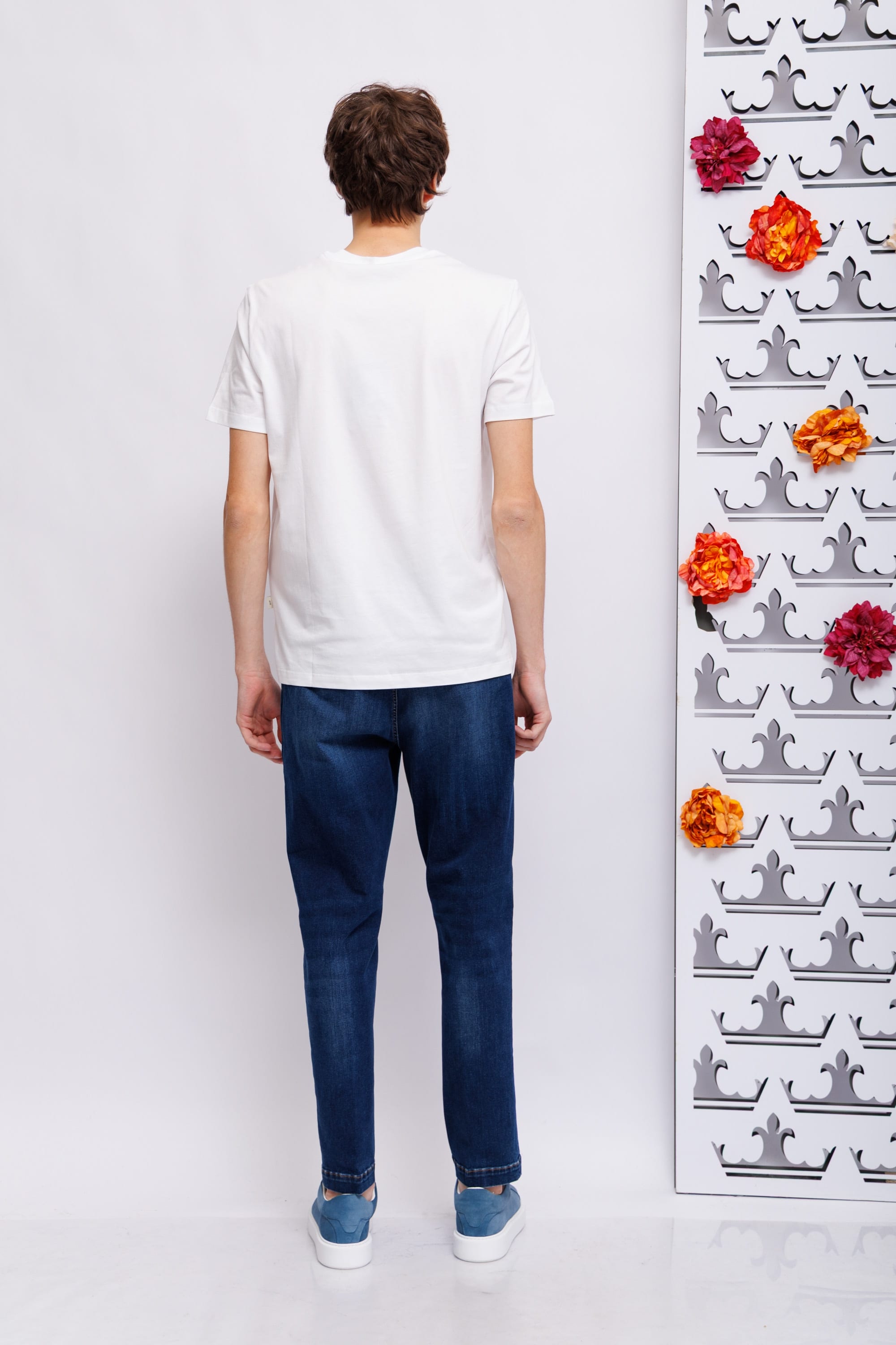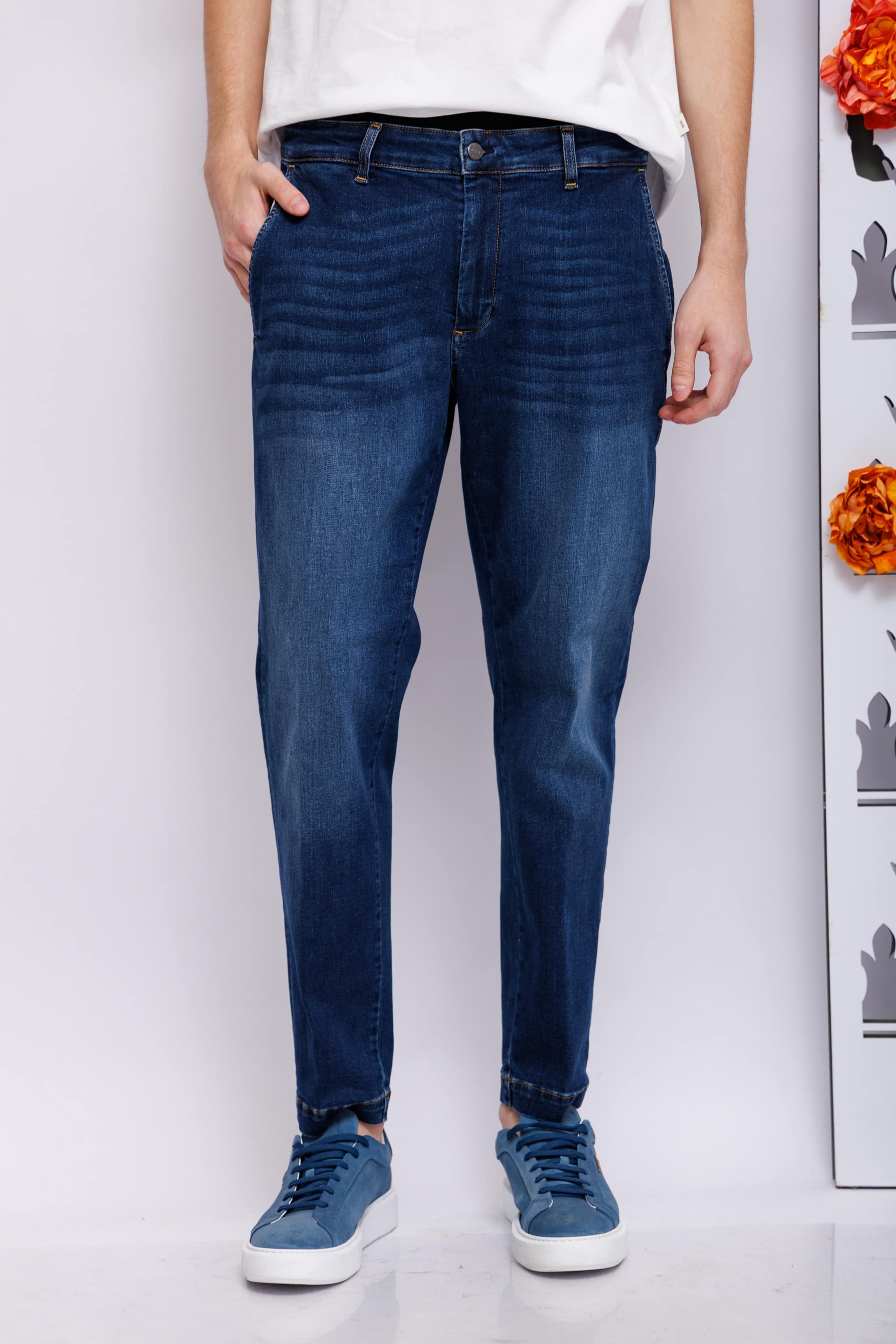 Джинсовые слаксыКрой расслабленный, слегка заужающийся к щиколоткамПояс со шлевкамиГульфик на скрытой молнии и пуговицеКосые боковые карманыСзади- карманы-рамки