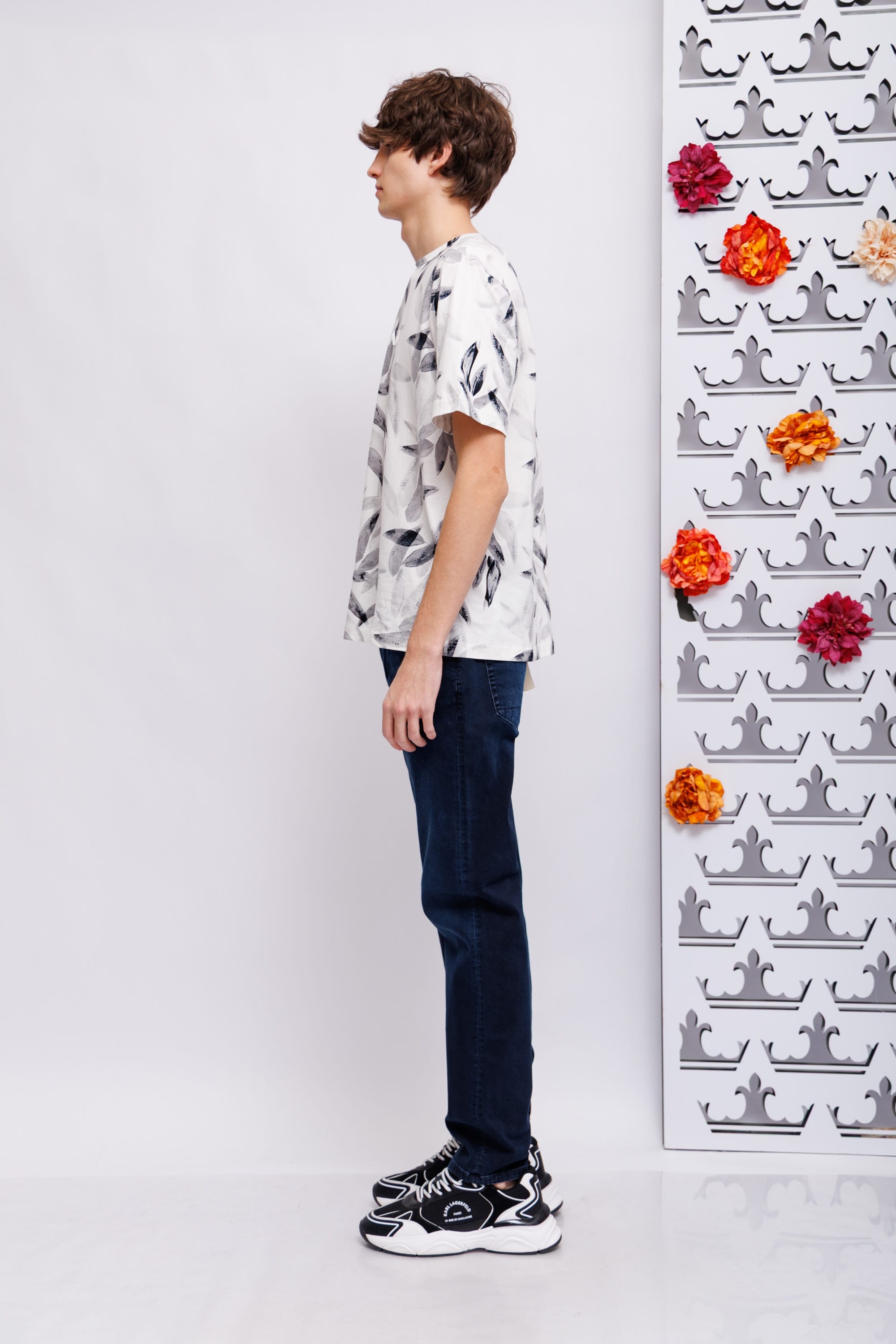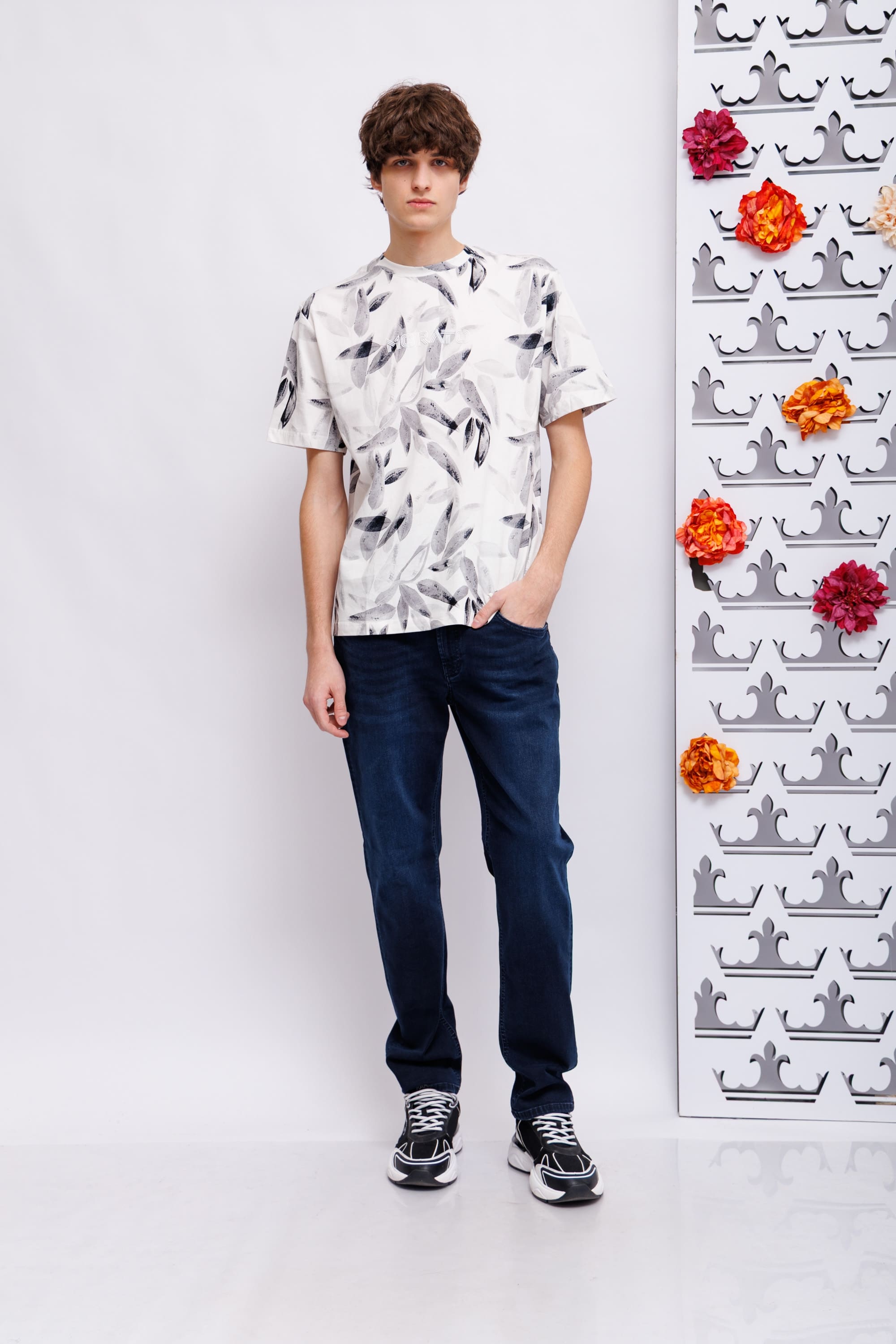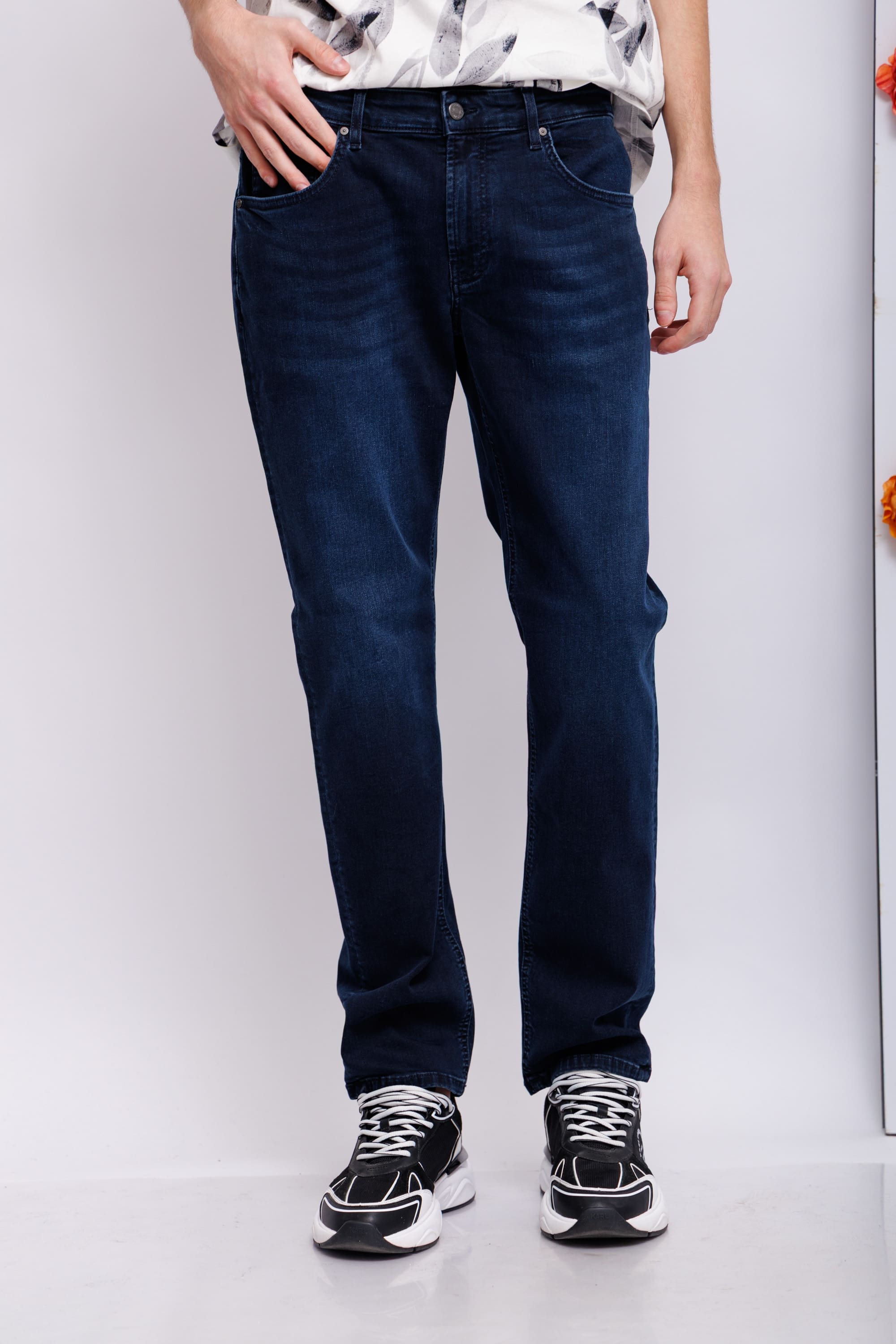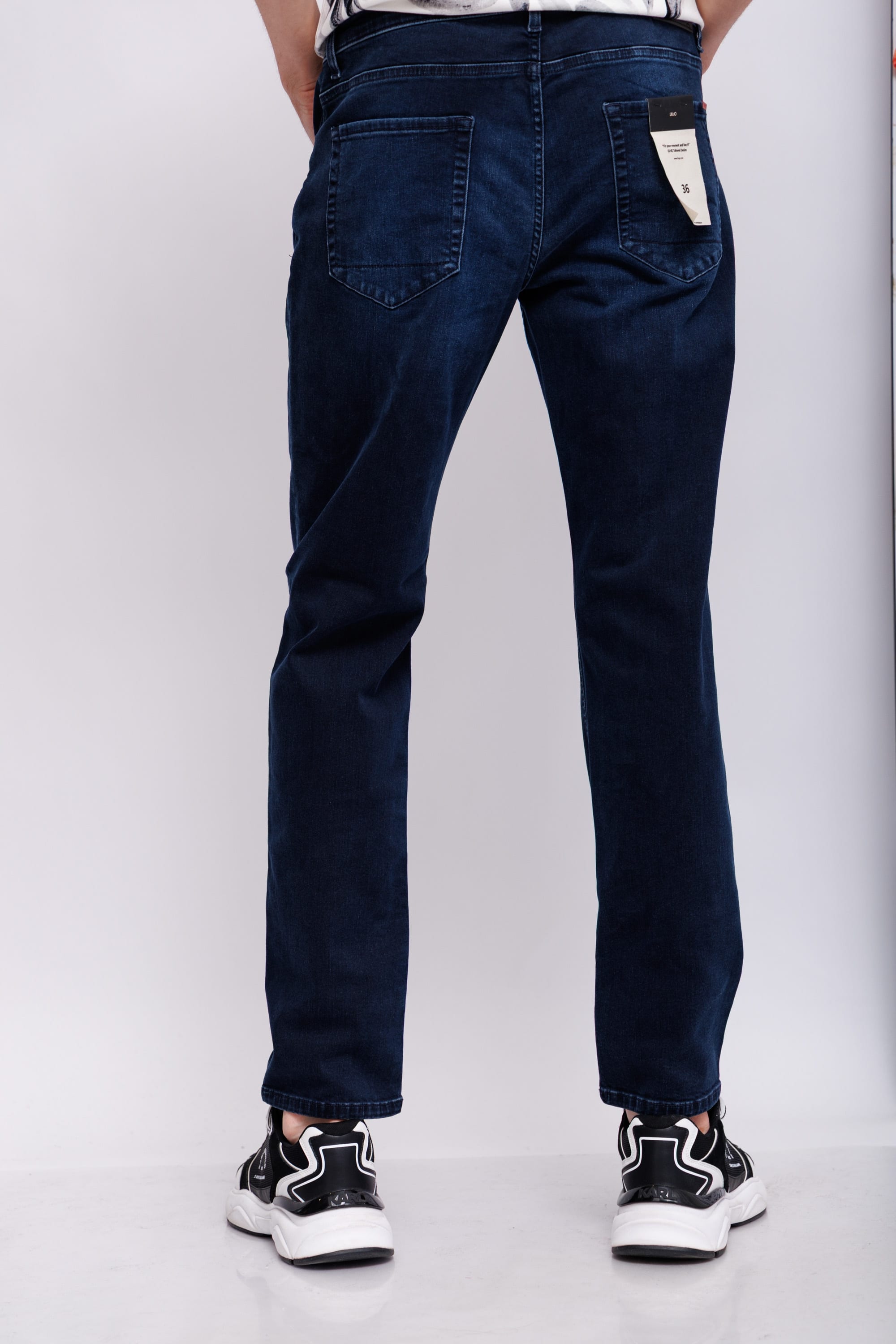 Джинсы синиеМодель "5 карманов"Гульфик на молнии и металлической пуговицеЗауженный кройОтстрочка в тон