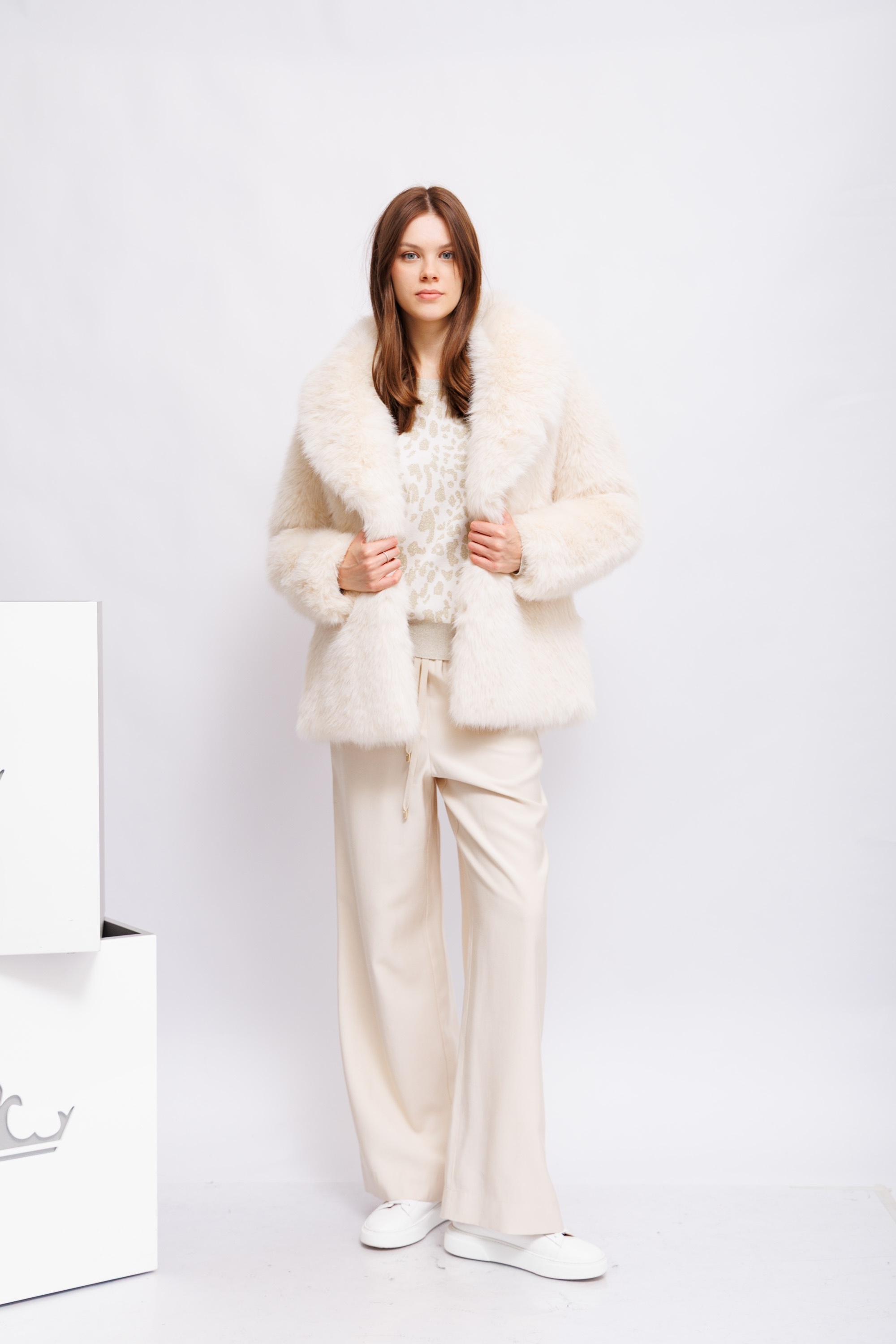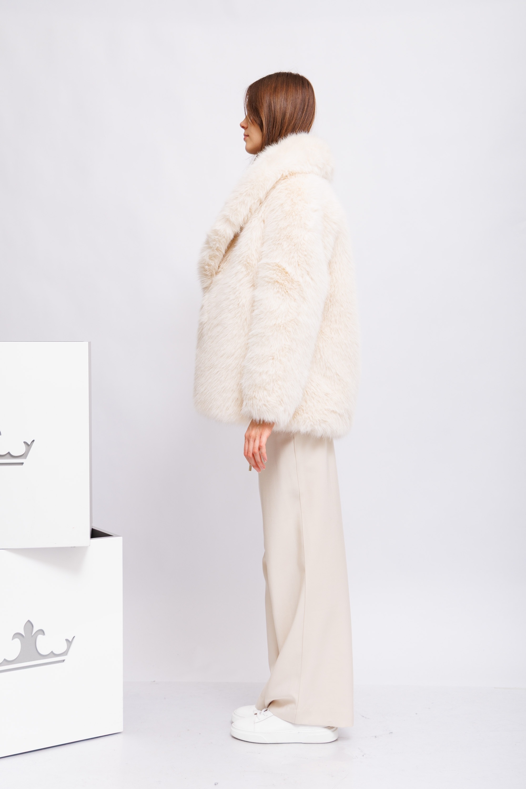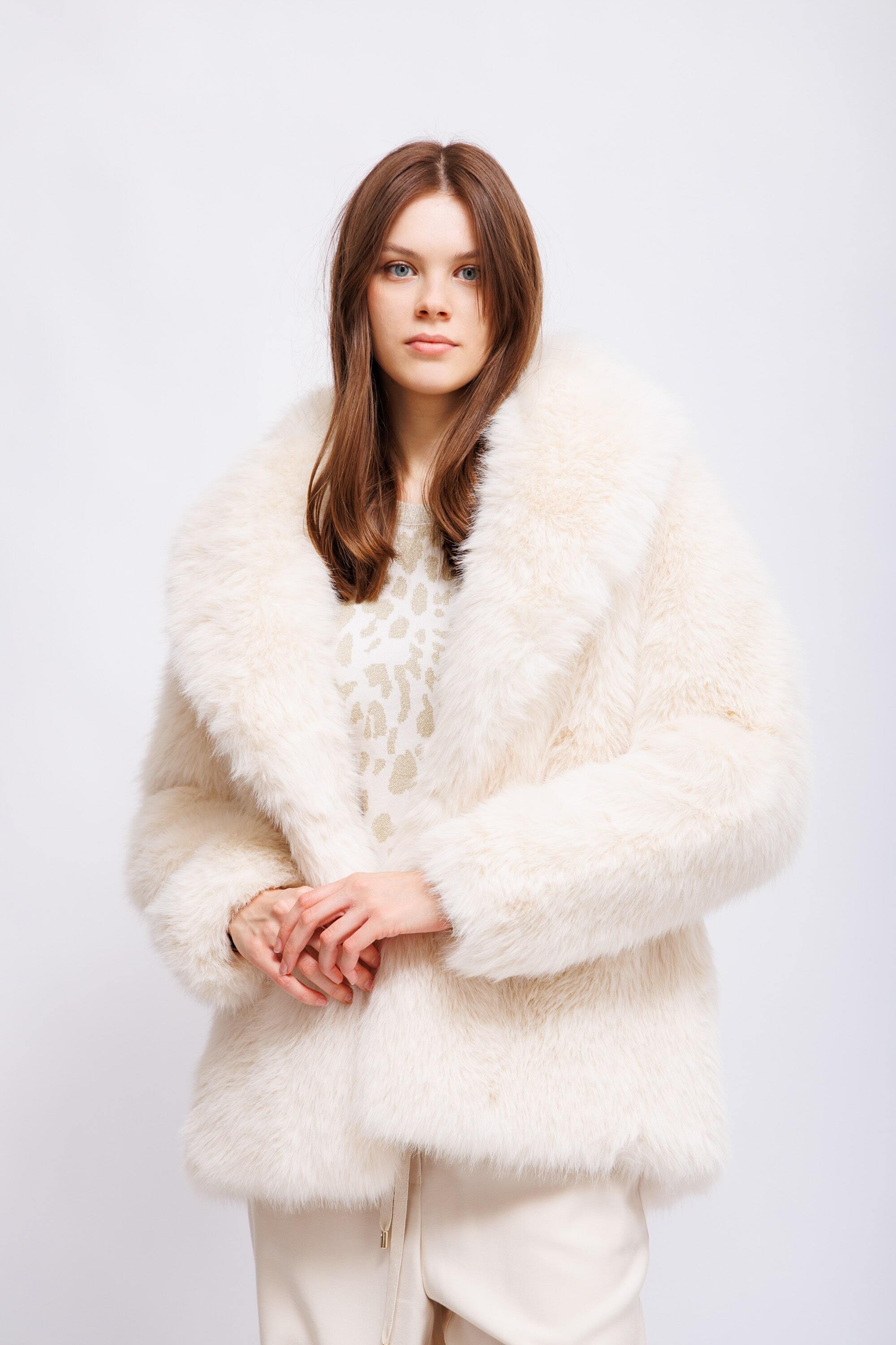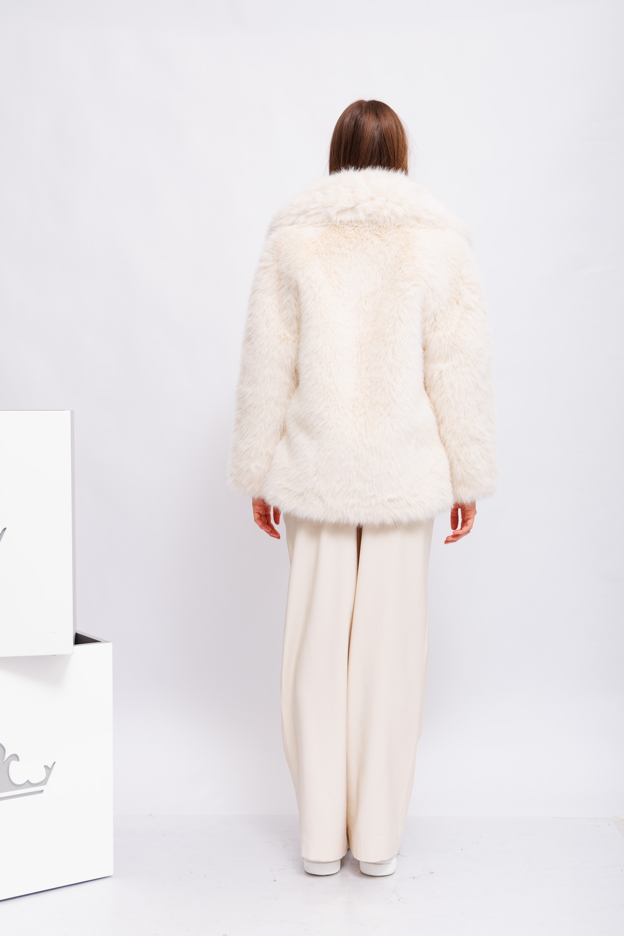 Искусственный мехВоротник с лацканамиКарманы по бокамЗастежка на маленький невидимый крючокНа подкладке