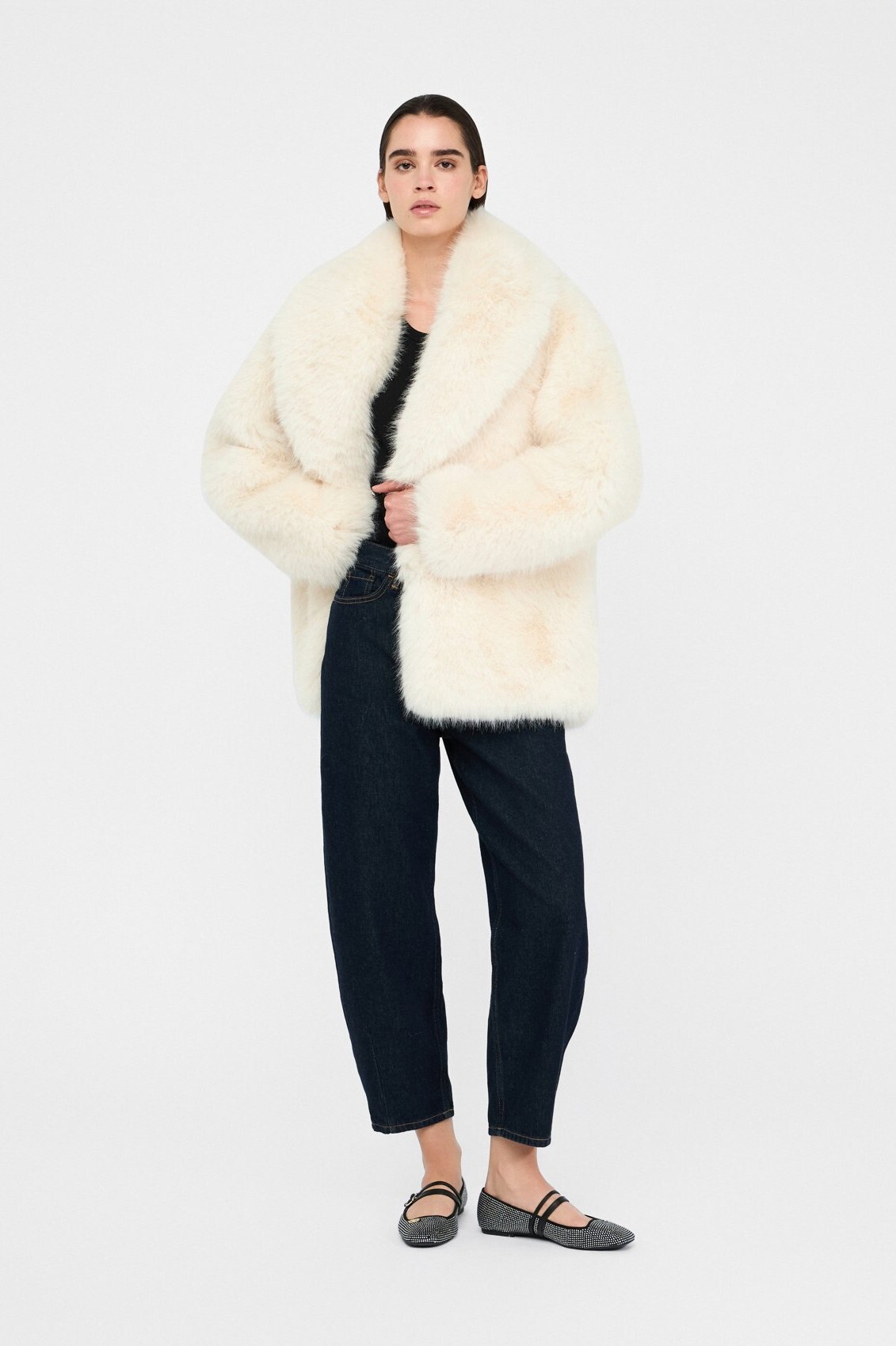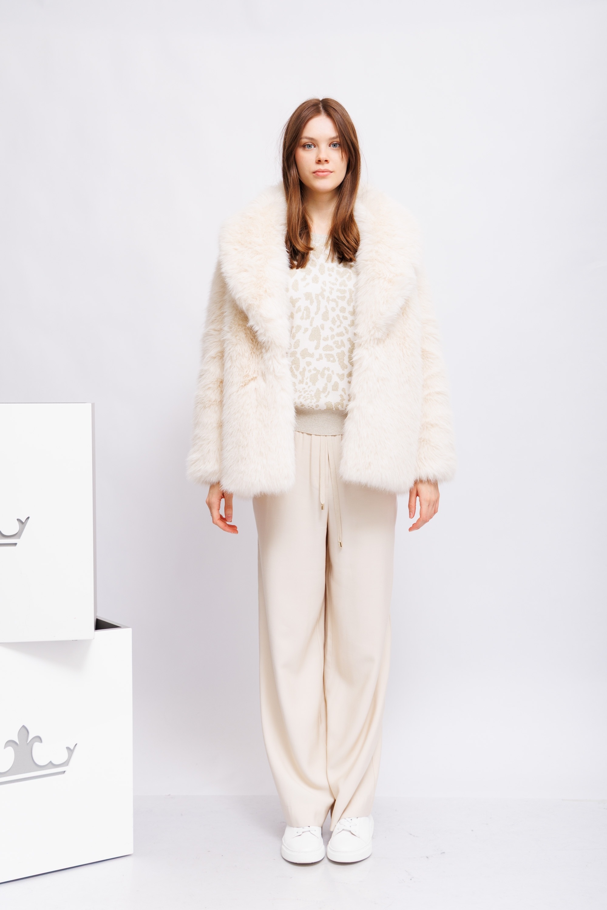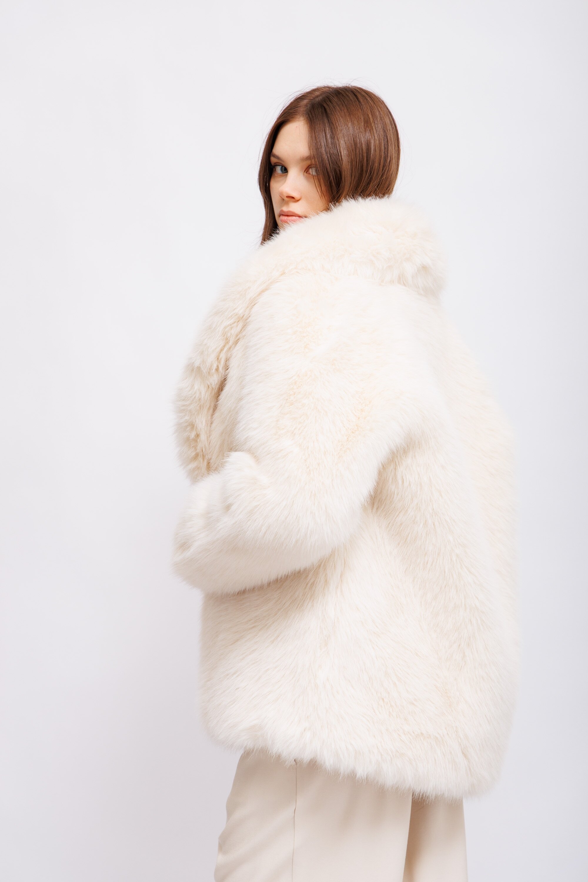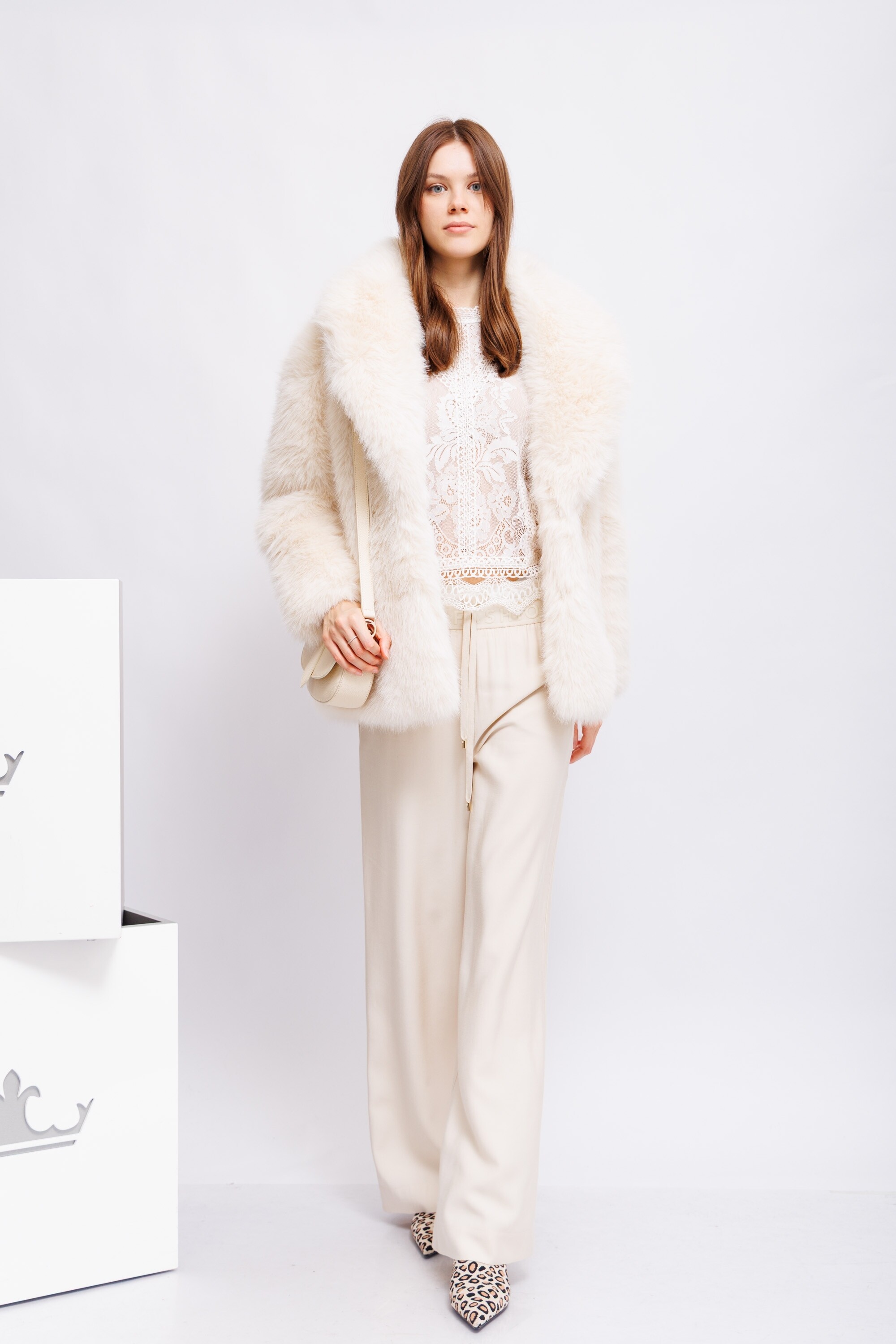 Искусственный мехВоротник с лацканамиКарманы по бокамЗастежка на маленький невидимый крючокНа подкладке