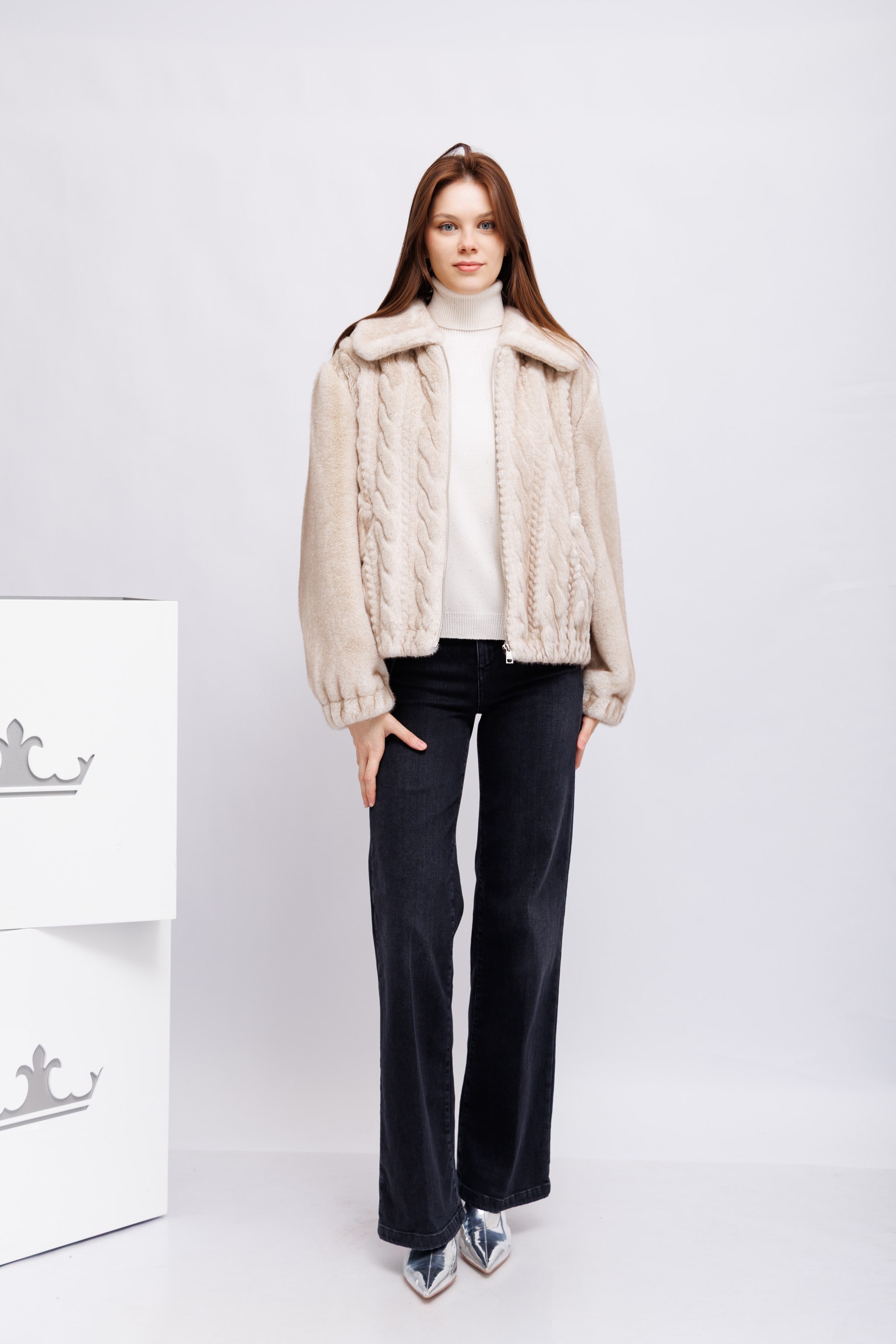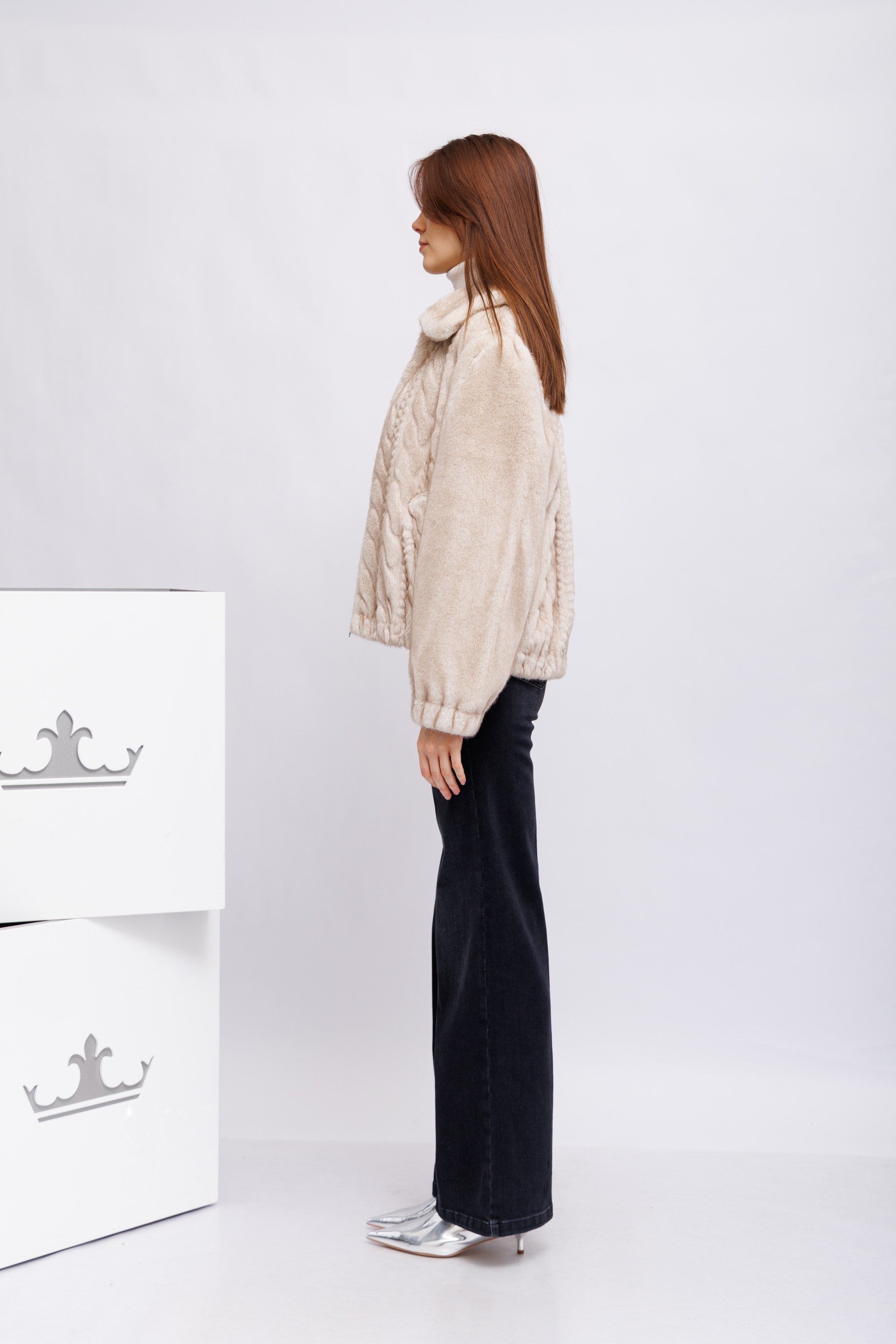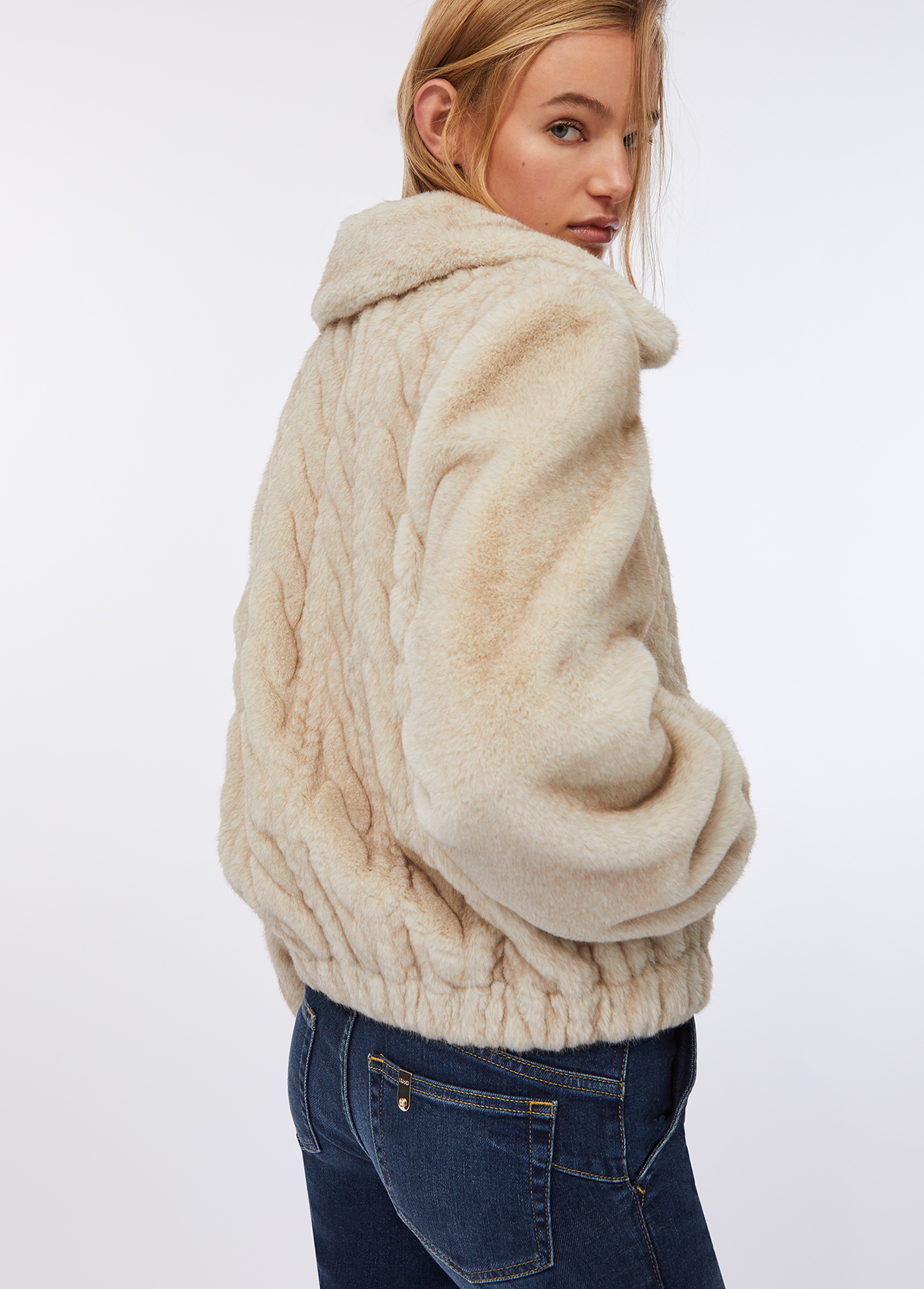 Мягкая куртка-бомбер из плюшевой тканиВязаный узор спередиУвеличенный воротникУдобные карманыЗастежка на молниюЭластичные манжеты и нижний край