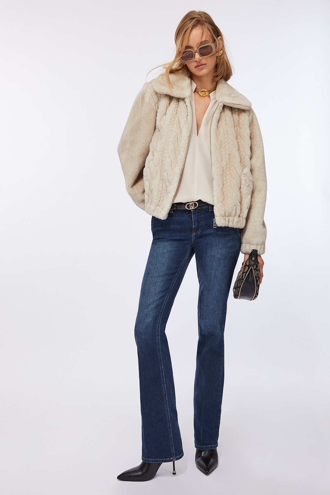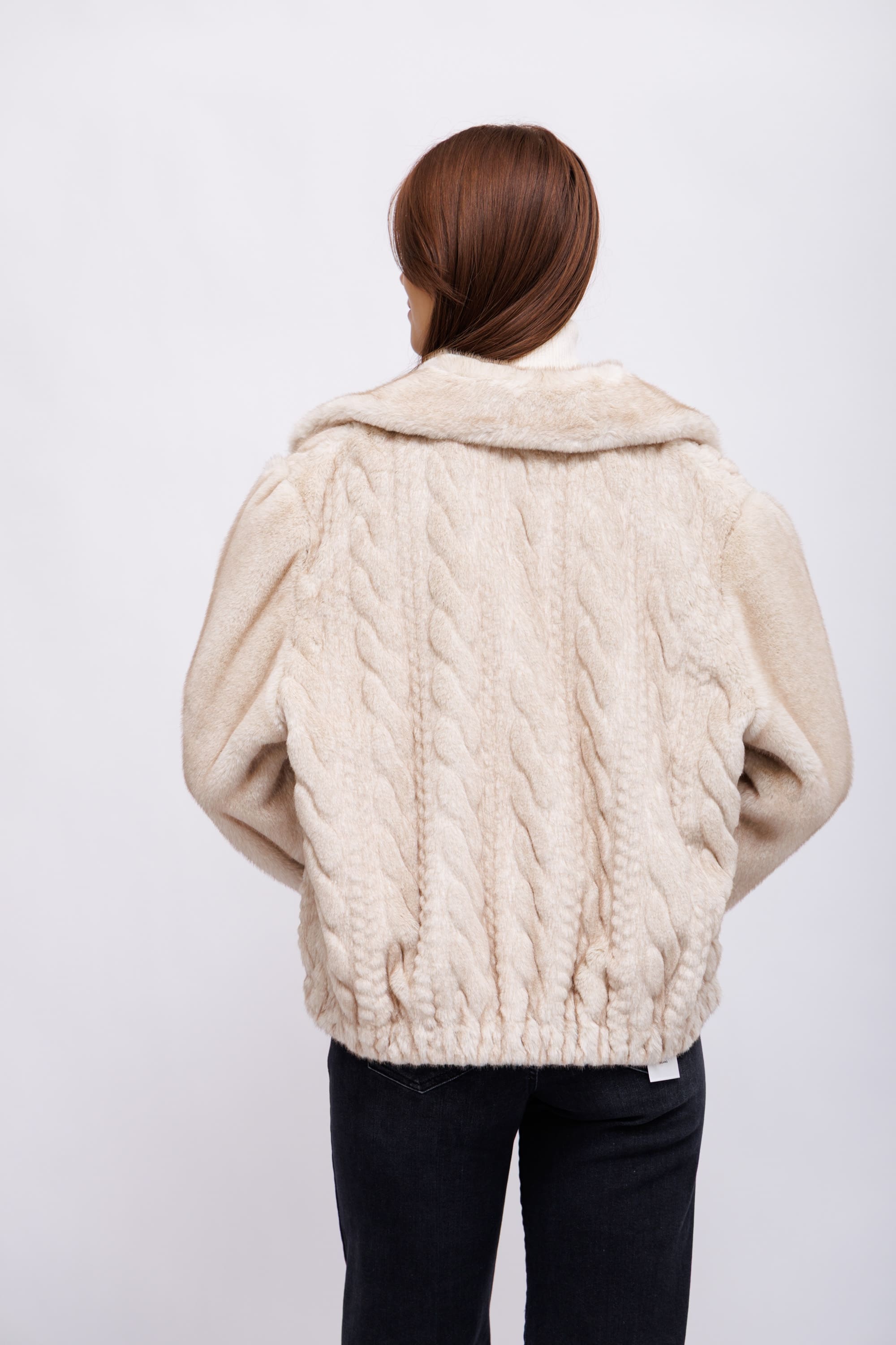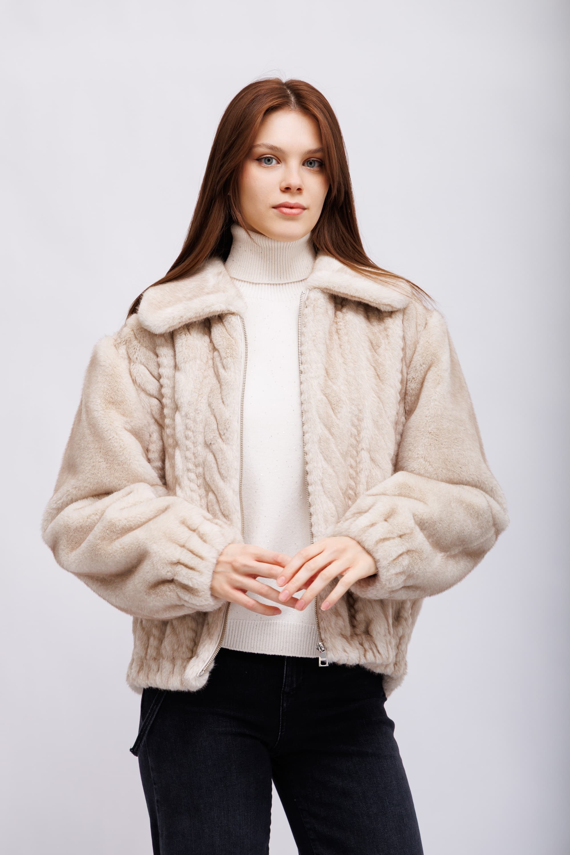 Мягкая куртка-бомбер из плюшевой тканиВязаный узор спередиУвеличенный воротникУдобные карманыЗастежка на молниюЭластичные манжеты и нижний край
