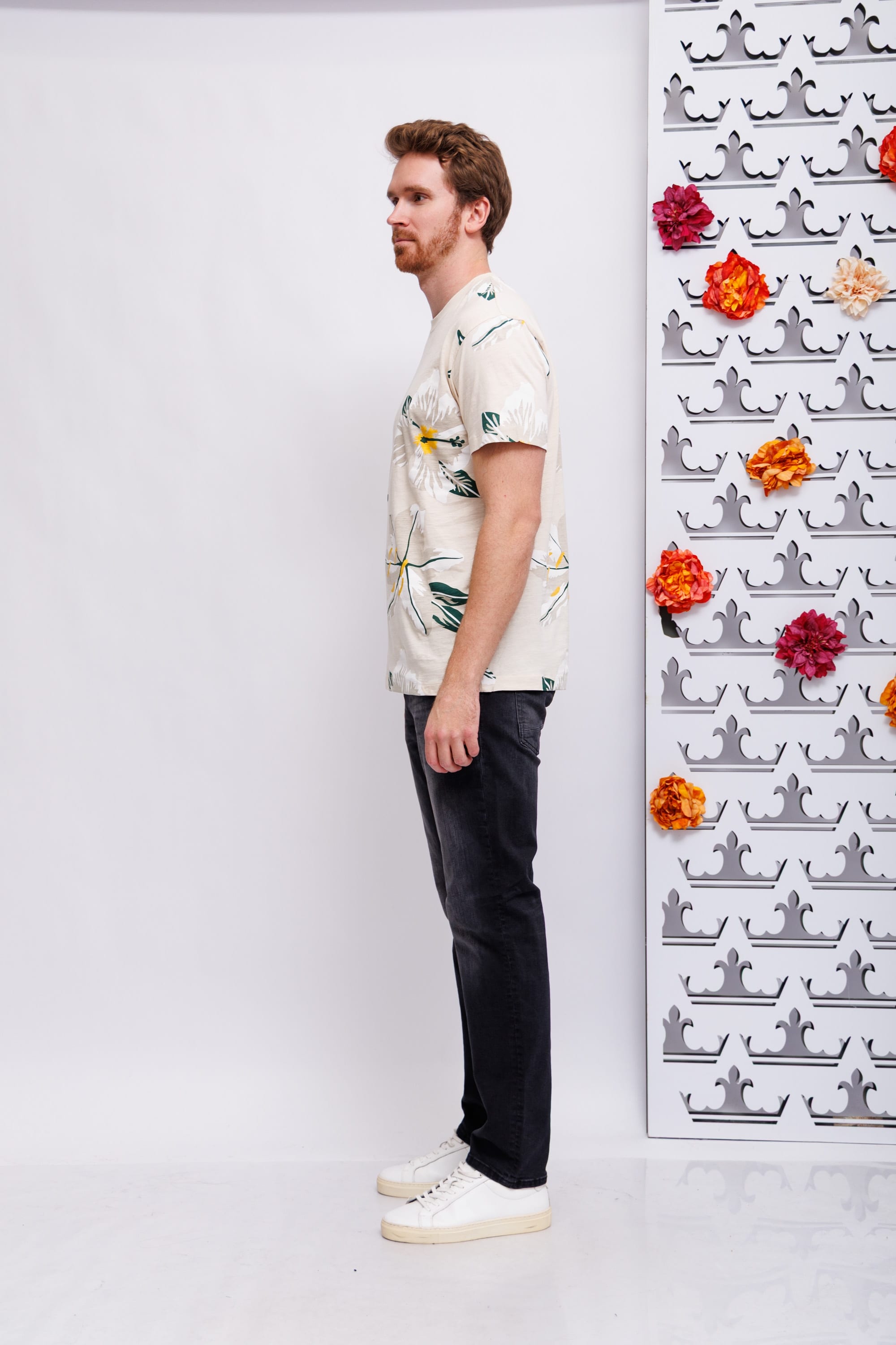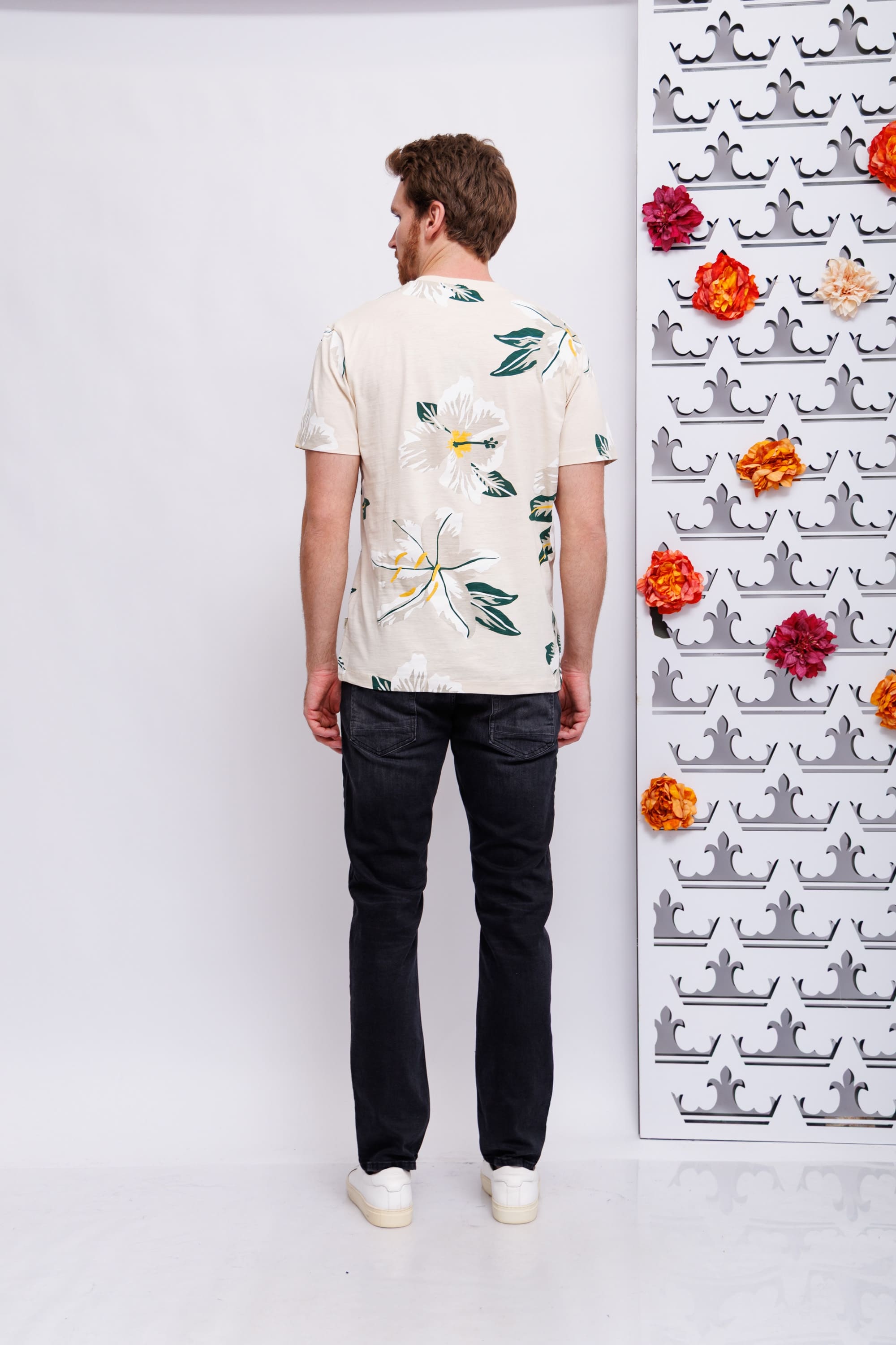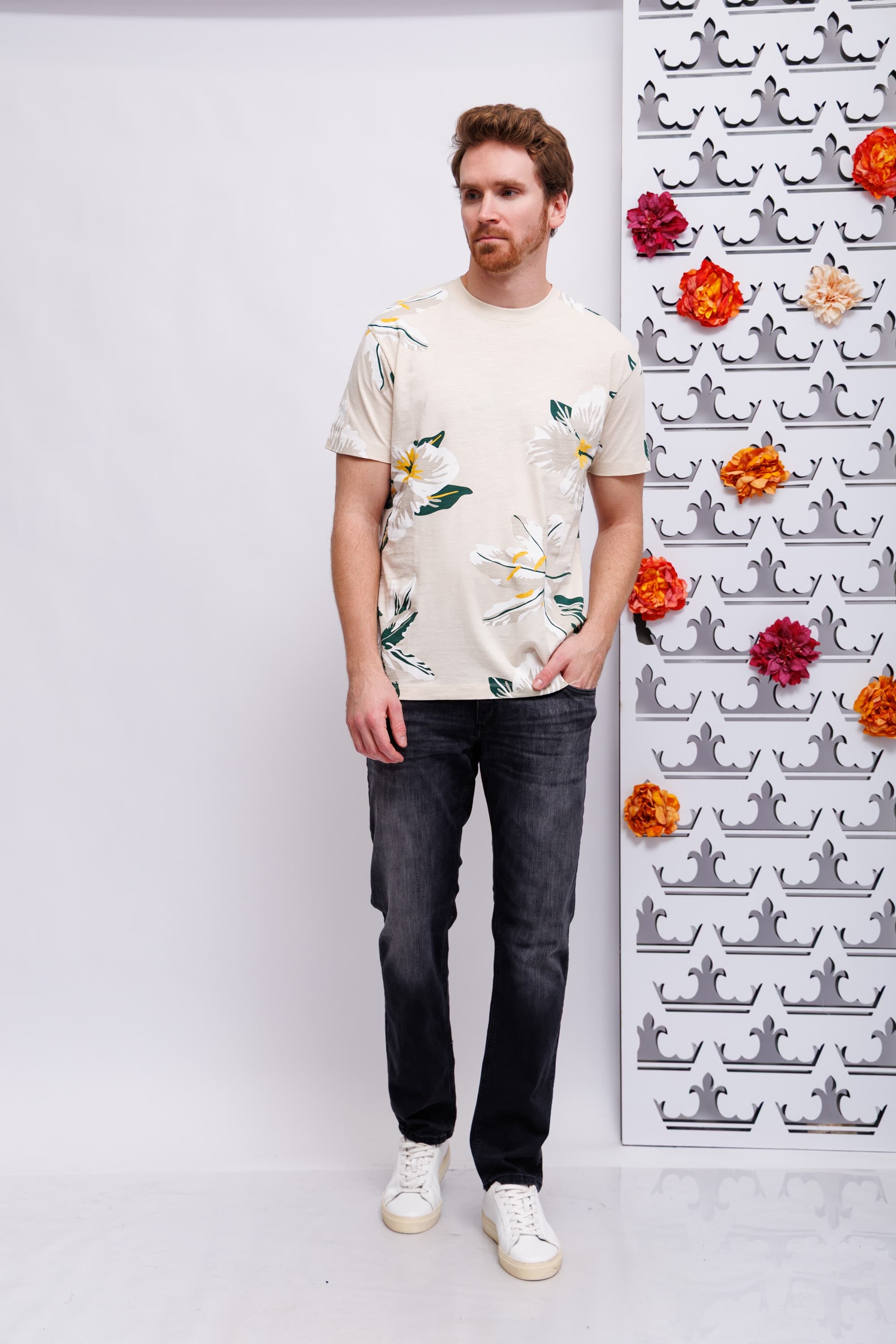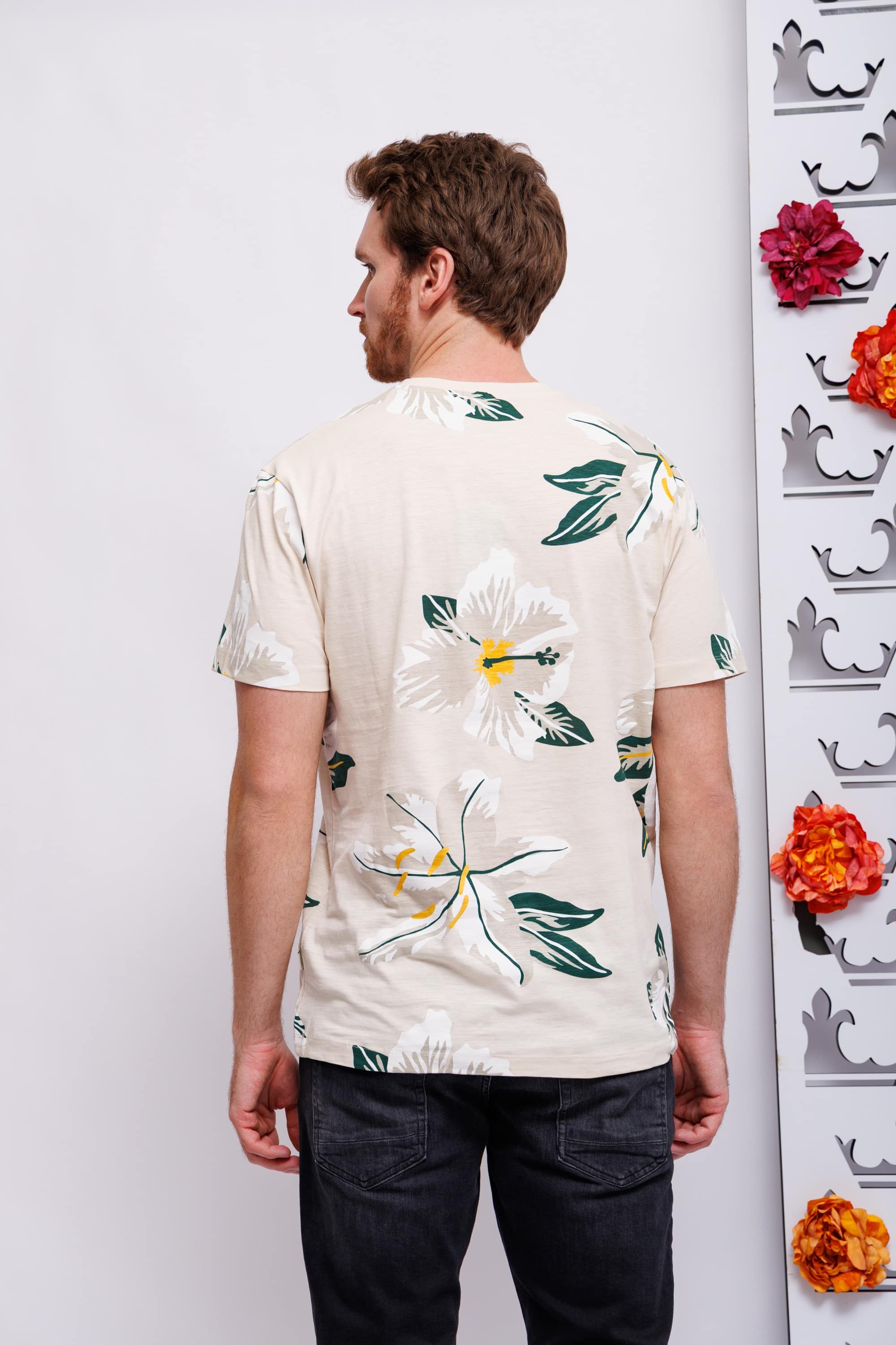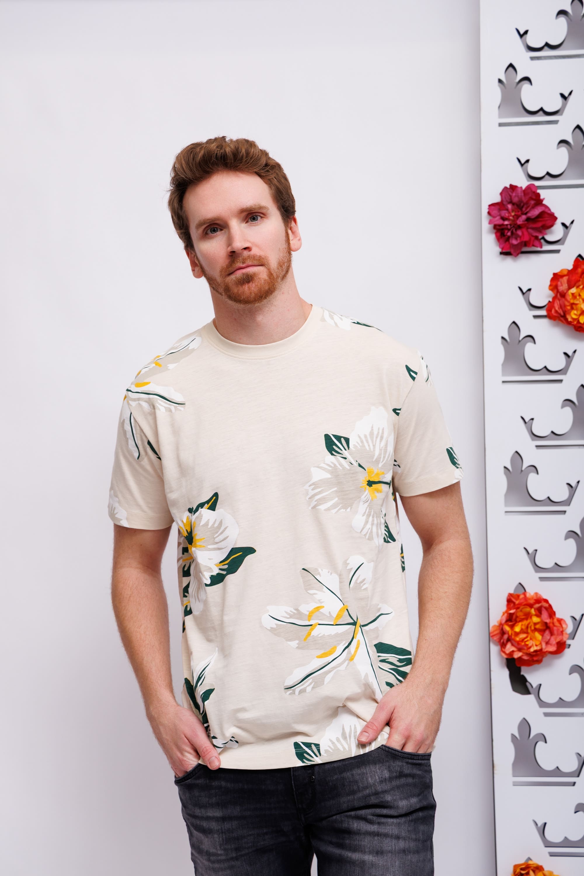 Футболка бежевая во флоральный узор
