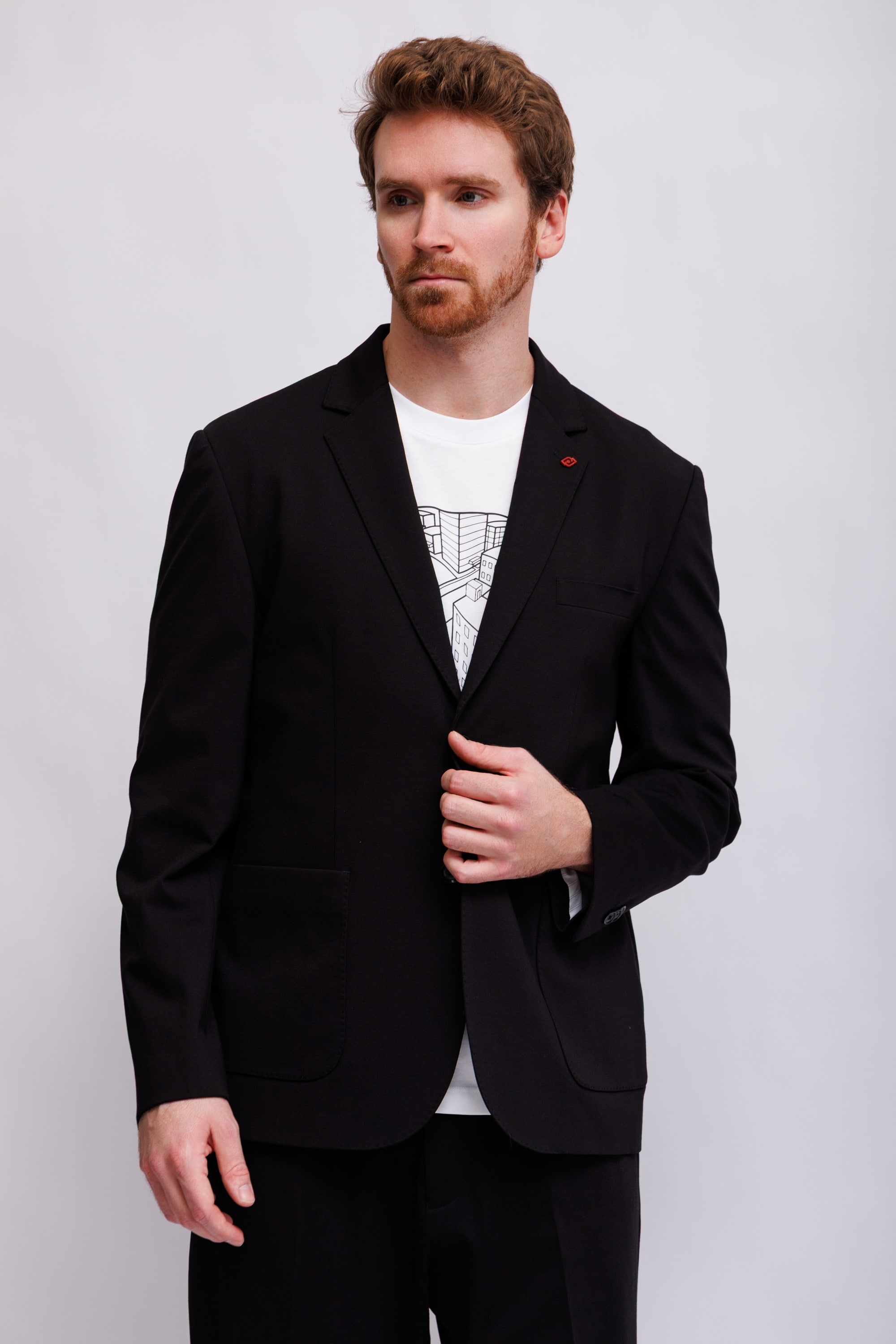 Пиджак из инновационного джерси, держащего форму и обладающего функцией памяти