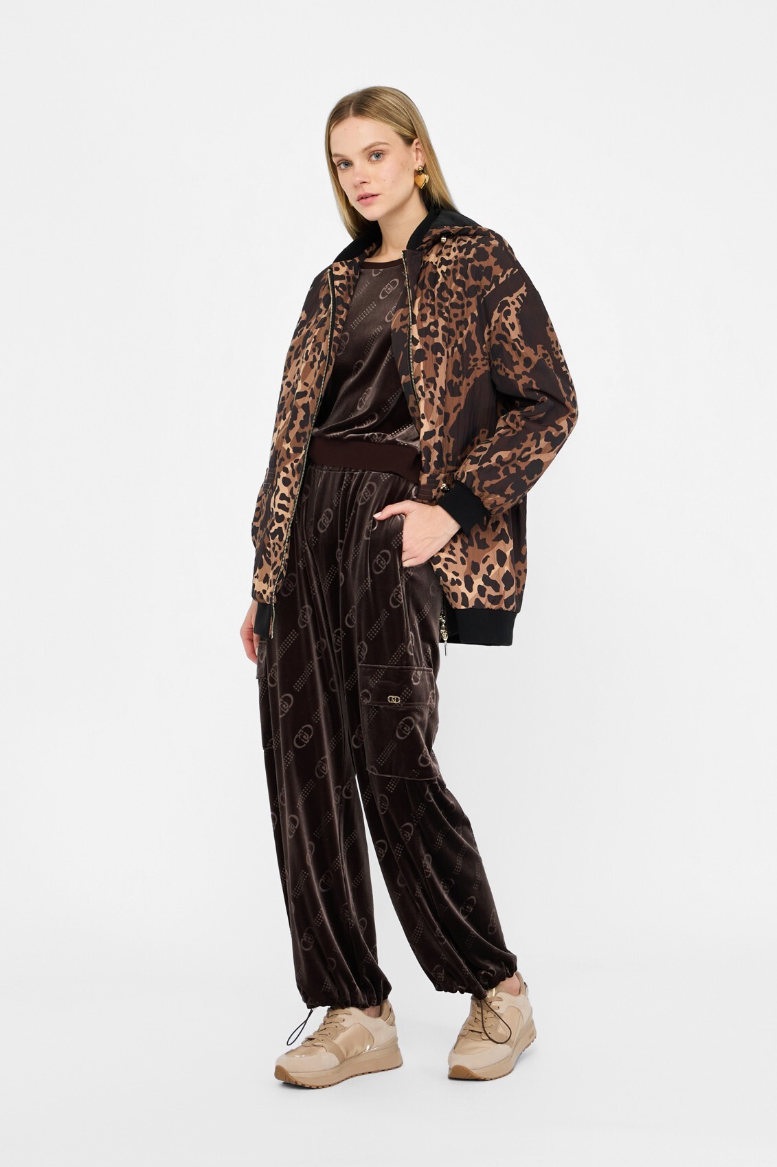 Куртка из нейлонаАнималистичный принтКапюшон на шнурке съемныйКарманы на пуговицахТрикотажные манжеты и низМолния с логотипомЗастежка-молния с двумя бегунками