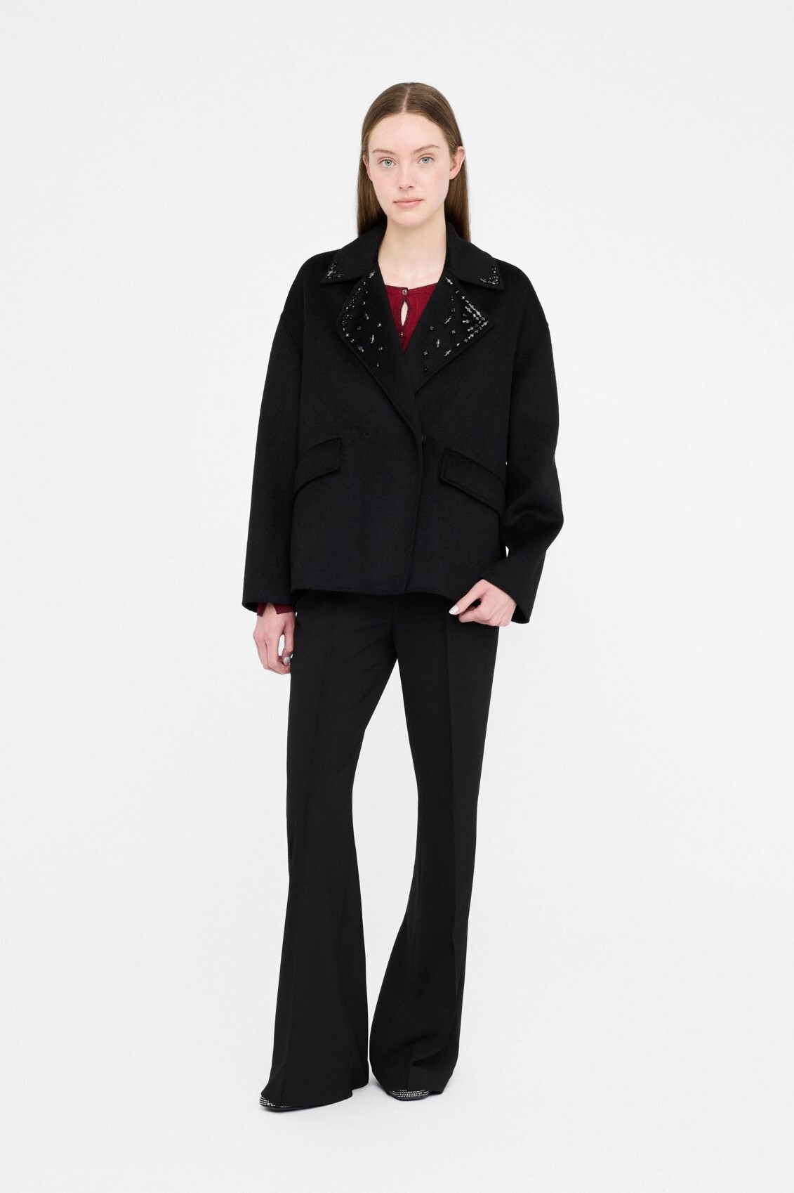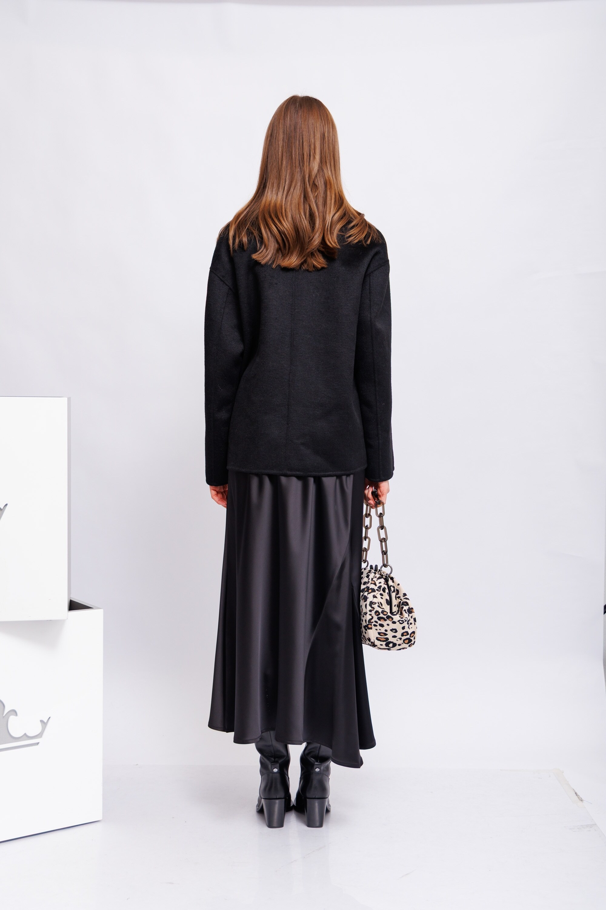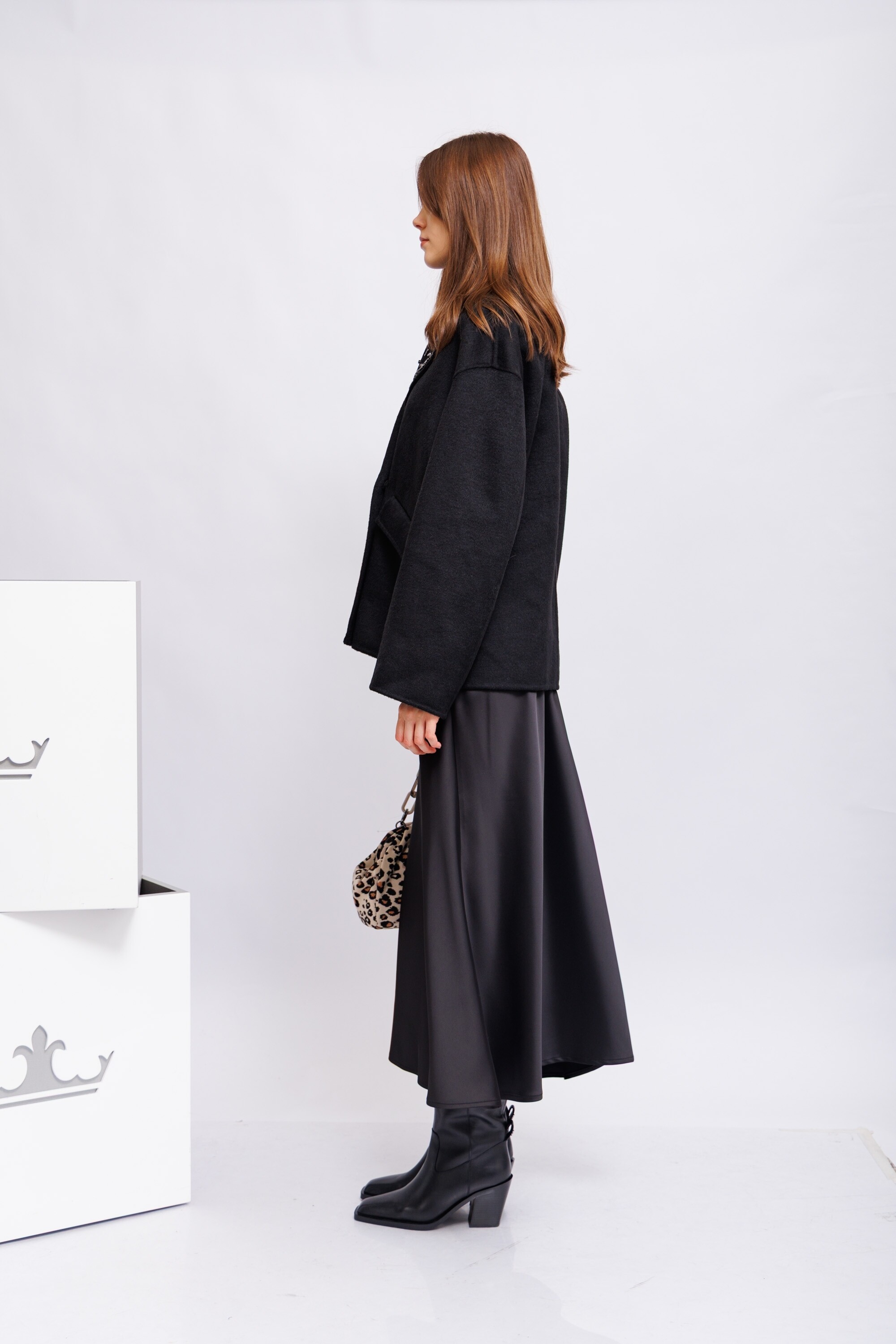 Изделие скроено по технологии double face, когда используется не один слой ткани, а два склеенных и простроченных, таким образом изделие становится более теплым, лучше держит форму и имеет привлекательную отделку изнанки