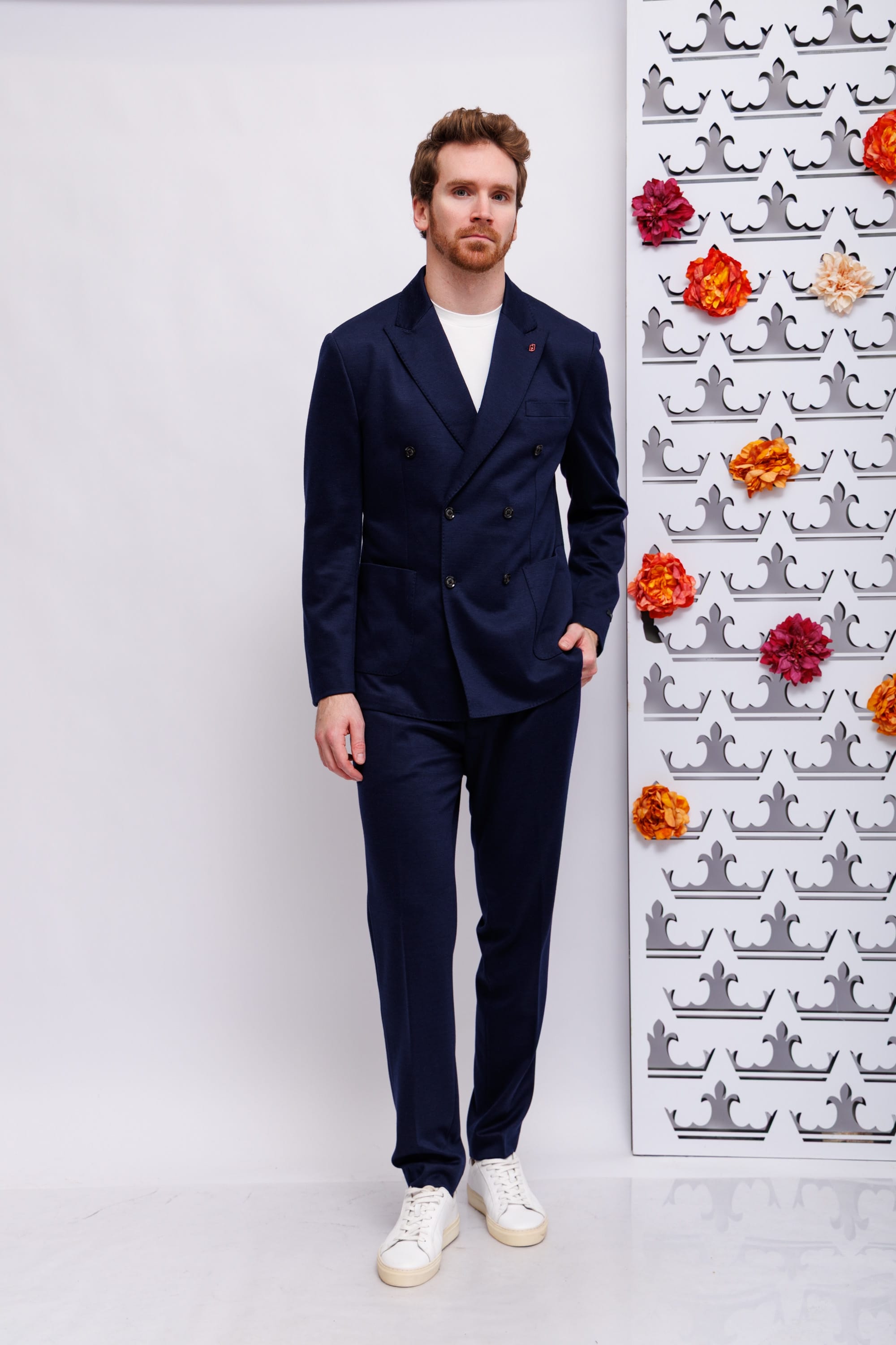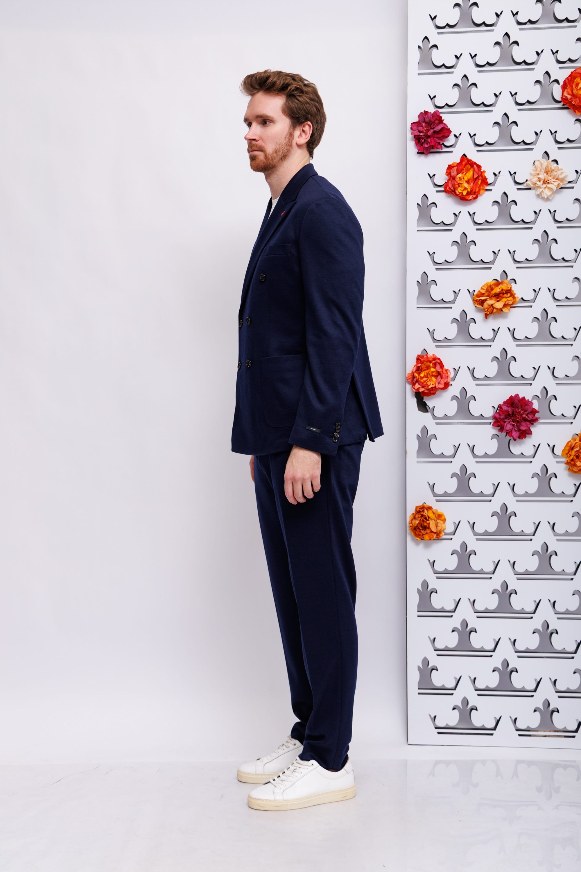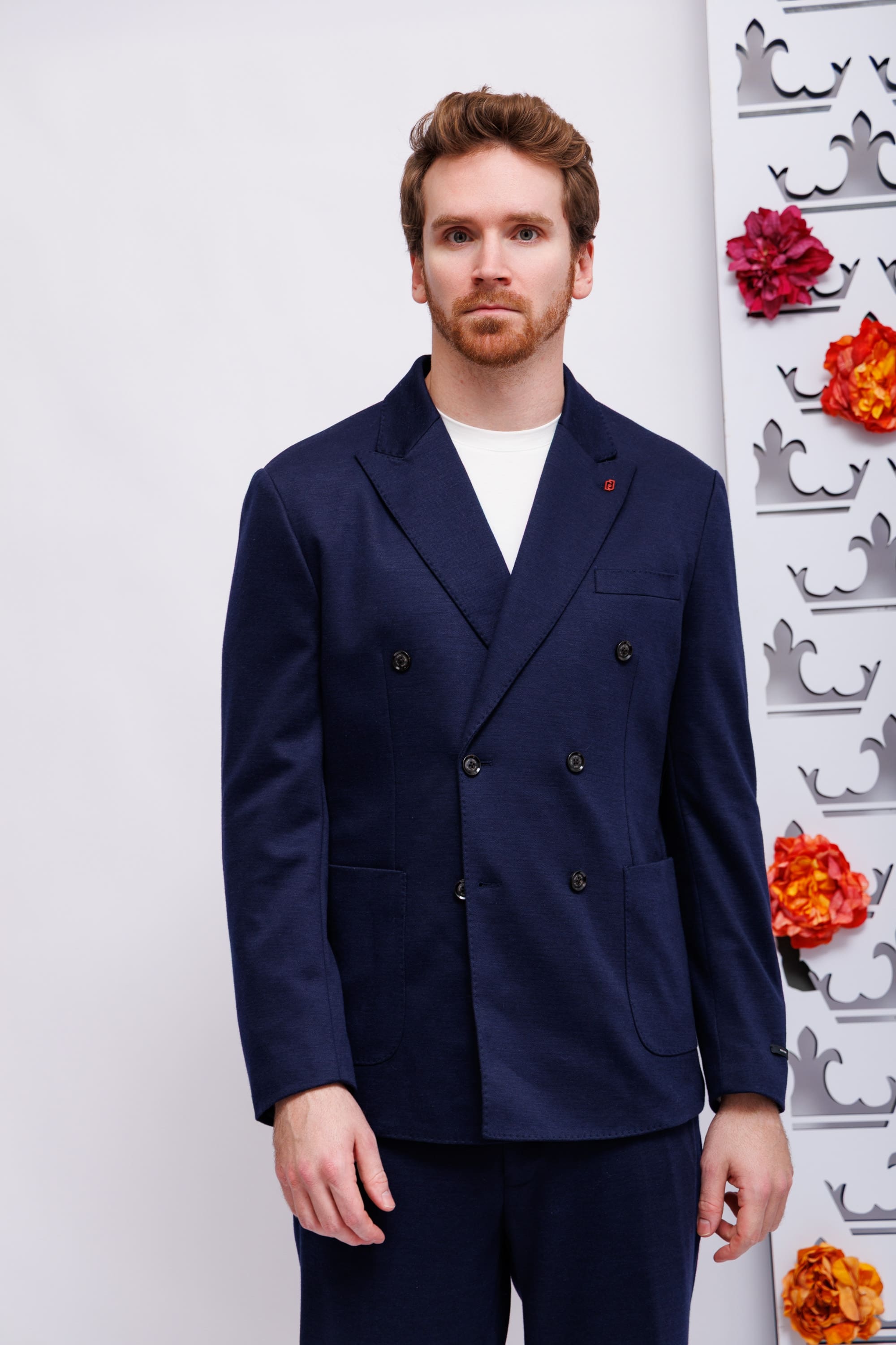 Слегка приталенный кройЛацканы широкие2 ряда пуговиц2 шлицыКарманы накладныеНа груди- карман-листочкаНа рукавах- прорезные петли и "целующиеся"(соприкасающиеся) пуговицы
