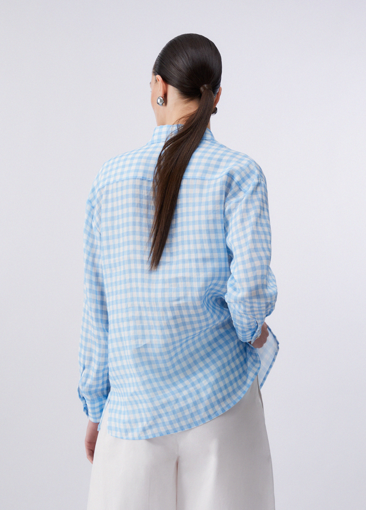 Эта рубашка в клетку в стиле виши, сшитая из рами — натуральной ткани, сочетающей в себе структуру и мягкость, — идеально подходит для теплых дней. Заправьте ее в шорты или брюки для создания расслабленного и гламурного образа.