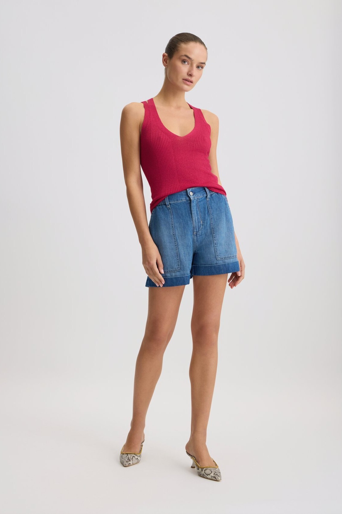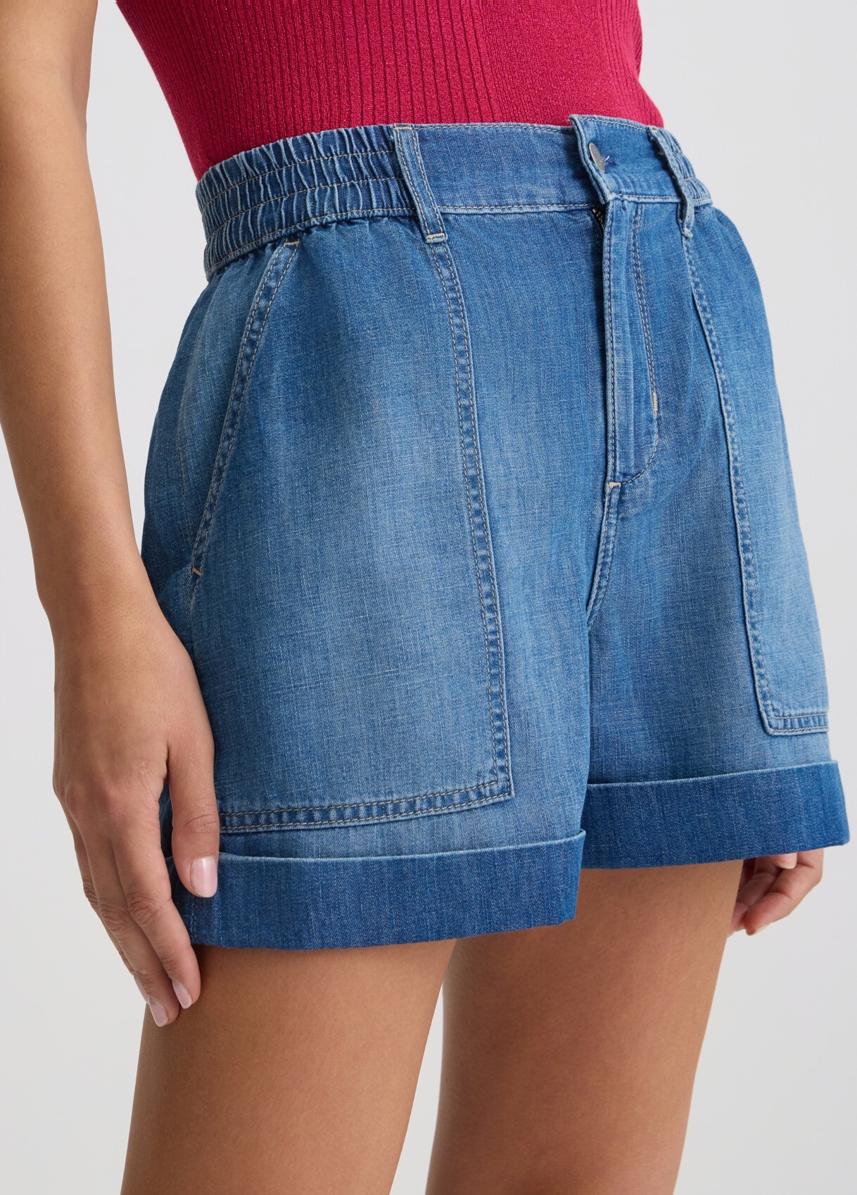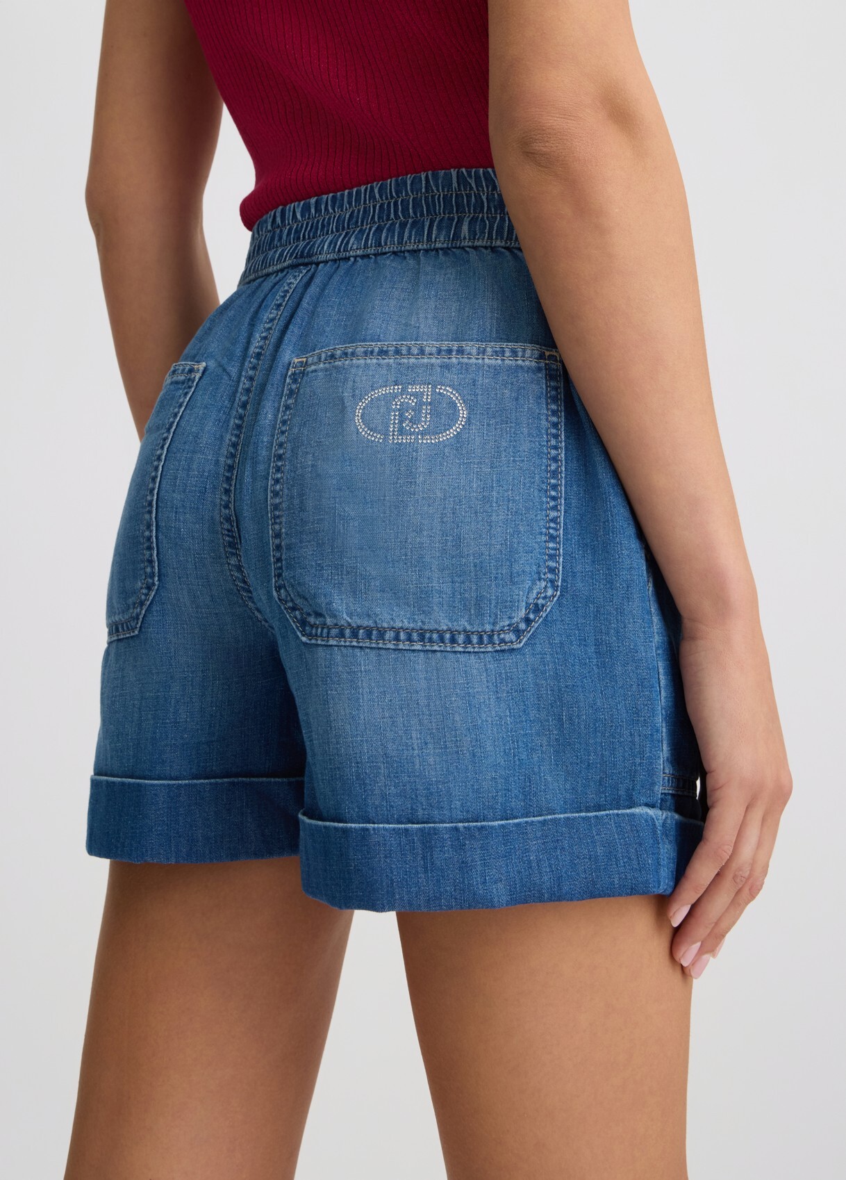 Шорты из денима из смеси хлопка и льна