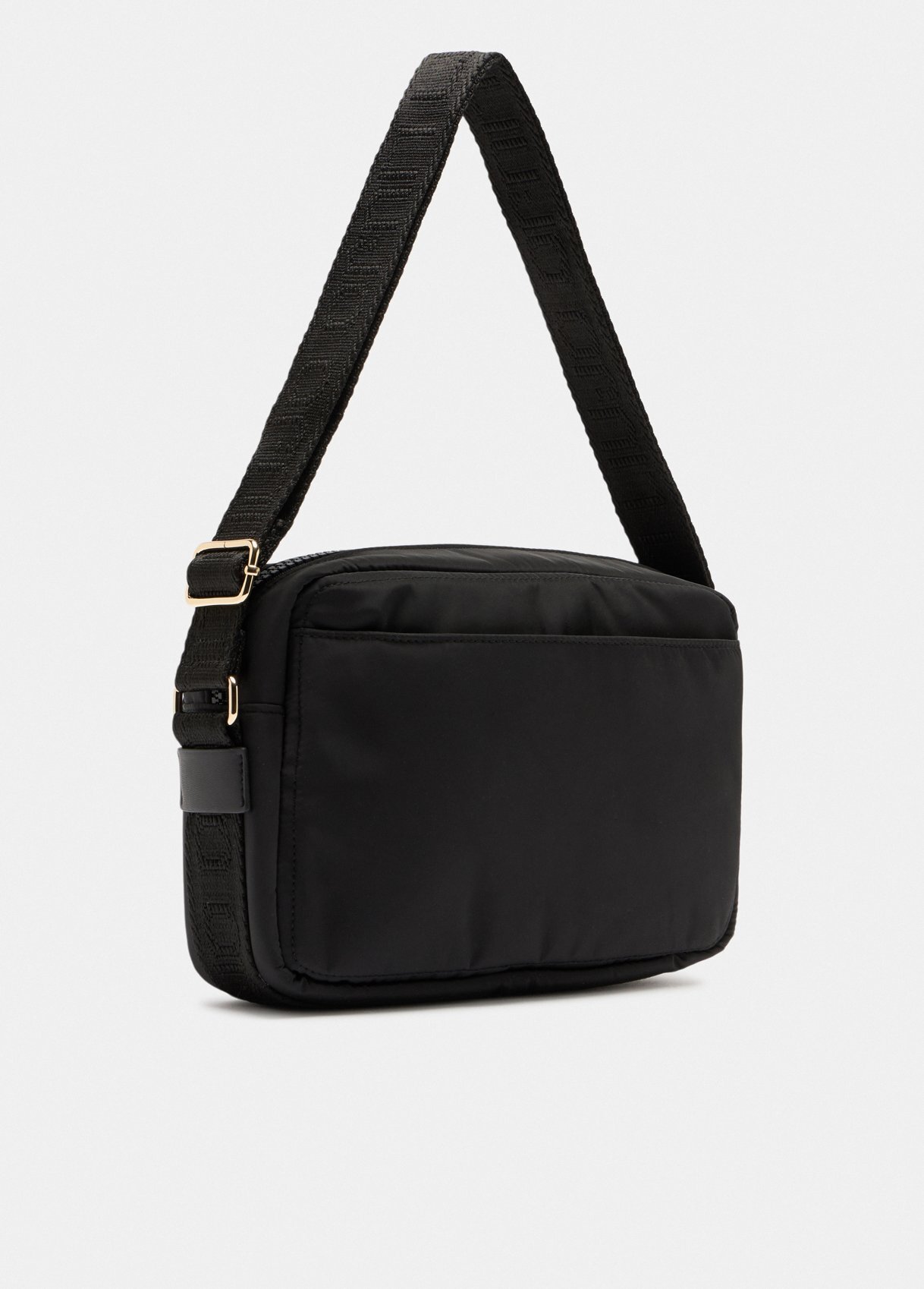 Черная сумка через плечоИзготовлена из нейлонаЛоготип спередиРегулируемый ремешок из репсовой ленты с логотипомПередний карман на молнииПодкладка с логотипомЗастежка-молния