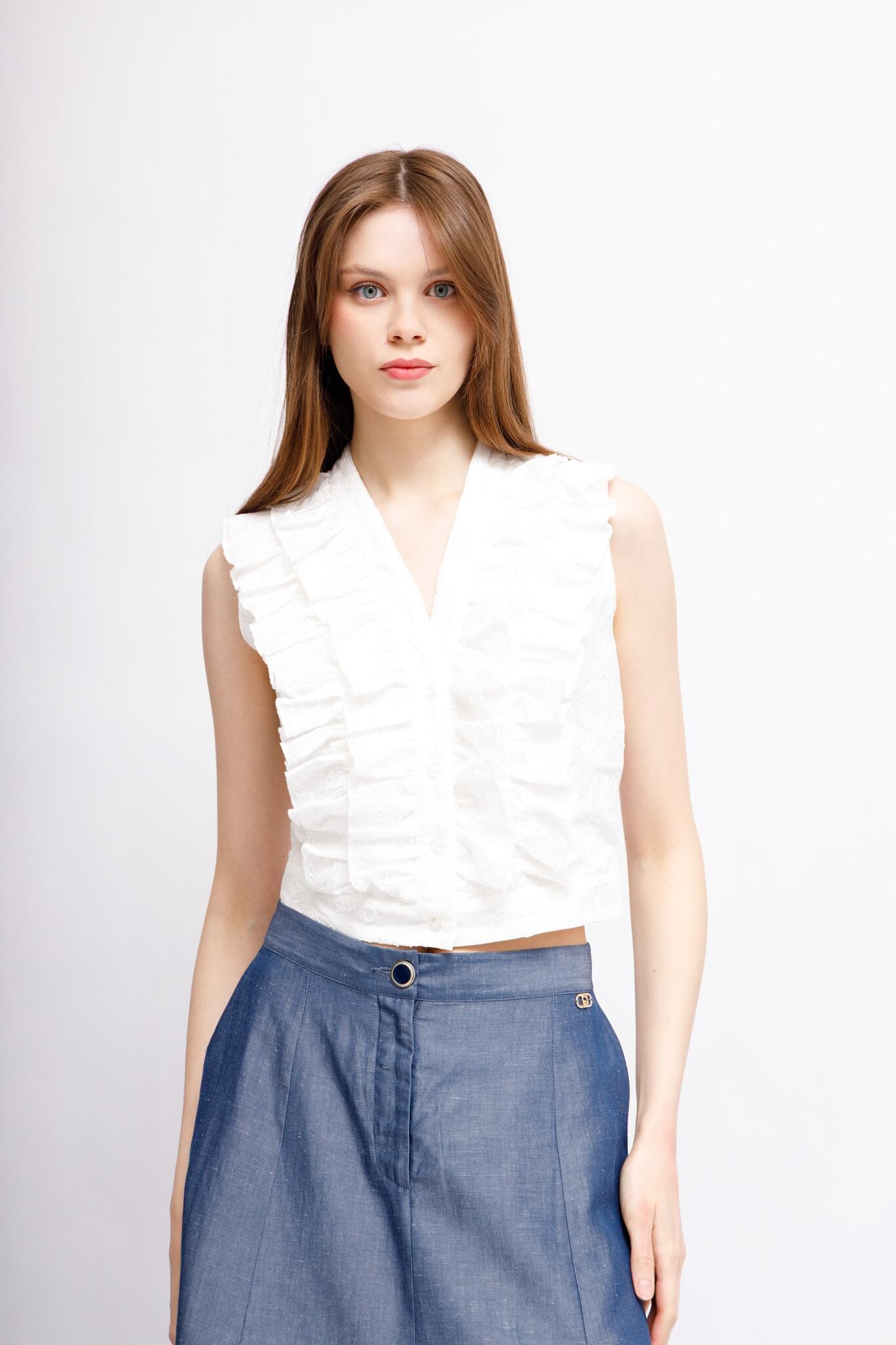 С широкими текстильными рюшами Прямой крой Слегка укороченная модель