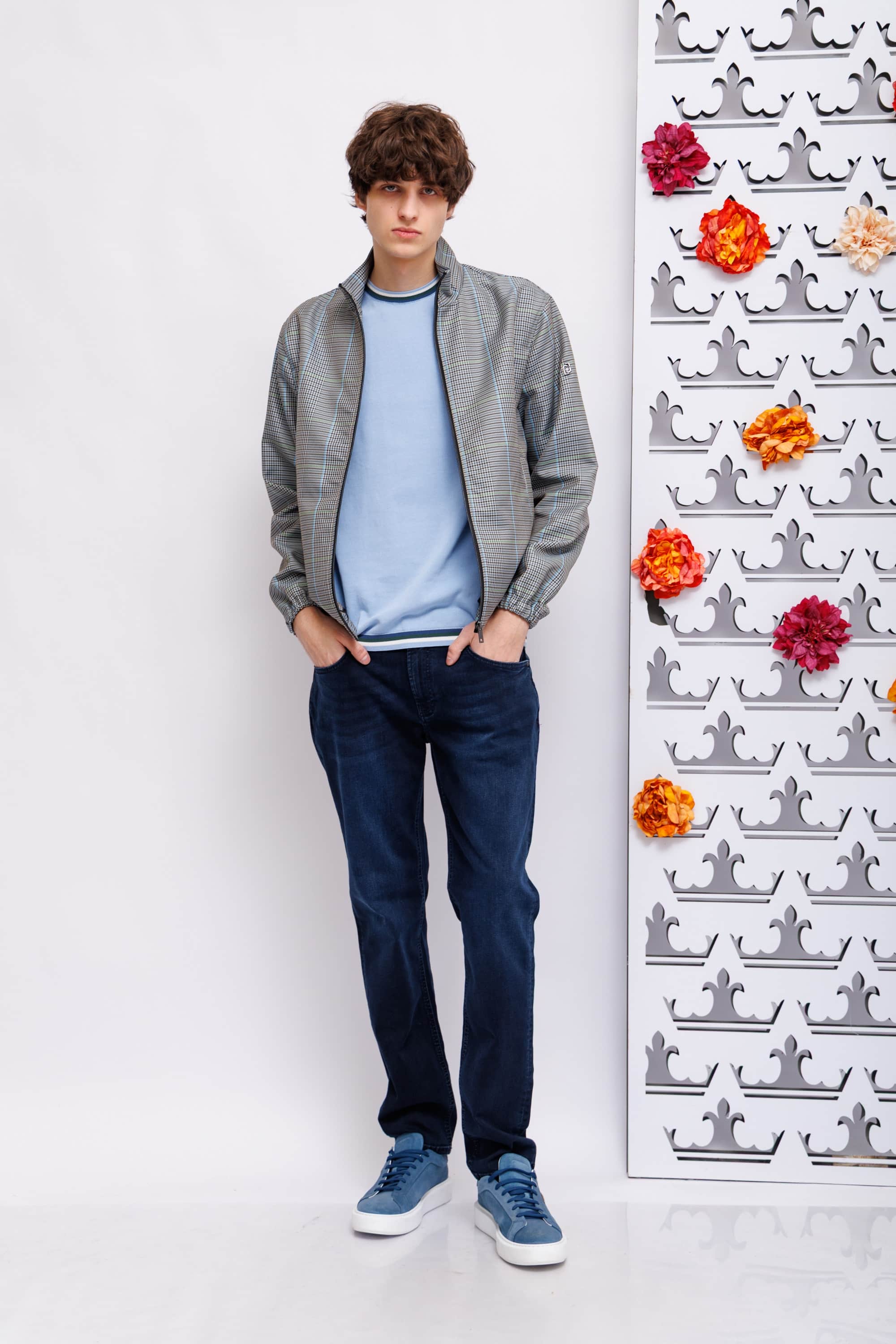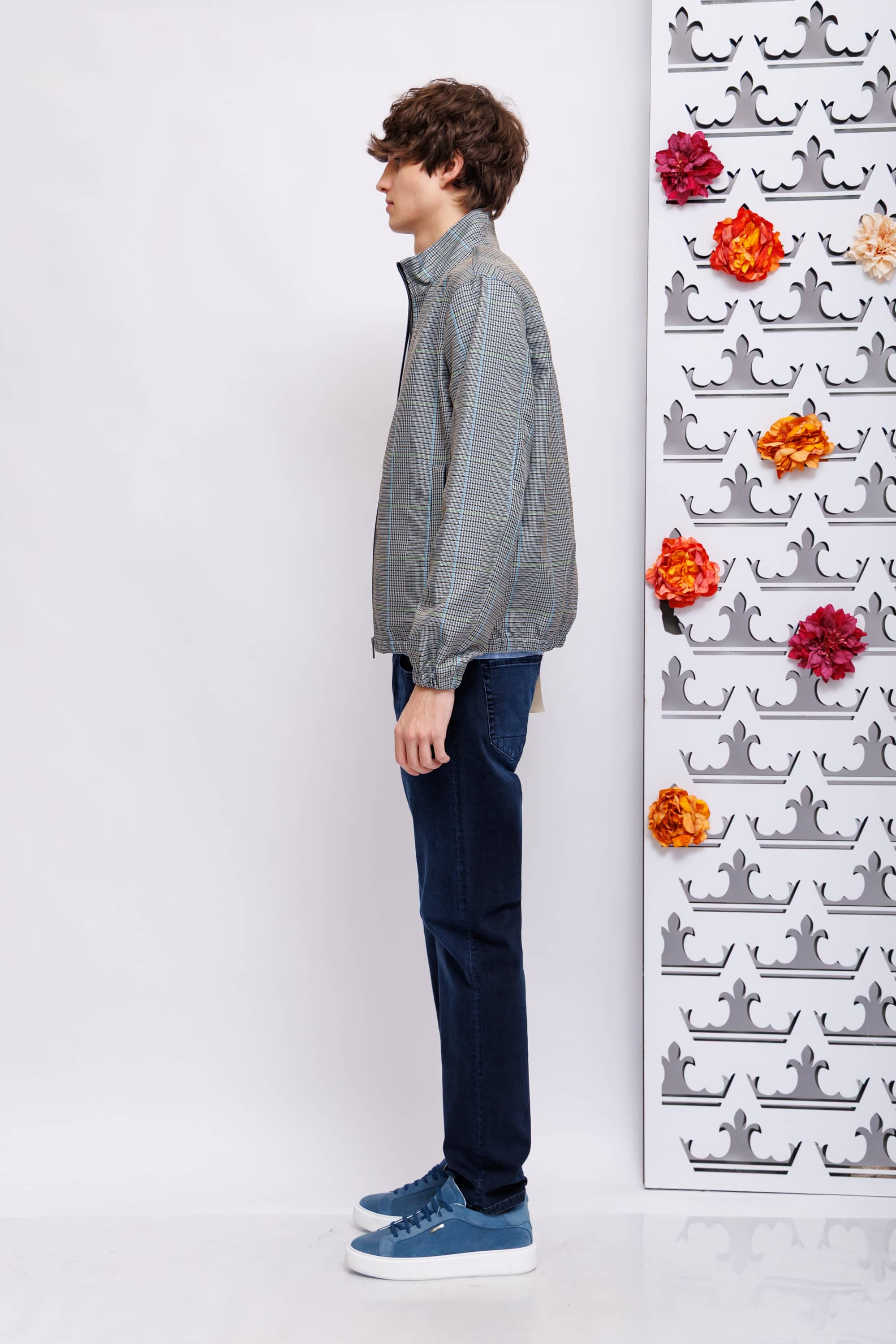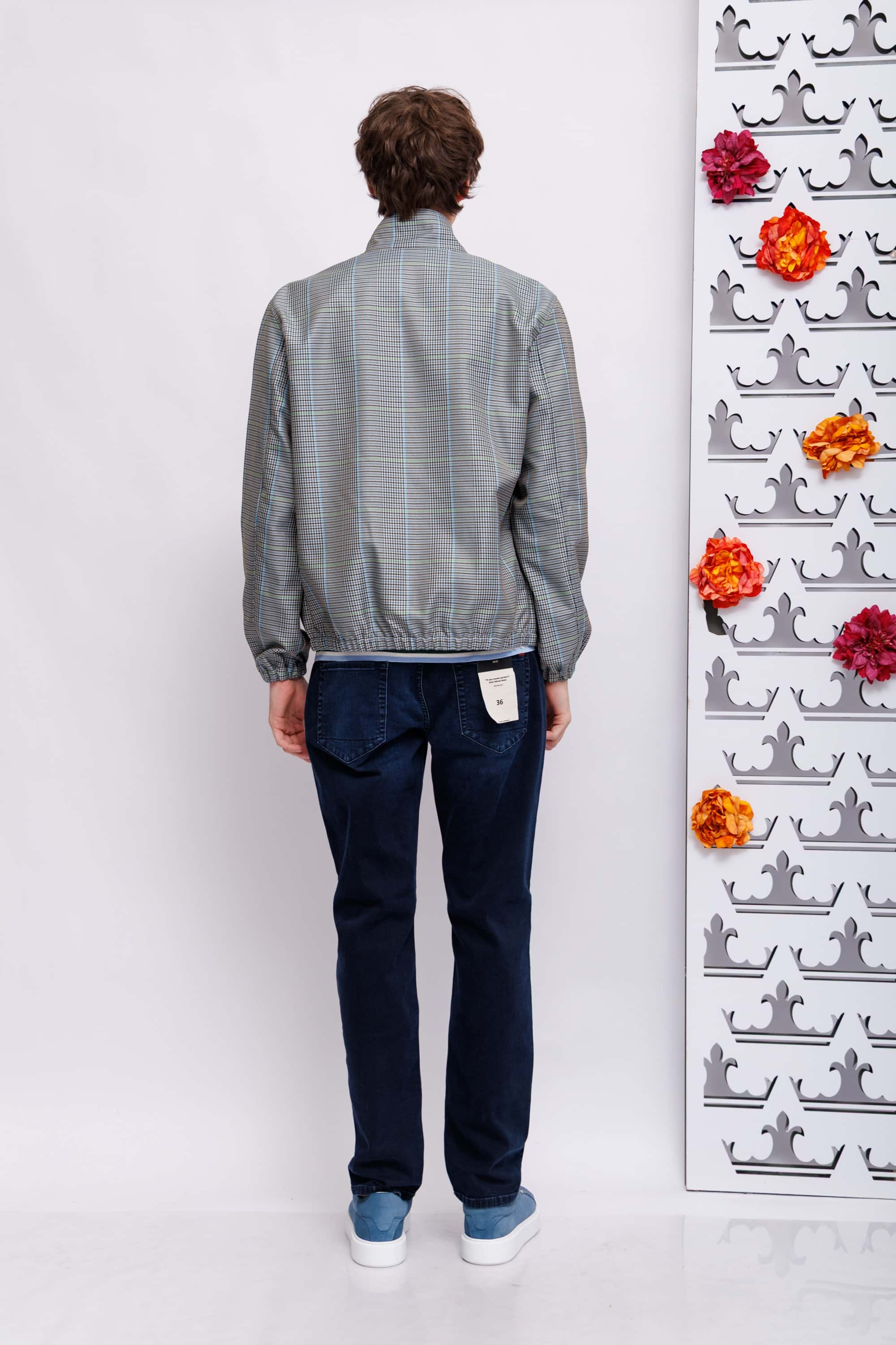 Ветровка серо-голубая в гленчек клетку и полоску