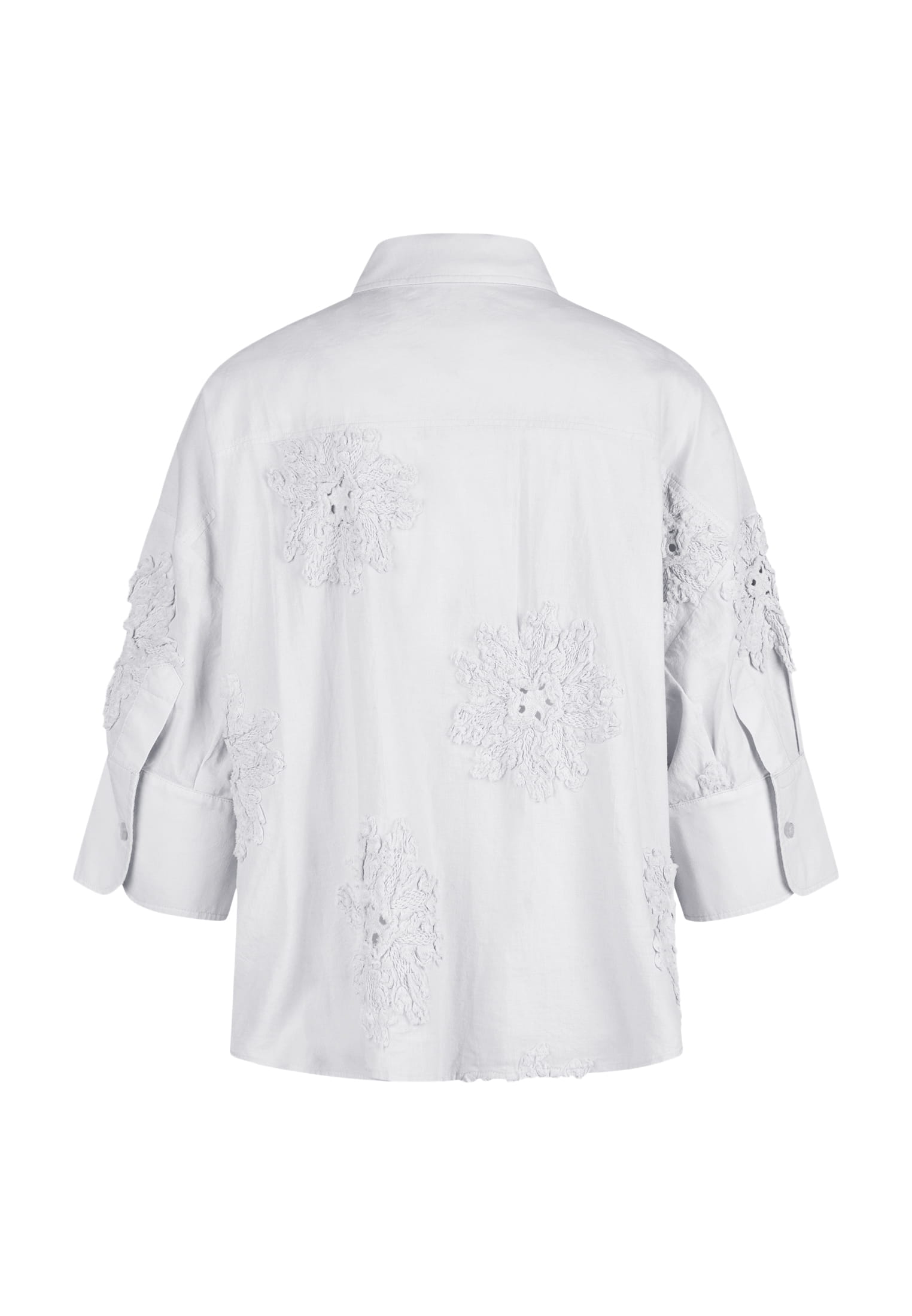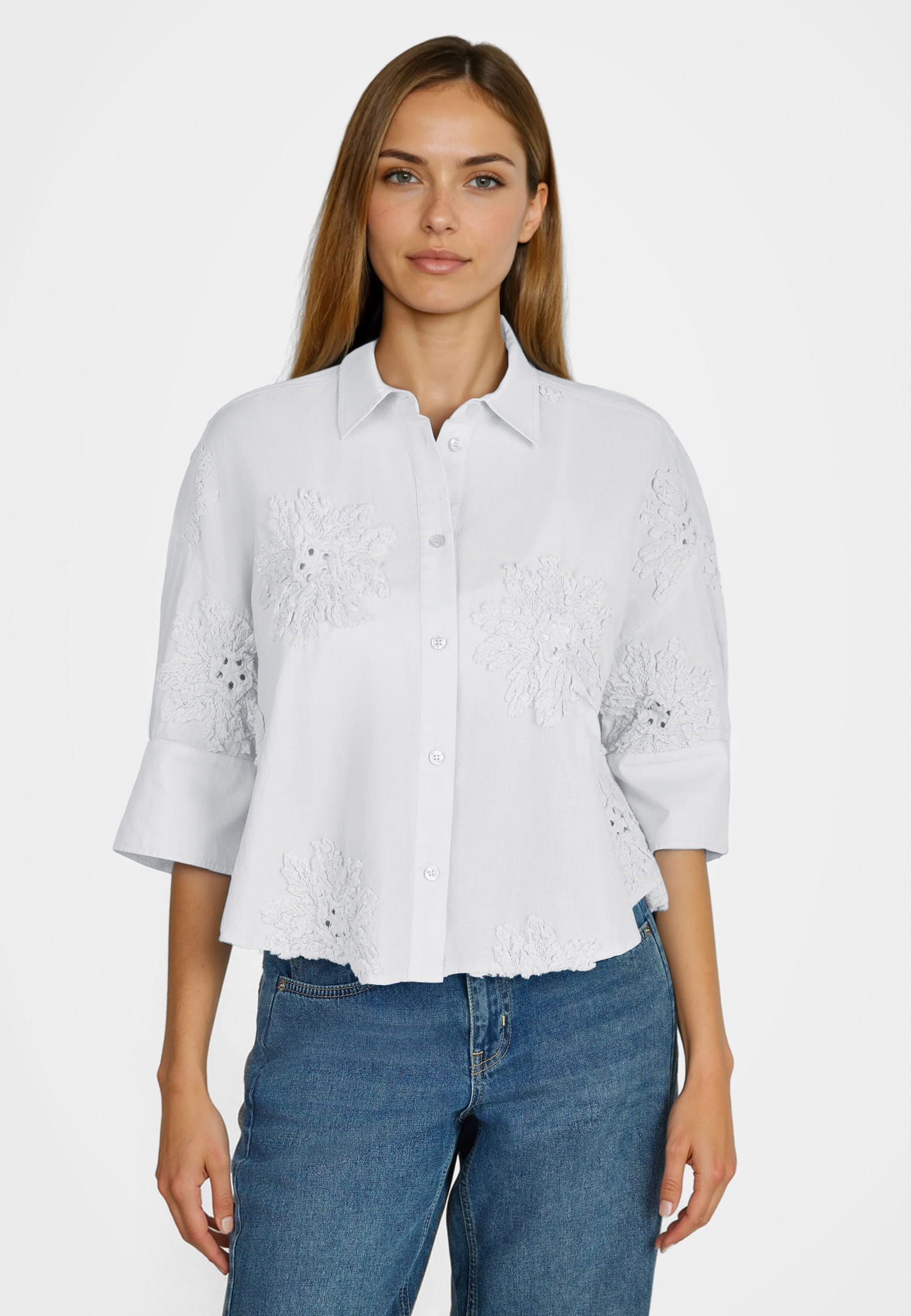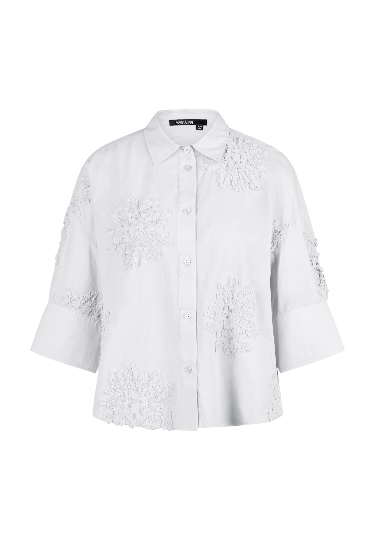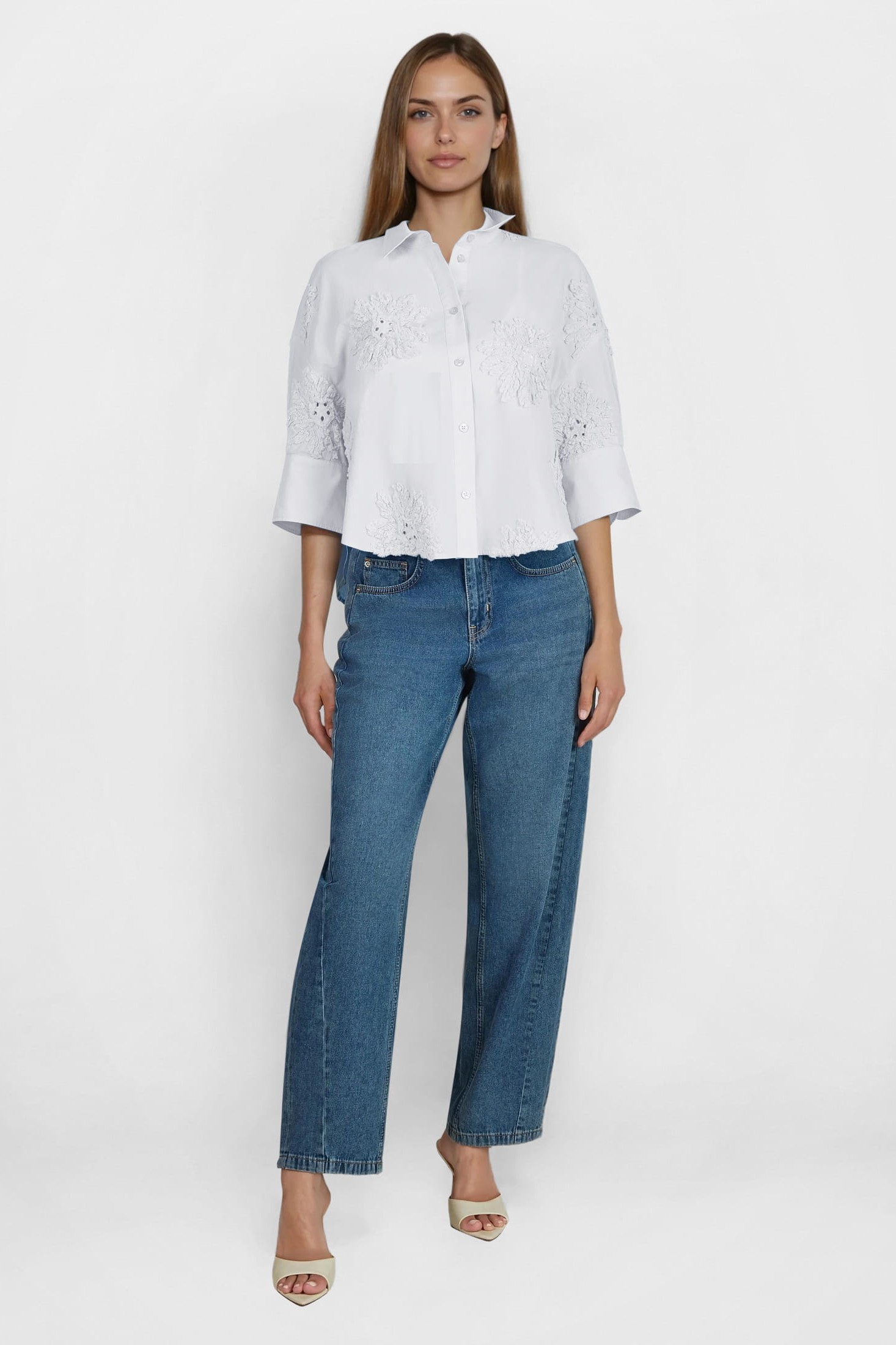 Эта блузка сочетает в себе классический крой рубашки с тонкой, тональной цветочной вышивкой на легком хлопковом поплине. Воротник рубашки придает изделию форму, а разрезы на манжетах и боковые разрезы обеспечивают дополнительный комфорт. Идеально подходит для повседневного, но модного образа.