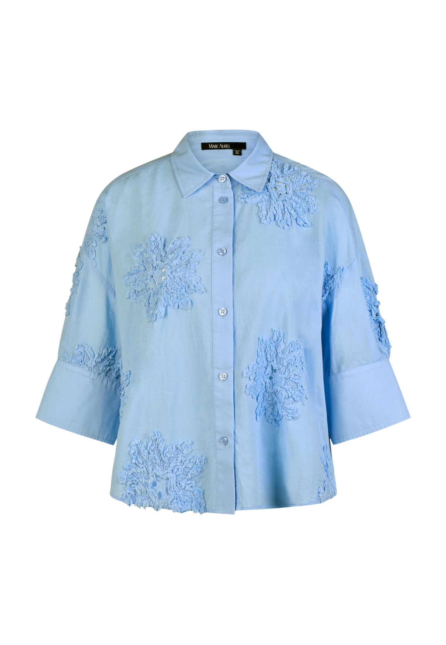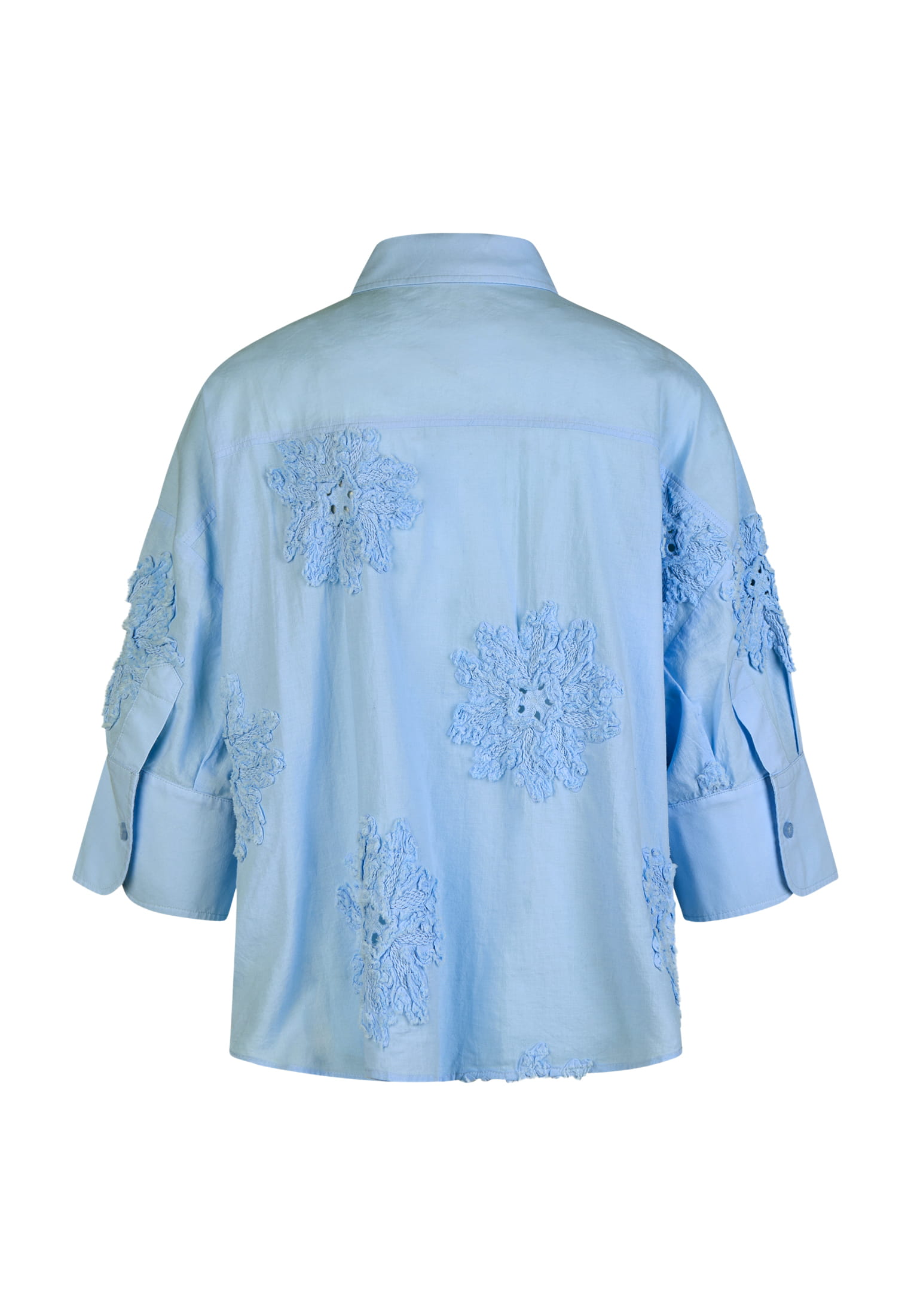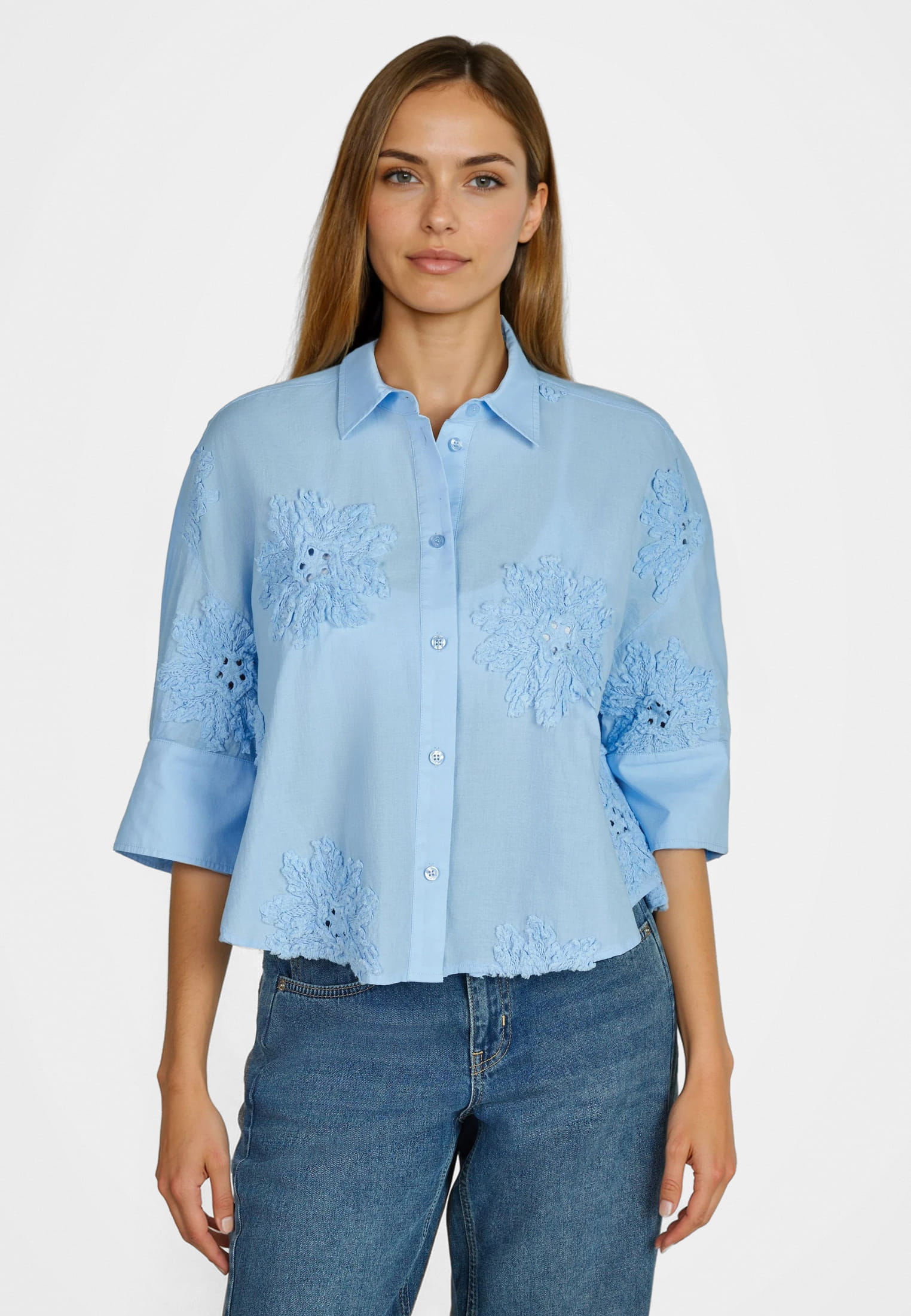 Эта блузка сочетает в себе классический крой рубашки с тонкой, тональной цветочной вышивкой на легком хлопковом поплине. Воротник рубашки придает изделию форму, а разрезы на манжетах и ​​боковые разрезы обеспечивают дополнительный комфорт. Идеально подходит для повседневного, но модного образа.