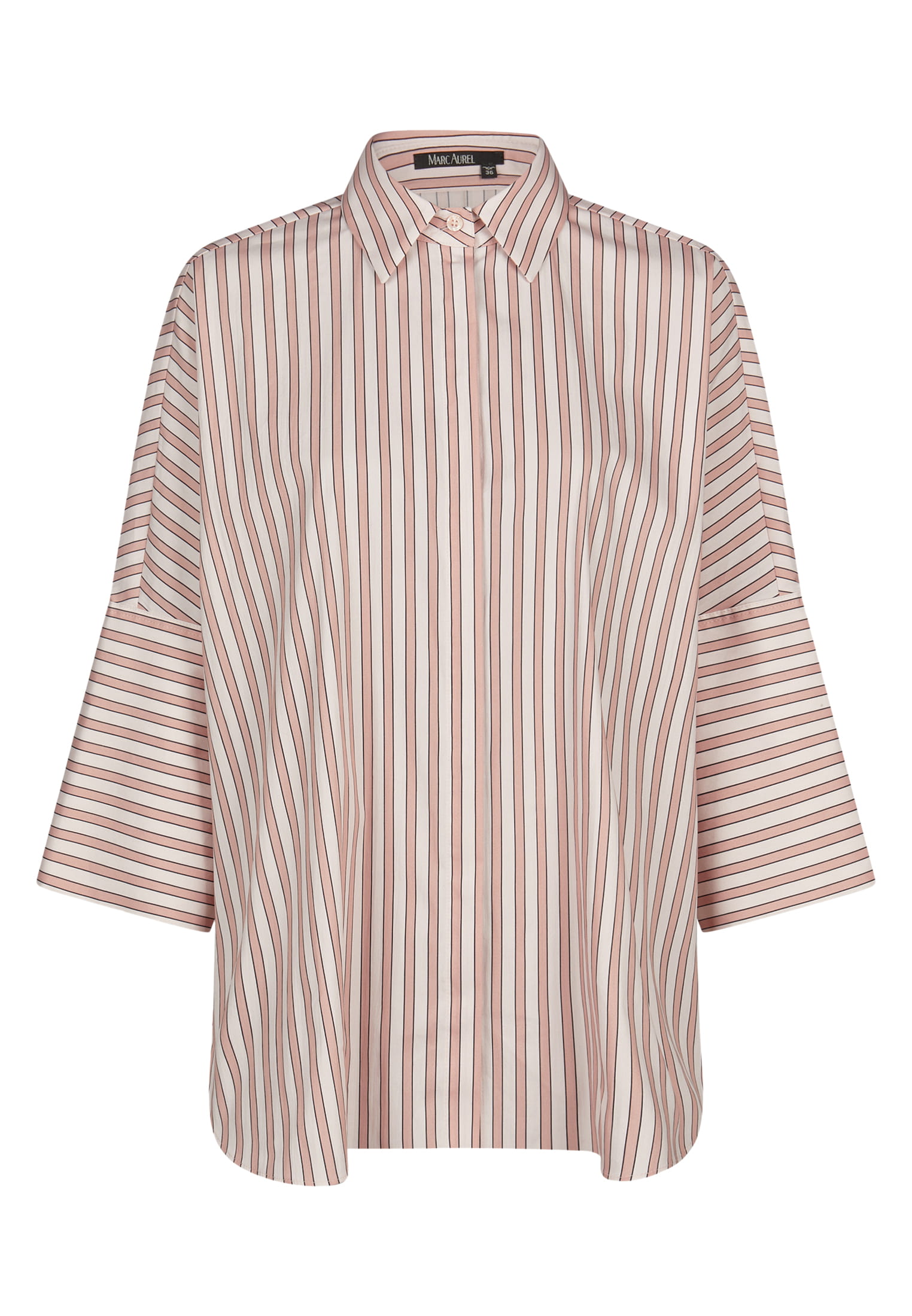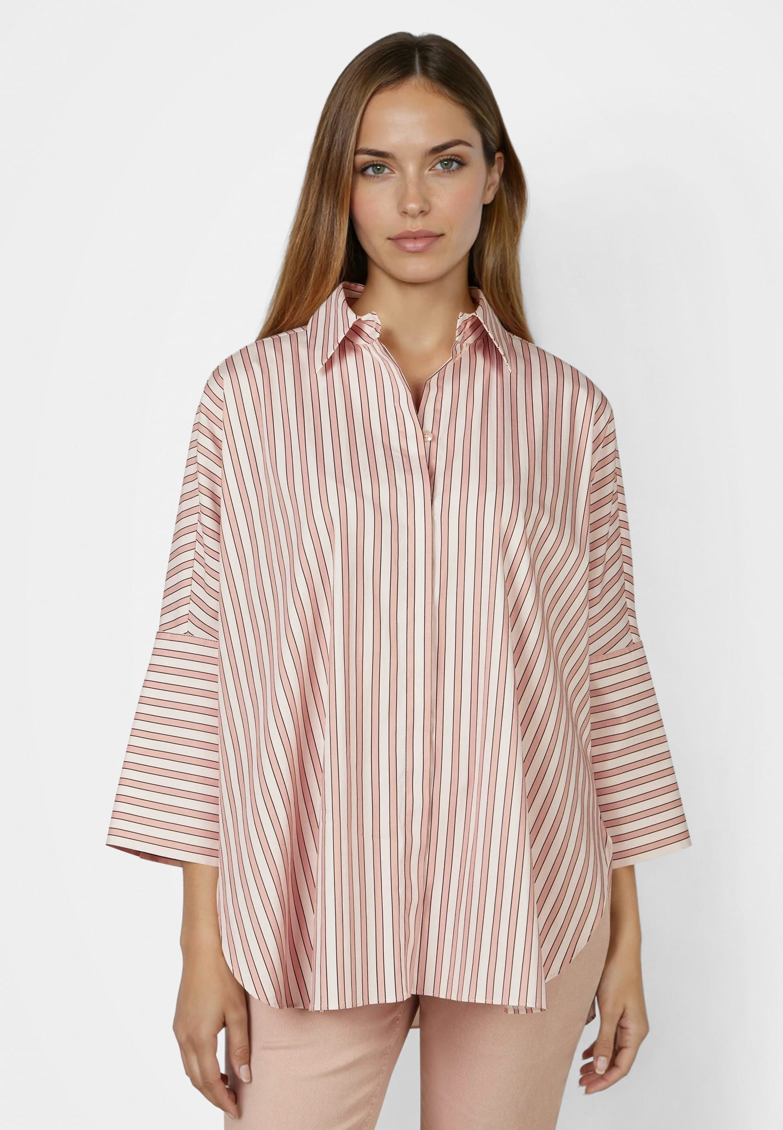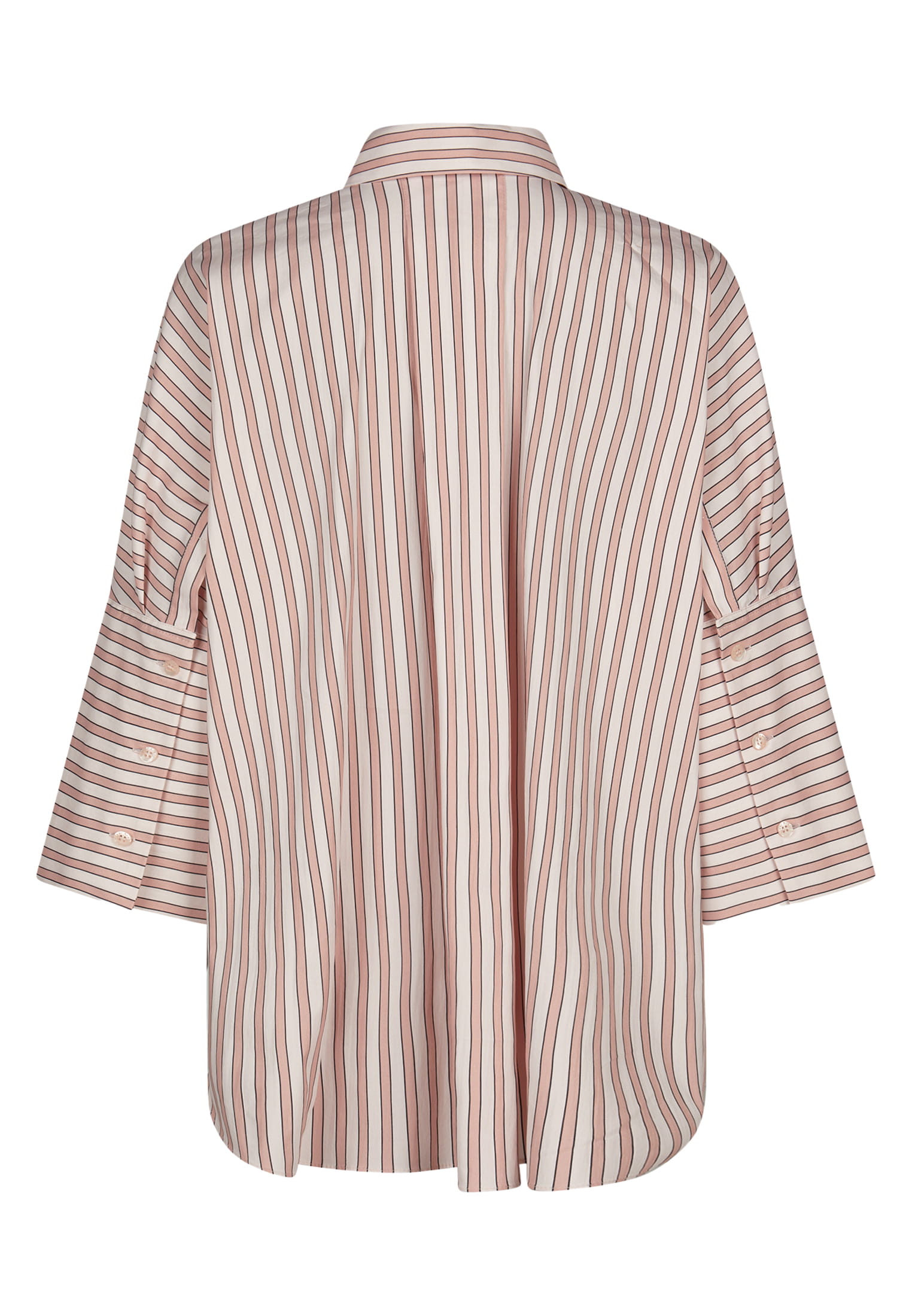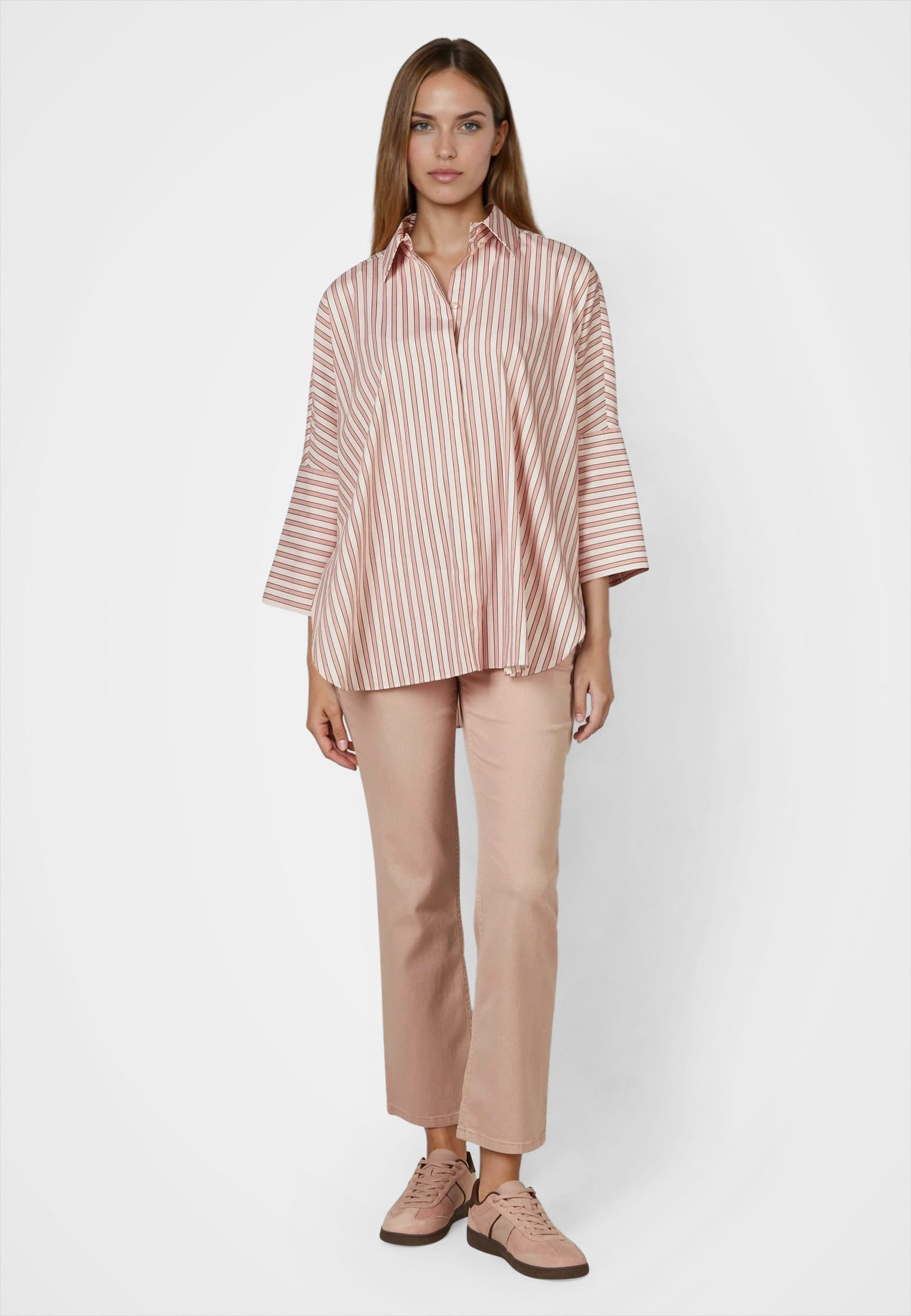 в полоску. Эта рубашка из поплина сочетает в себе свободный крой и укороченные рукава три четверти, создавая повседневный, но эффектный образ. Декоративные пуговицы добавляют стильные акценты, а классический воротник придает дизайну вневременную элегантность. Идеально подходит для модного, но в то же время изысканного образа.