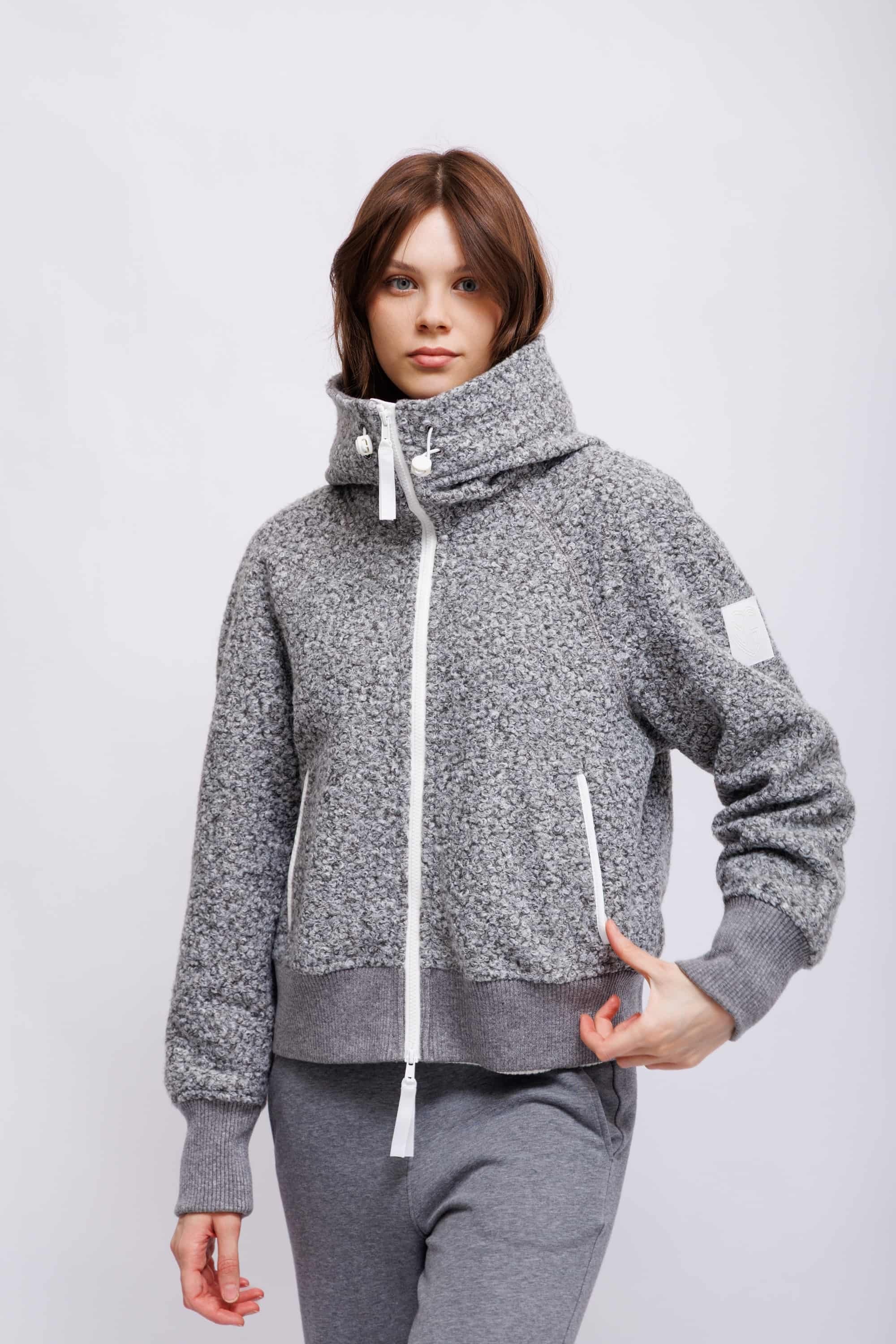 Этот бомбер с капюшоном из кудрявого искусственного меха выглядит роскошно и современно. Трикотажные манжеты и плоская строчка добавляют спортивные акценты, а детали молочного цвета создают тонкий цветовой контраст. Прорезные карманы обеспечивают практичность.