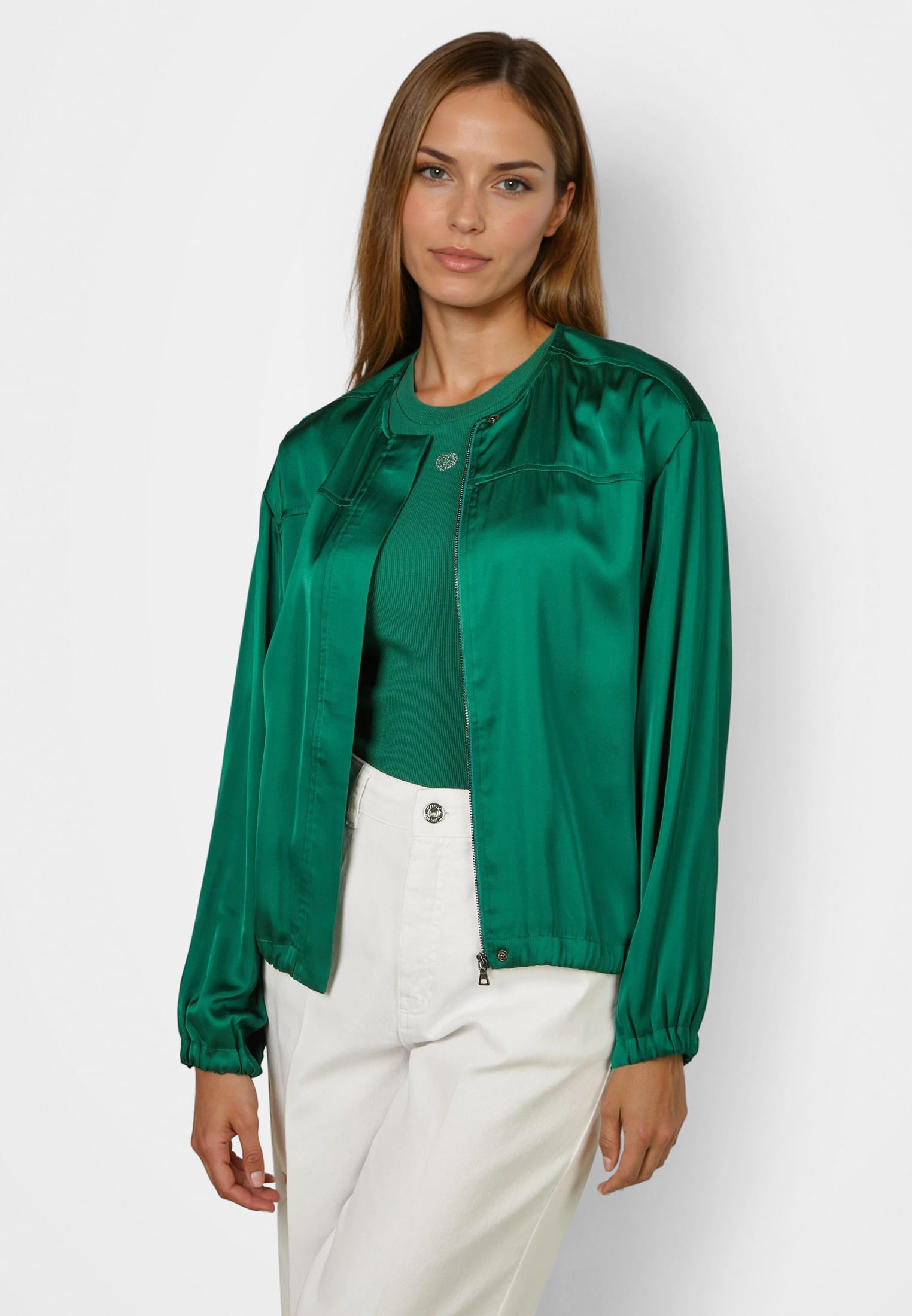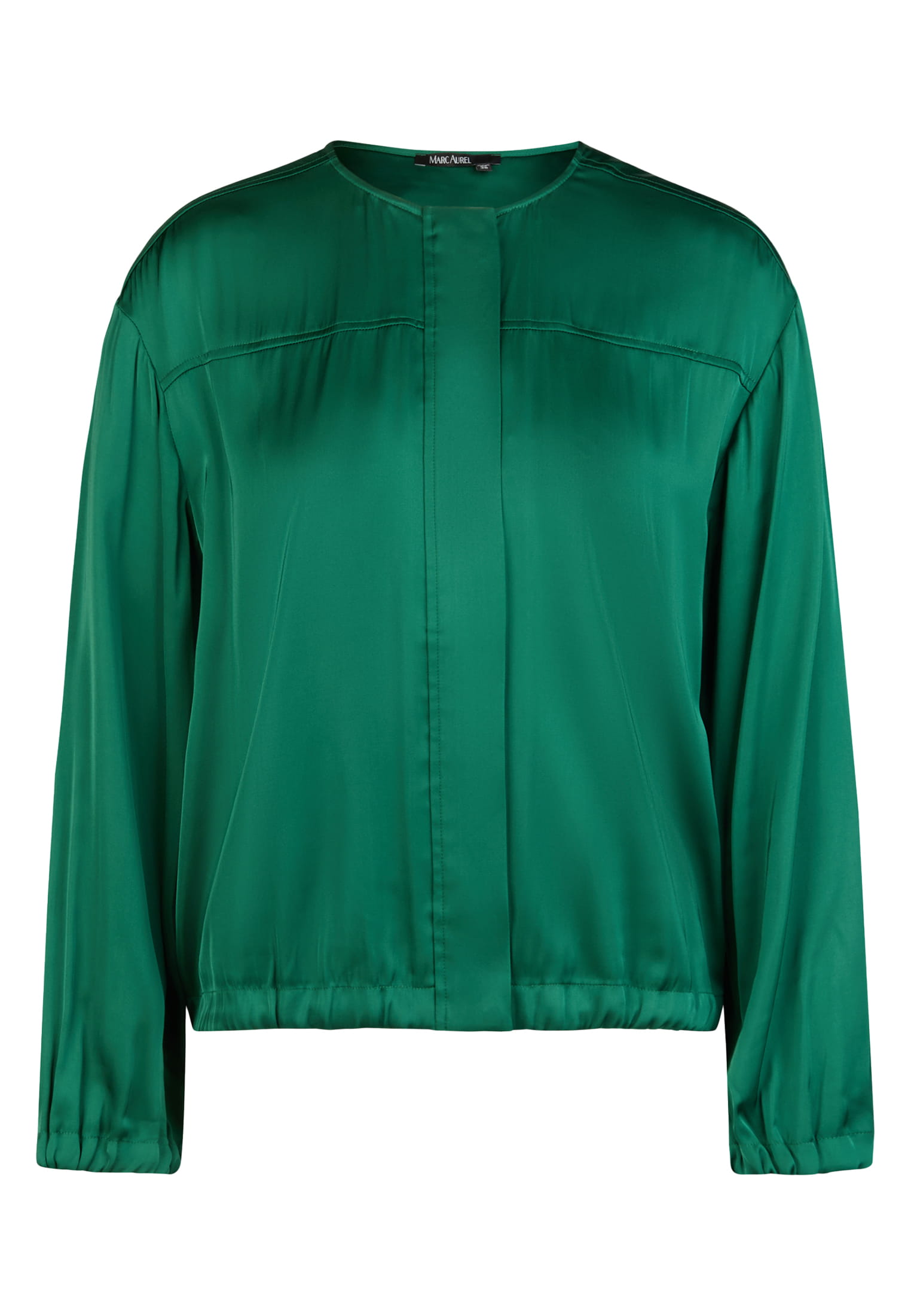Эта блузон сочетает в себе элегантный вискозный атлас со спортивными деталями. Эластичный пояс обеспечивает современную, удобную посадку, а круглый вырез горловины придает дизайну четкие линии. Нежный блеск материала подчеркивает элегантность и делает блузон стильным дополнением.