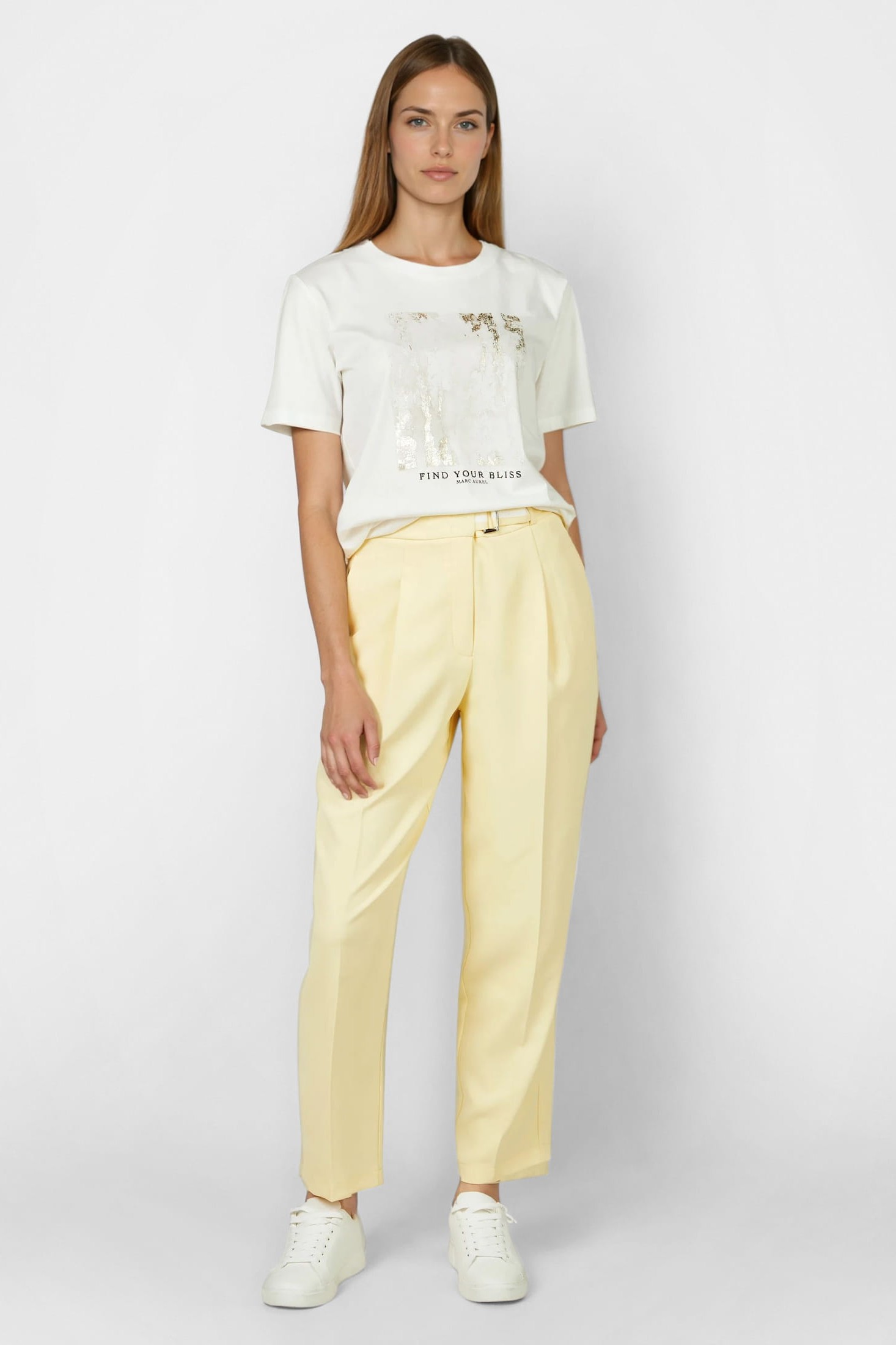 Глянцевый принт на передней части придает дизайну современный вид, а классический круглый вырез горловины создает лаконичный силуэт. Небольшой логотип на задней части воротника завершает образ.