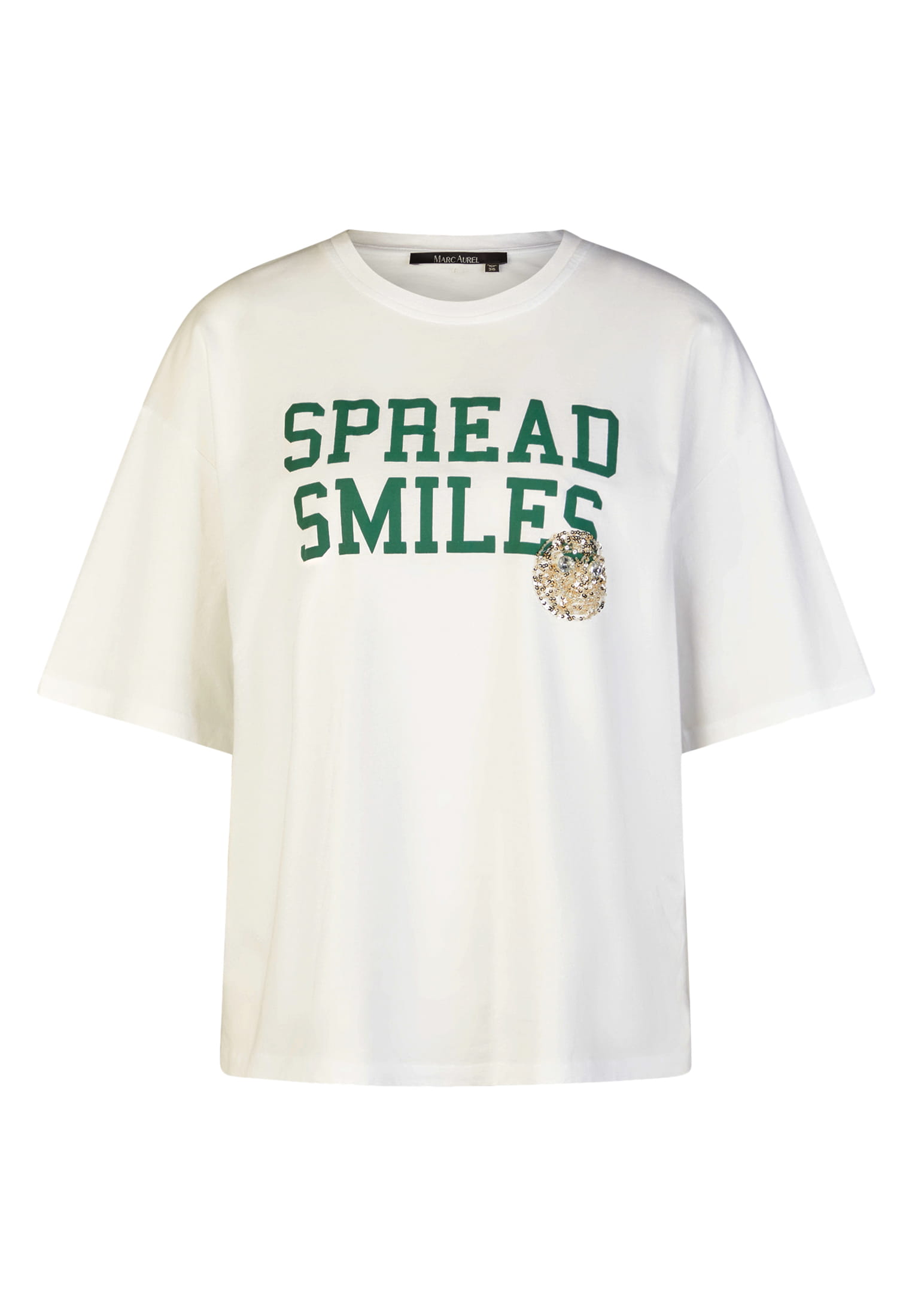 Эта футболка с круглым вырезом впечатляет своим повседневным, лаконичным видом и стильным акцентом благодаря принту на передней части. Мягкий хлопок обеспечивает максимальный комфорт. Идеально подходит для создания повседневного, но модного образа.