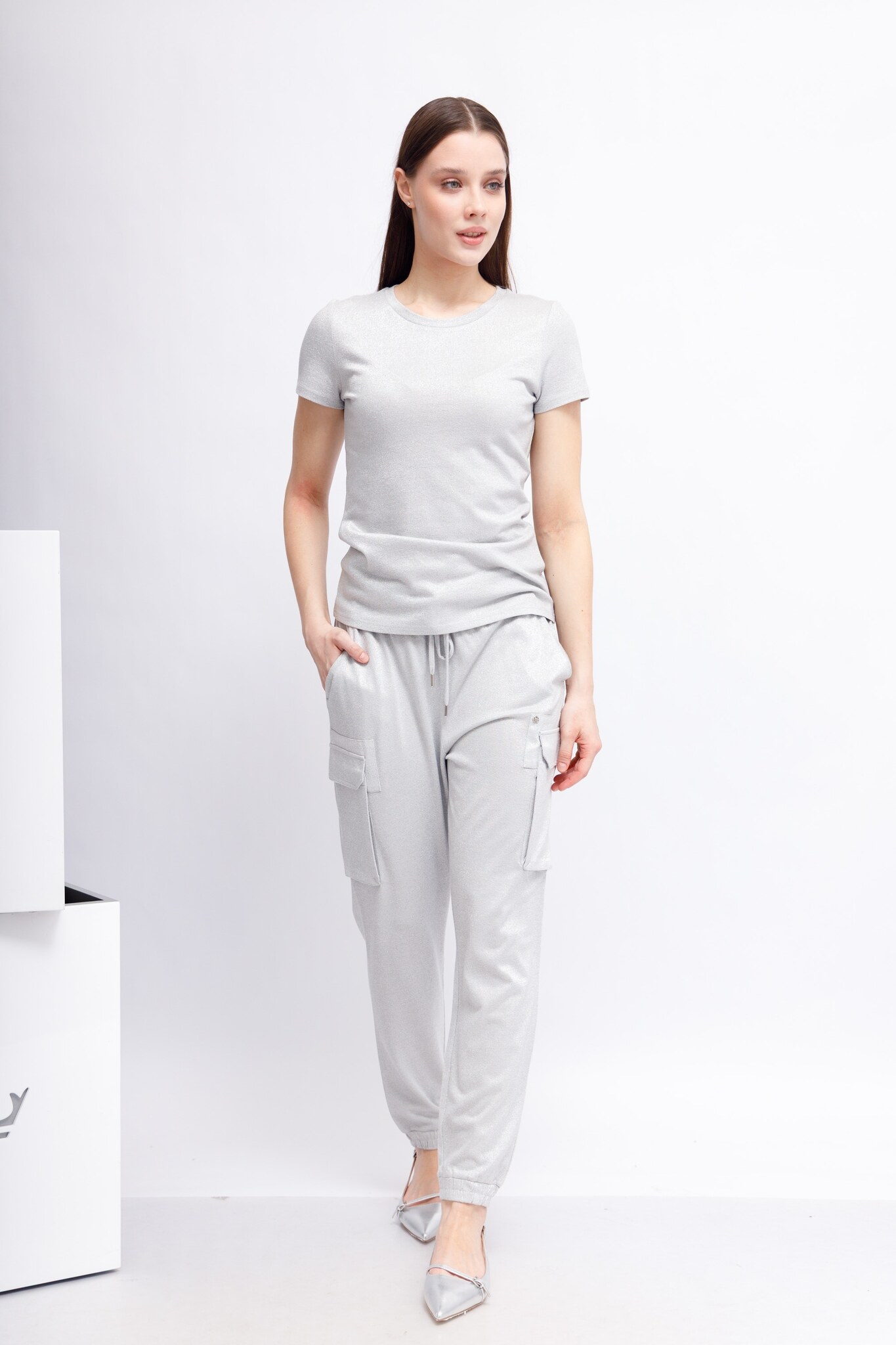 Эта футболка из мягко струящейся смеси вискозы с люрексом добавит легкий блеск вашему гардеробу. Круглый вырез и облегающий крой создают женственный силуэт, а эффект люрекса придает рубашке стильный штрих. Идеально подходит для сочетания с джинсами или юбками для современного, но непринужденного образа.