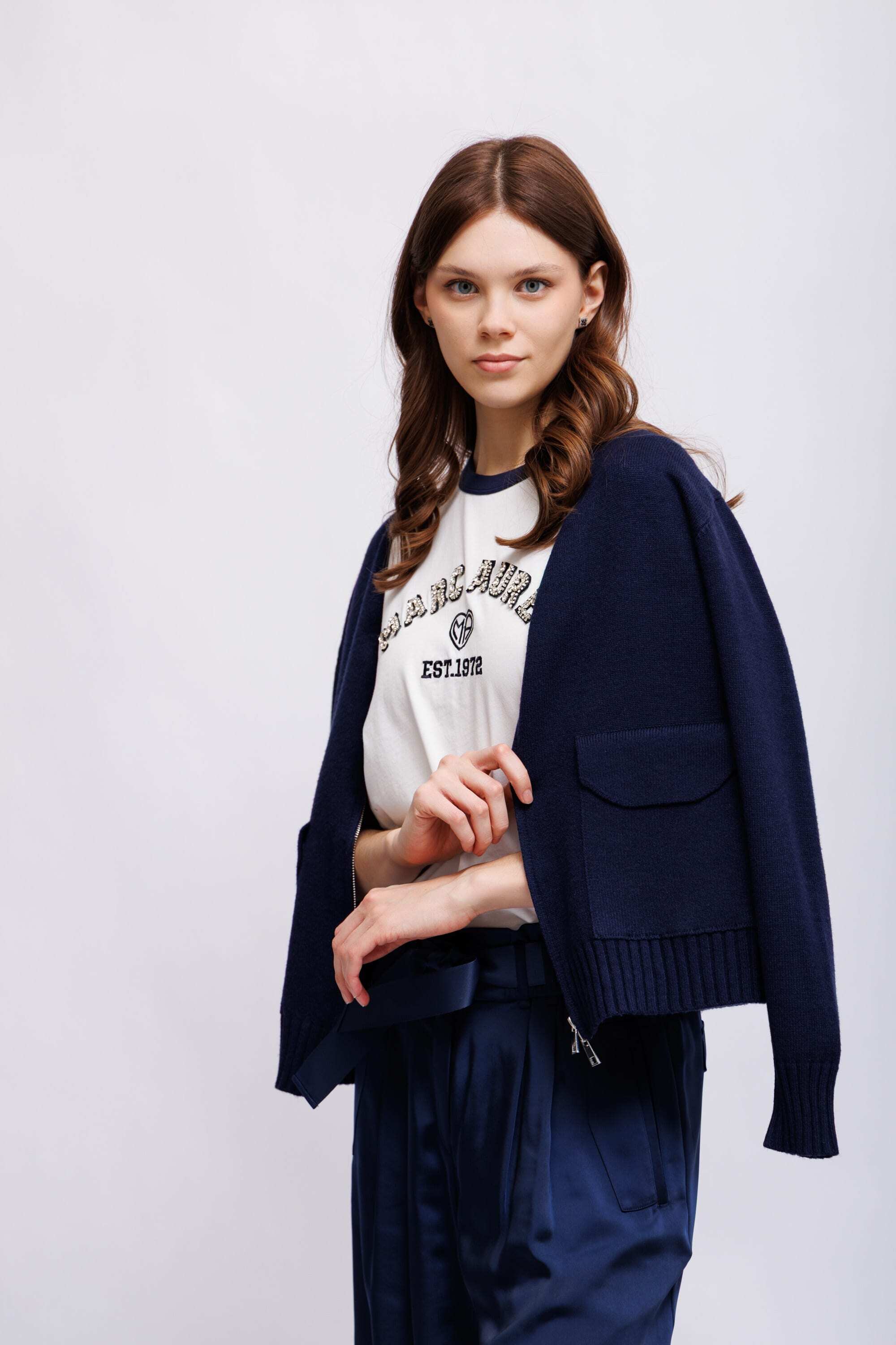 Этот кардиган из мягкой смесовой вискозы сочетает в себе комфорт и функциональность. Накладные карманы и зауженный V-образный вырез придают ему особый шарм. Идеально подходит для создания повседневного, но в то же время модного образа.