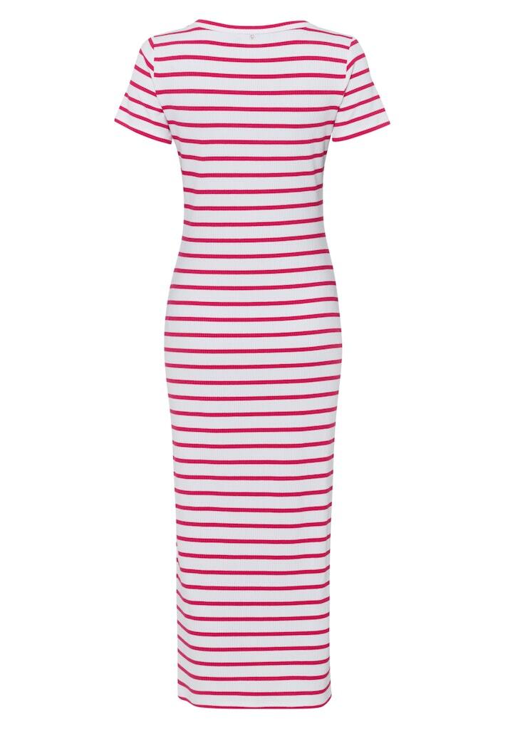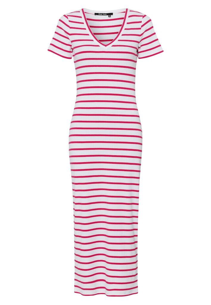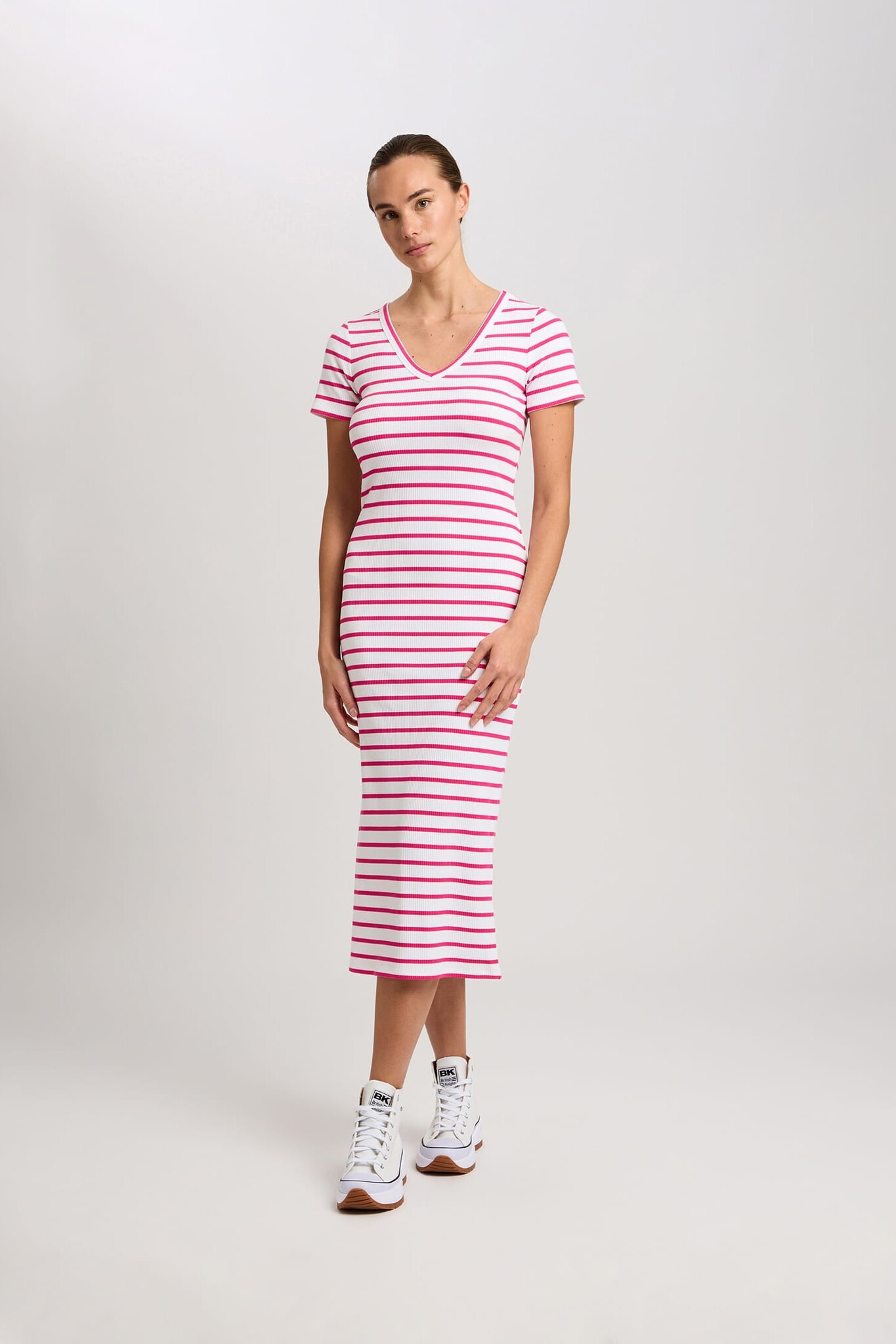 Платье-футболка макси из ребристого трикотажа с полосками розового цвета