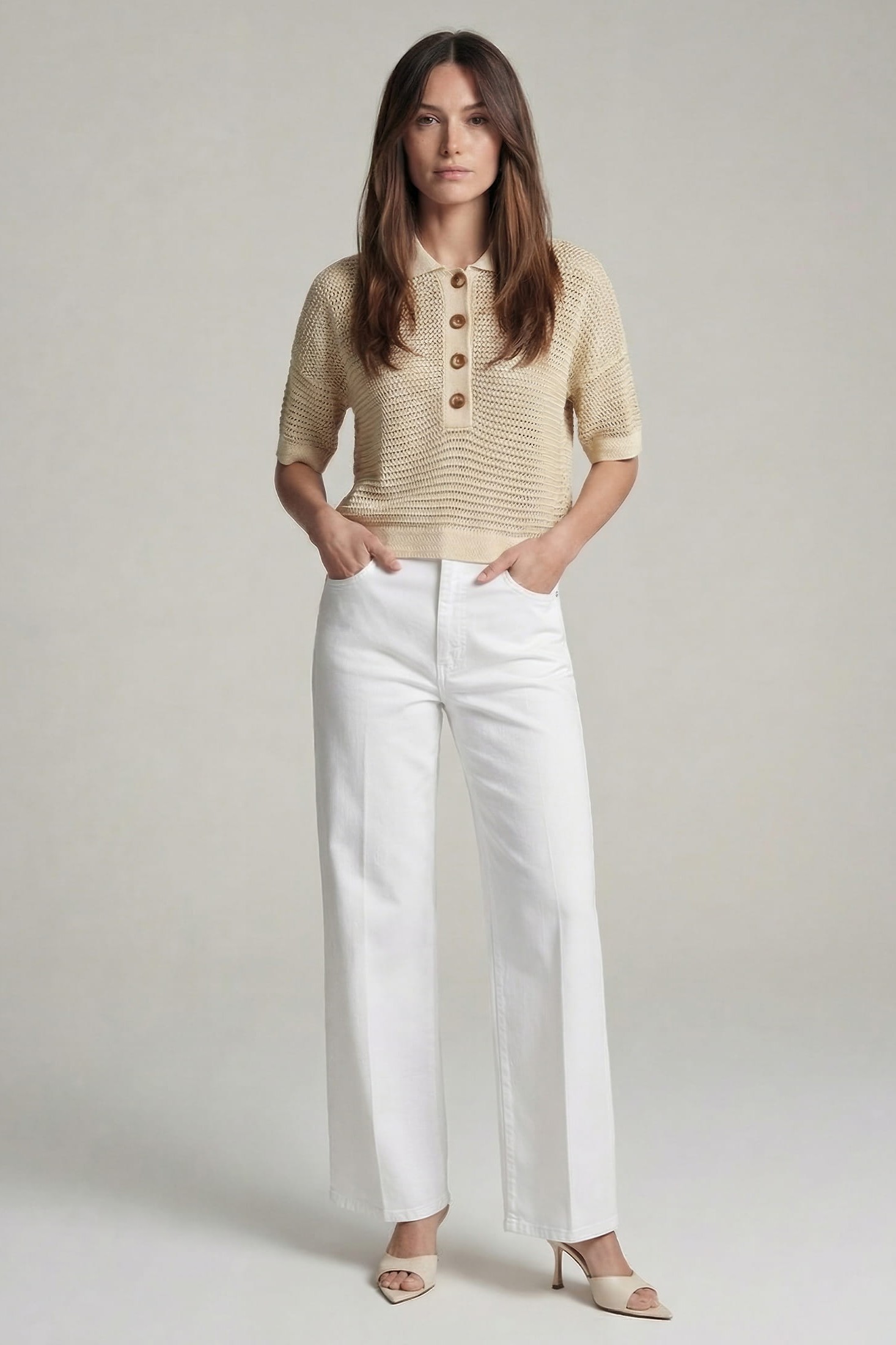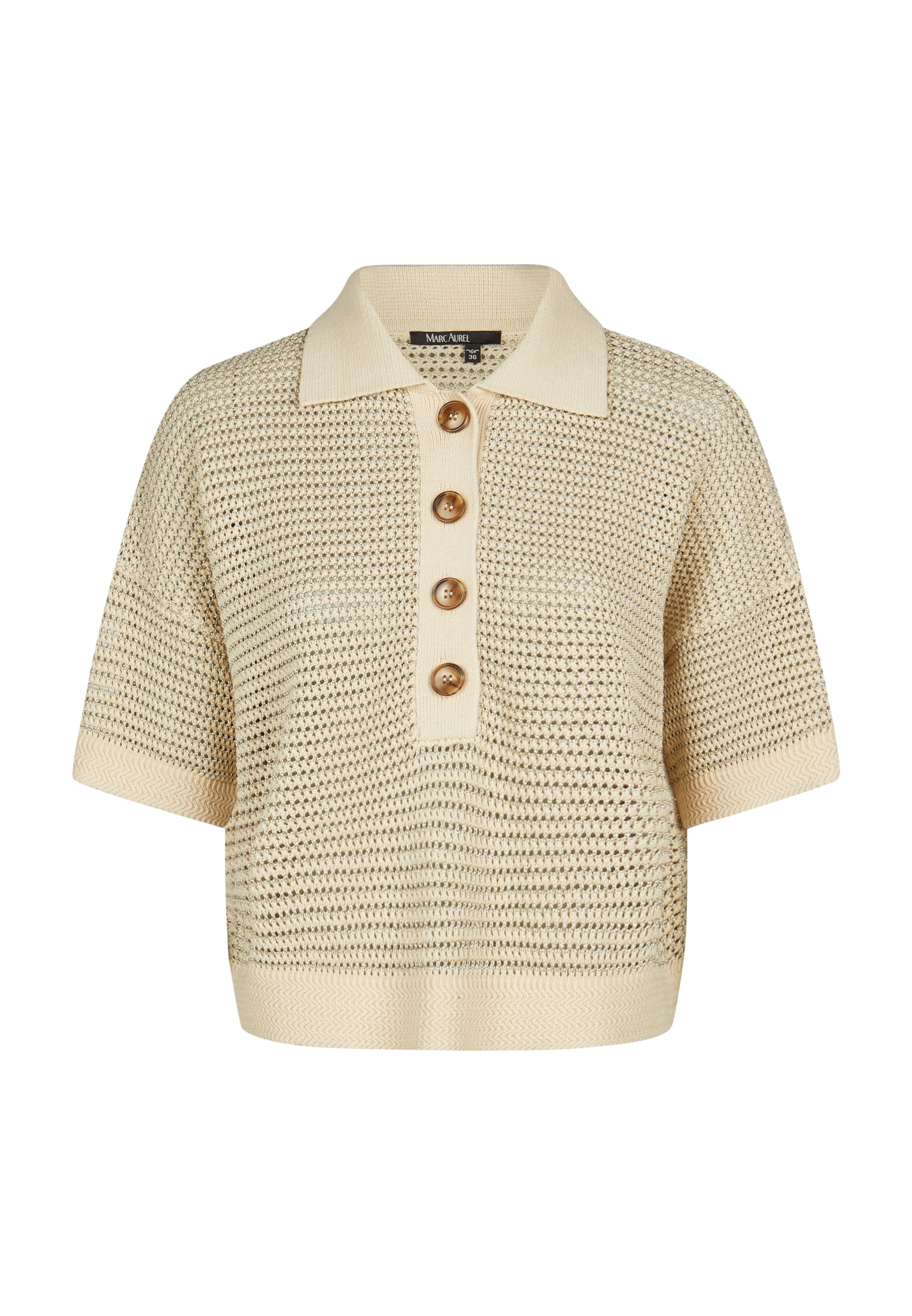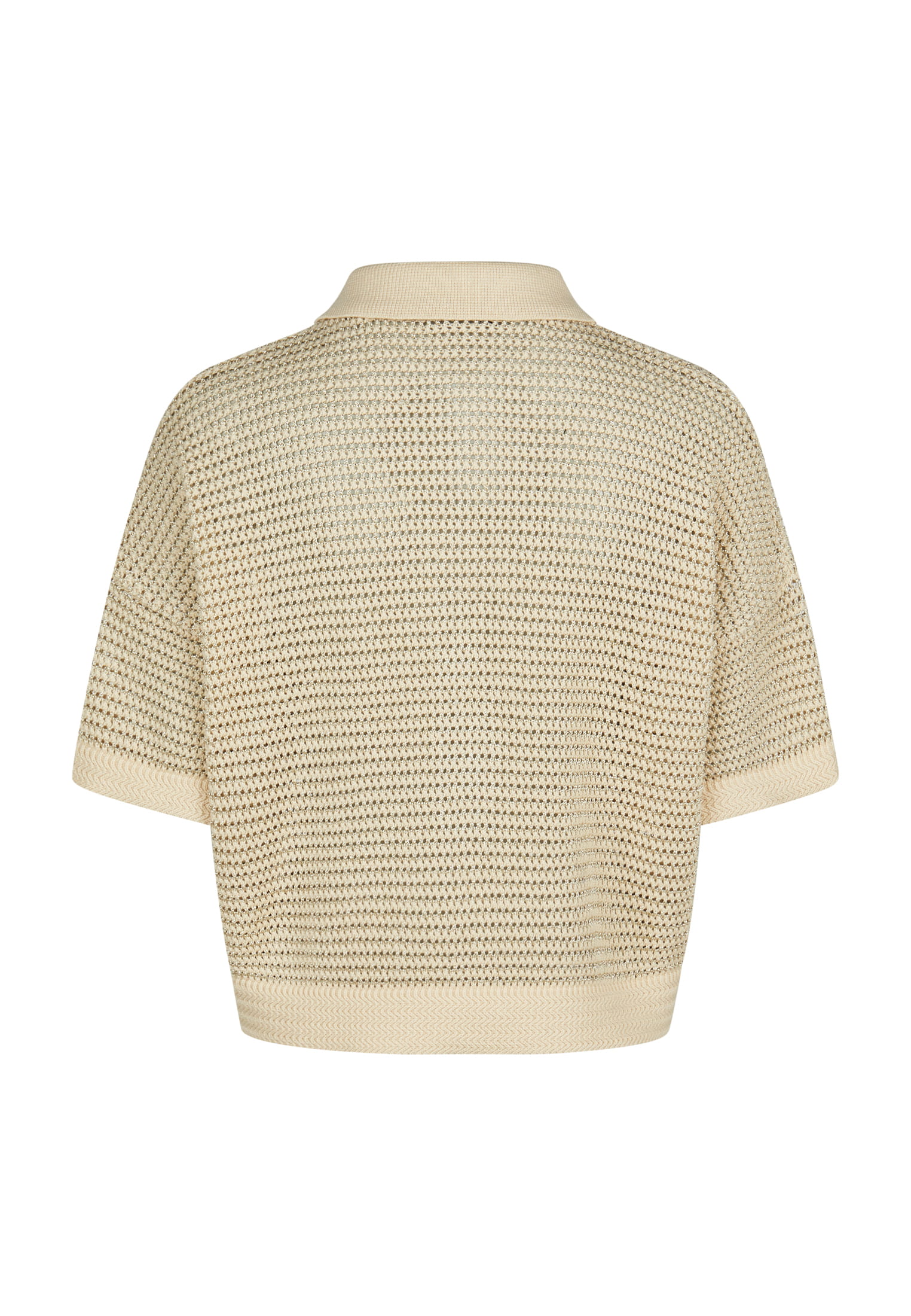 Нежный блеск сочетается с деликатной текстурой. Этот поло из хлопковой смеси с люрексовой пряжей добавляет современный штрих благодаря приспущенным плечам и фактурной вязке. Использование переработанной пряжи дополняет концепцию высококачественных материалов. Идеально подходит для модного и элегантного образа.