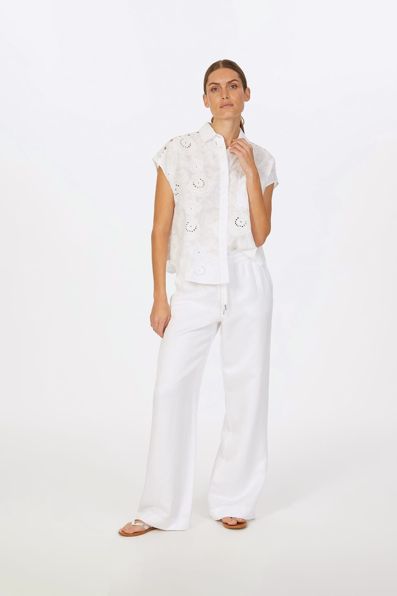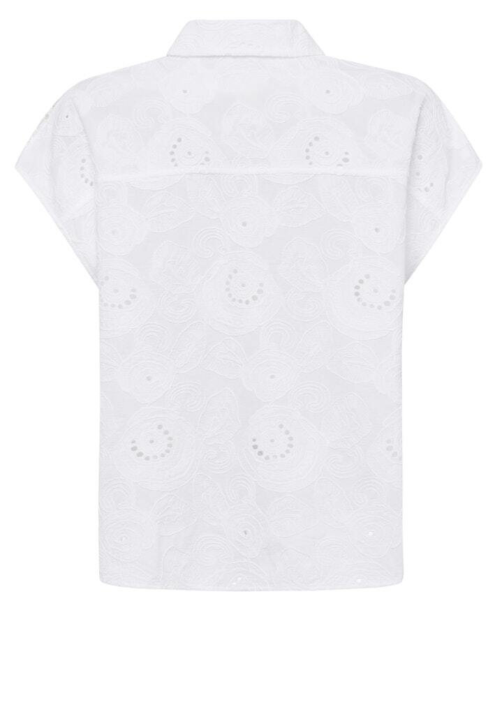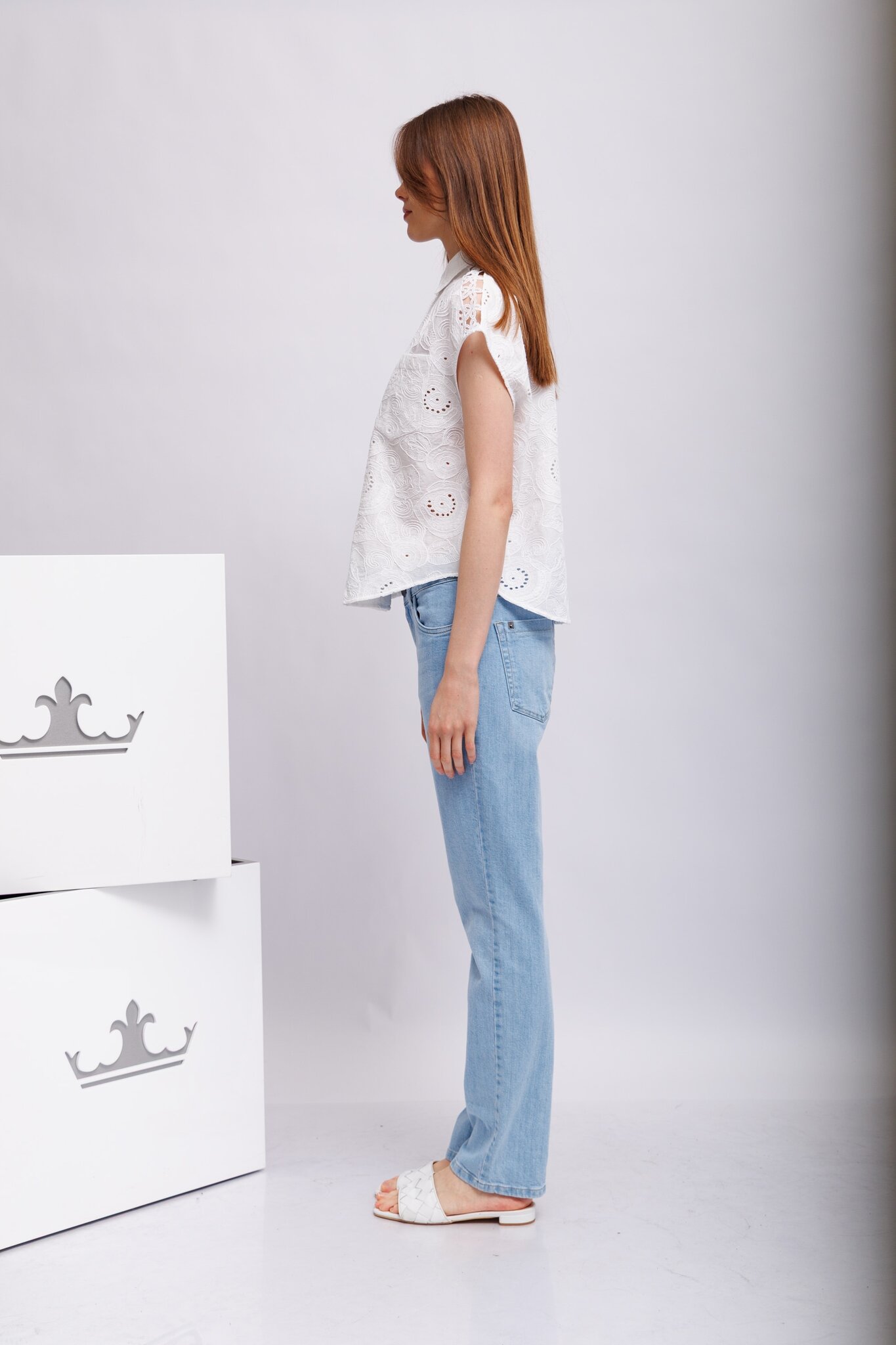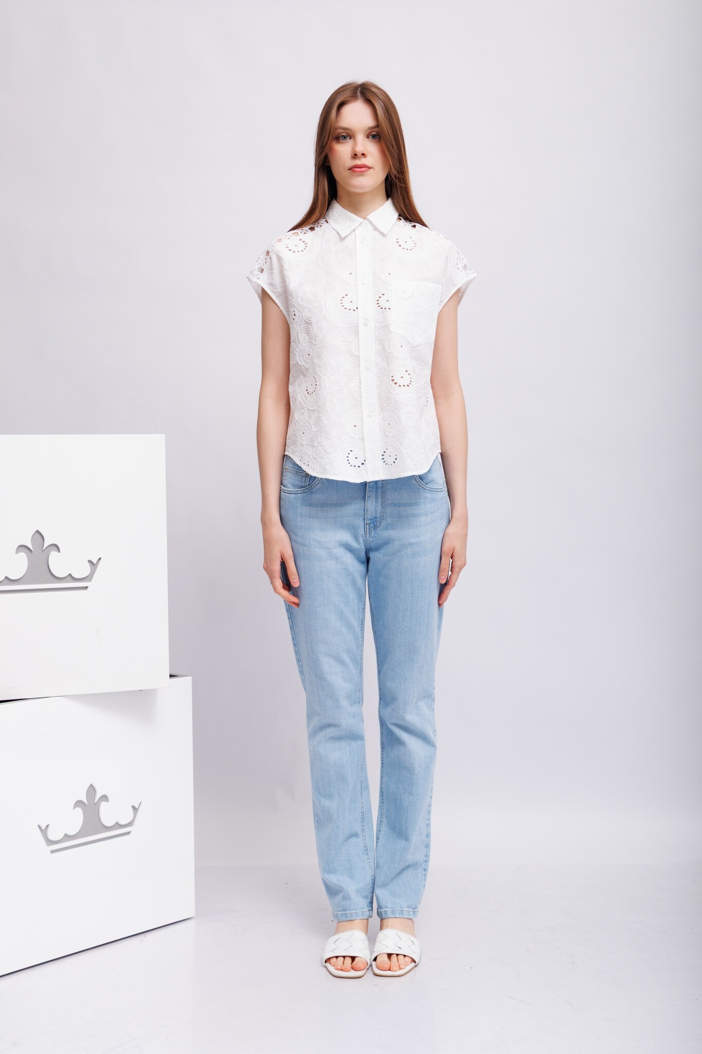впечатляет своей сложной вышивкой и свободным свободным кроем. Кружево на плечах и накладной нагрудный карман придают блузке особые детали, которые идеально дополняют повседневный стиль. Идеально подходит для летних нарядов.