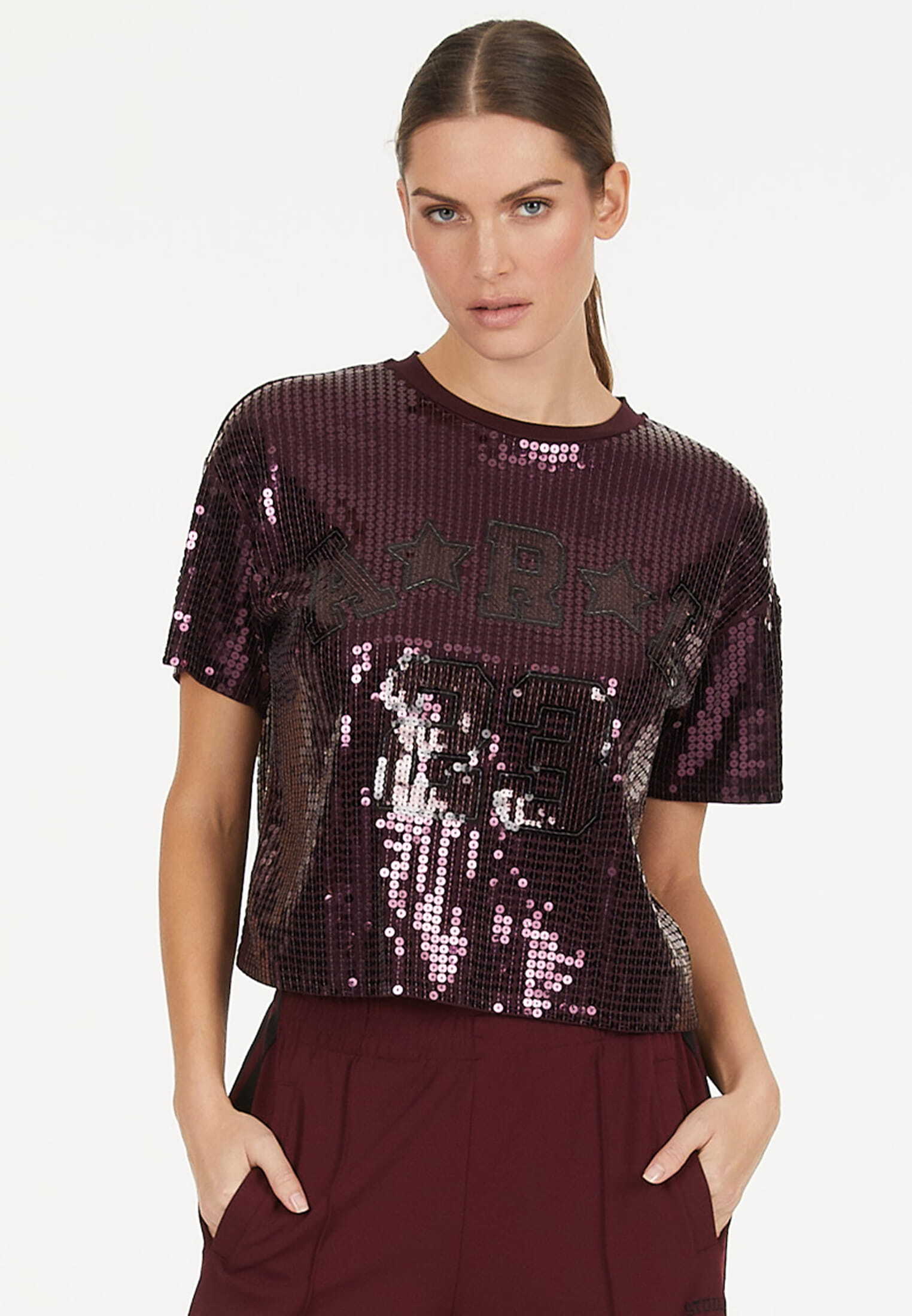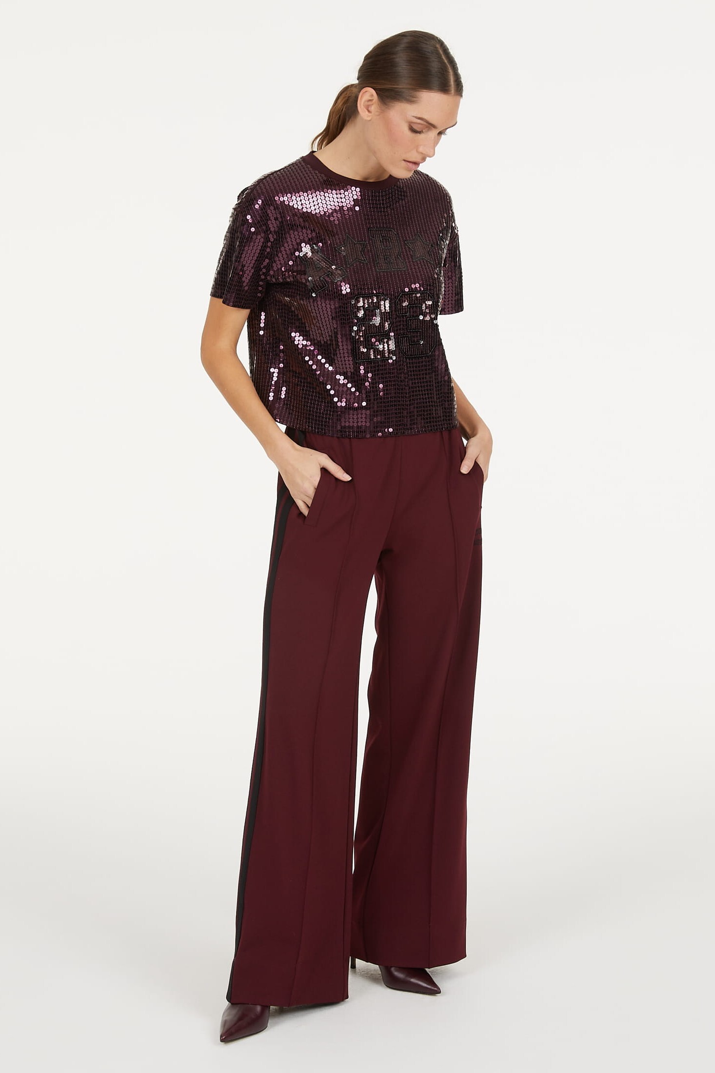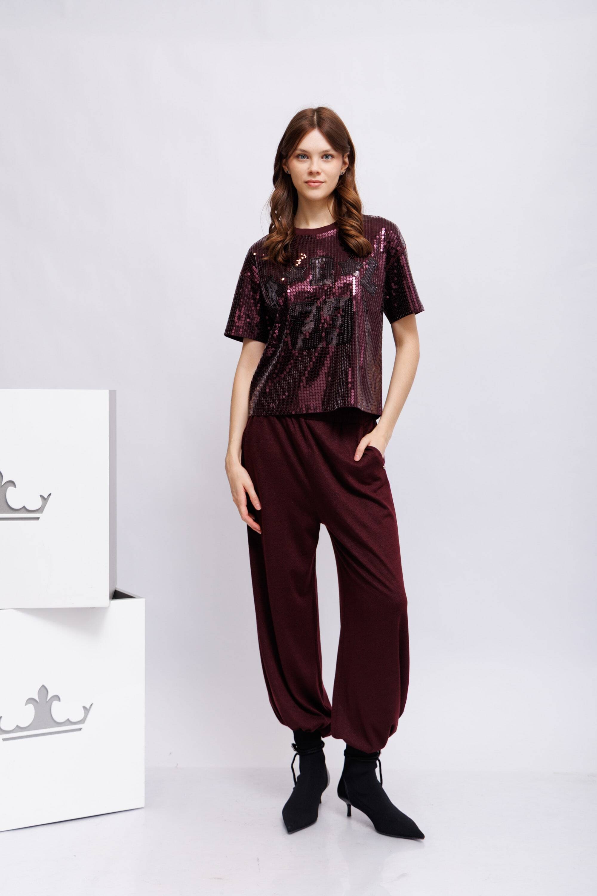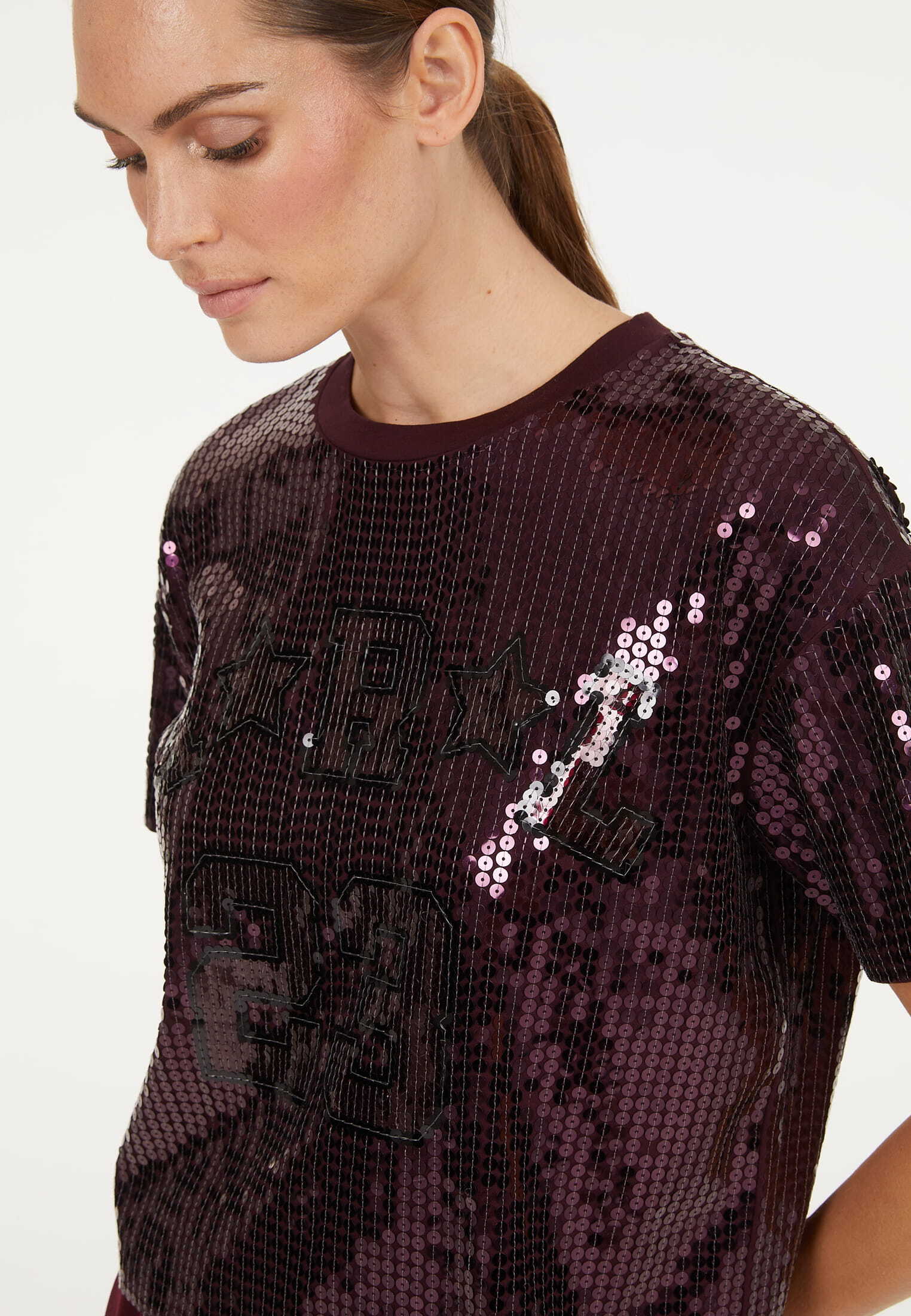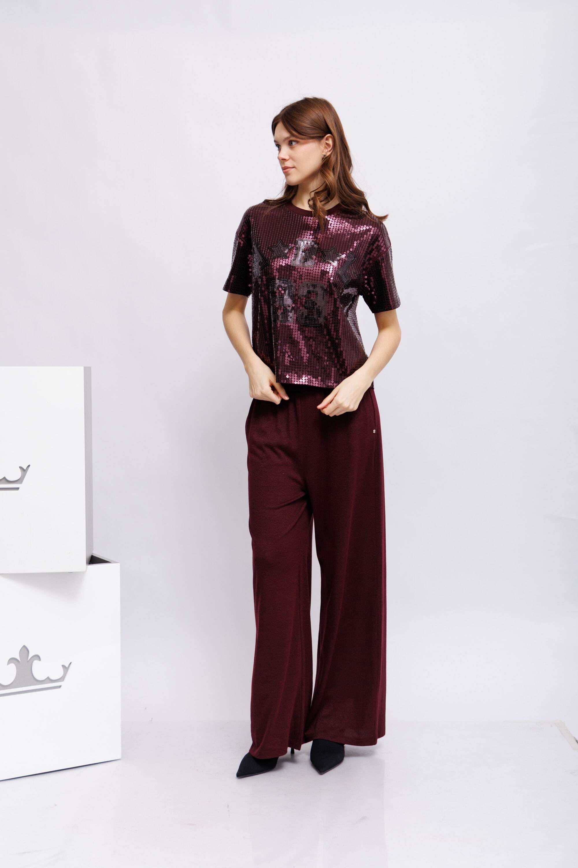 Свитшот, расшитый пайетками винного цвета