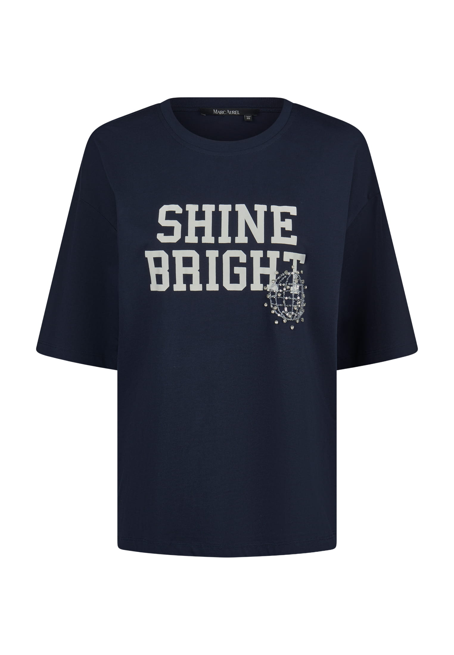 Футболка темно-синяя с надписью и пайетками