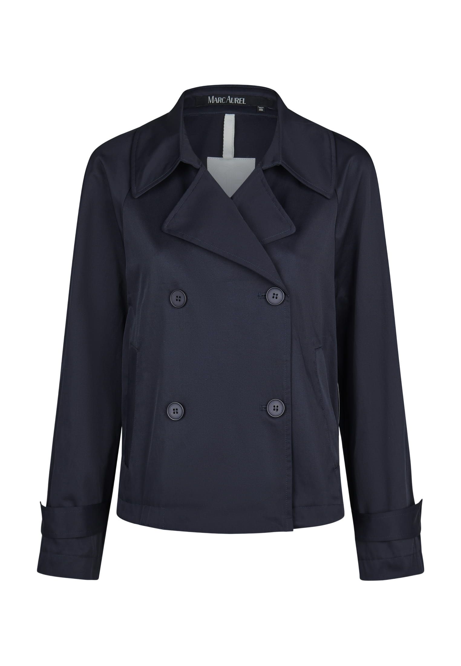 Этот жакет-бушлат из фактурной хлопковой смеси сочетает в себе изысканный блеск и функциональные детали. Регулируемый низ обеспечивает свободу движений, а прорезные карманы и манжеты на рукавах добавляют практичности. Эффектный воротник-тренч придает образу четкие контуры и вневременную элегантность.