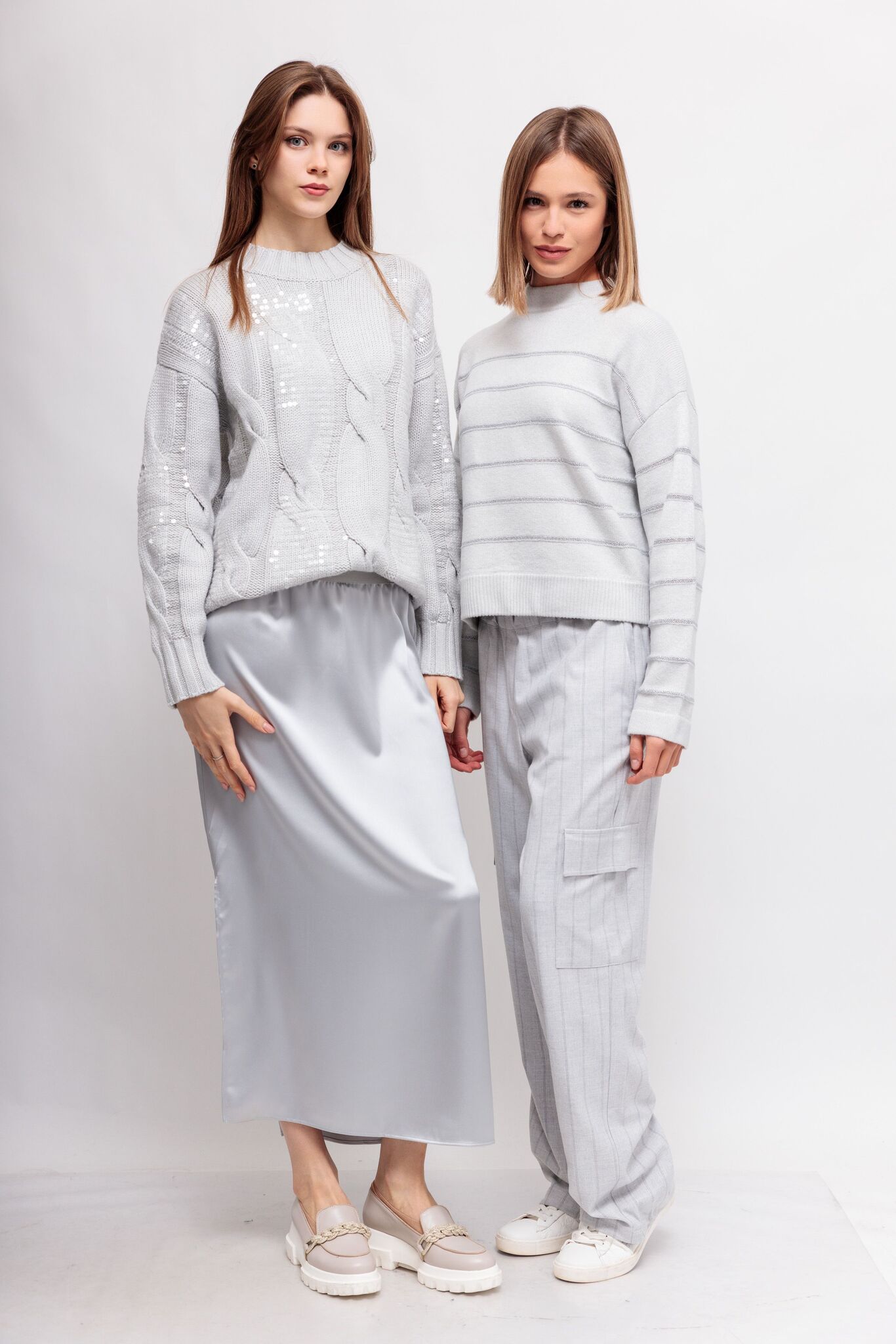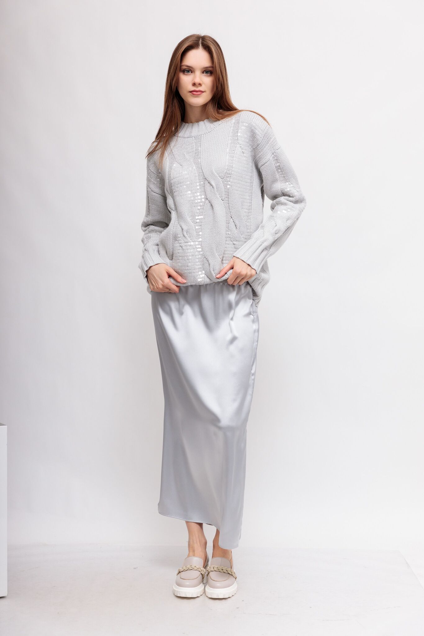 Выполнена из эластичного, мягко драпирующегося, серебристого атласа. Эта полуоблегающая юбка представляет собой идеальное сочетание комфорта и изысканности.